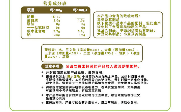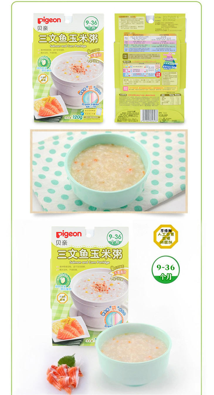 【一般贸易】贝亲 辅食粥 三文鱼玉米粥 9-36个月 120g/袋