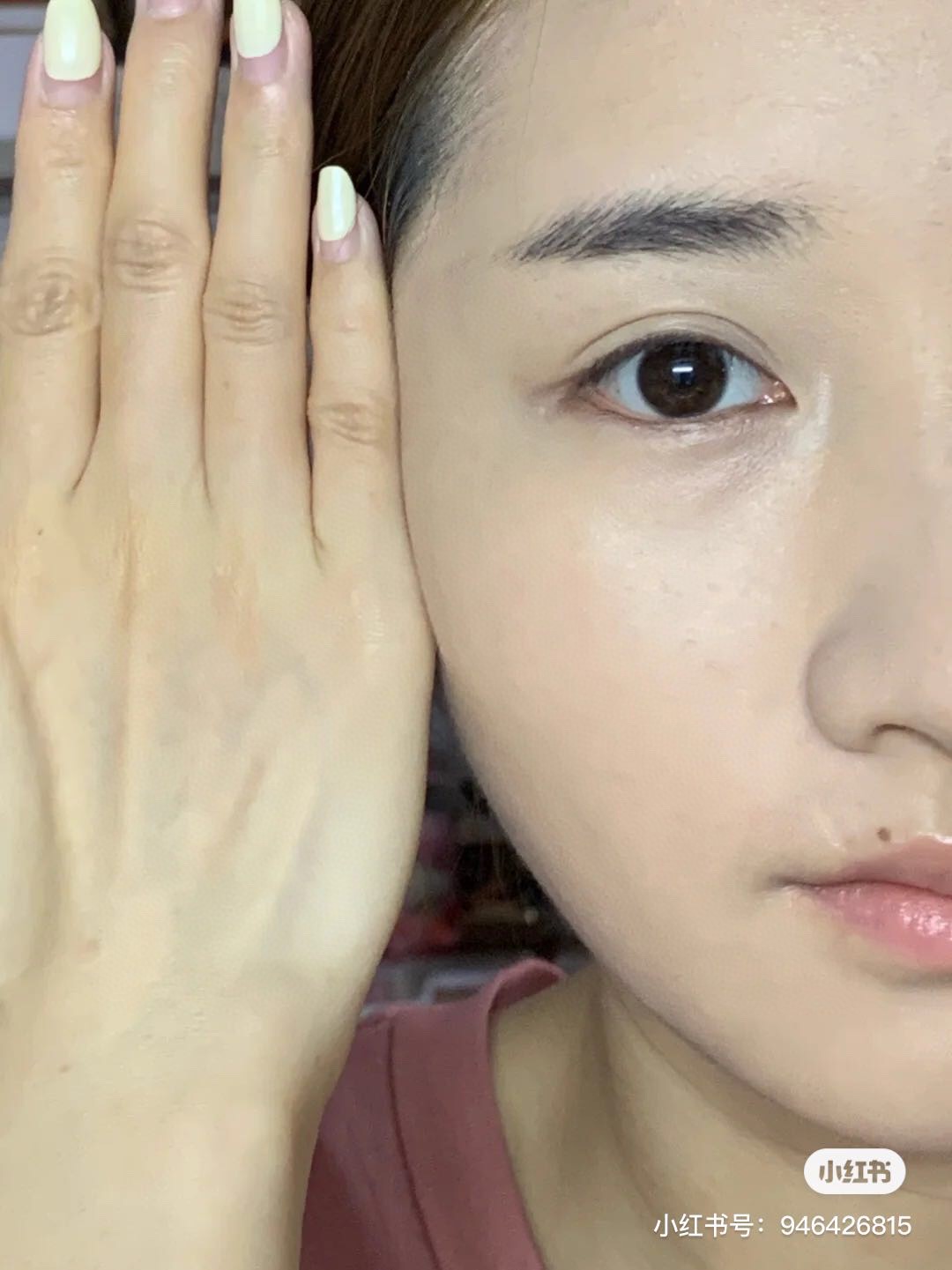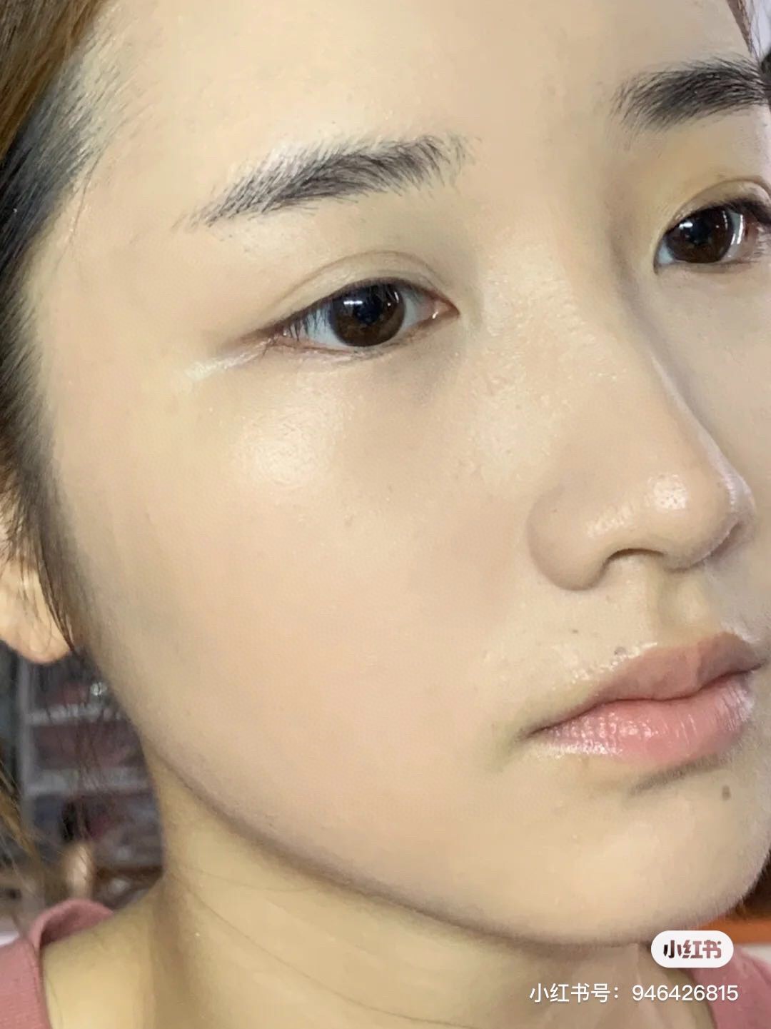 虽然妆效是雾面哑光但是上完粉底液还是有一点光泽的,压一层散粉后完全就是牢牢的扒在脸上!