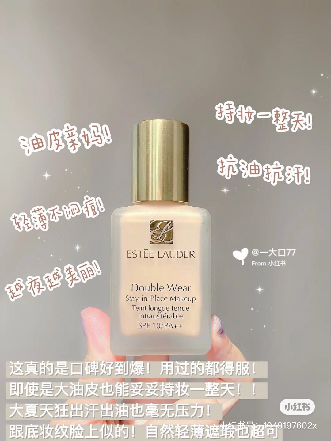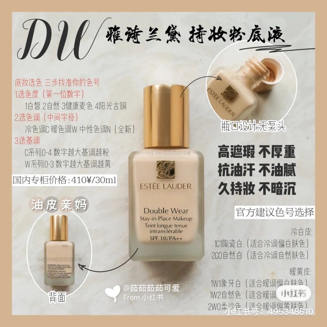 费劲千辛万苦给大家找的粉底液,1个色号1W2这个色号是最最大众能接受的色号了老会员福利价198包邮,放心拍,雅诗兰黛DW持妆粉底液油皮亲妈持妆控油这款是雅诗兰黛家价格最亲民的一款粉底液了,几乎所有美妆博主都推过,它主打持久,独特的15小时完美持妆科技,随时抗油抗汗,简直是油皮亲妈,而且遮瑕力也是一流,基本上痘印、瑕疵都能遮住。但是!但是来了,它是主打控油遮瑕持久,所以保湿力并没有很强,看它的持久度就知道控油效果有多棒