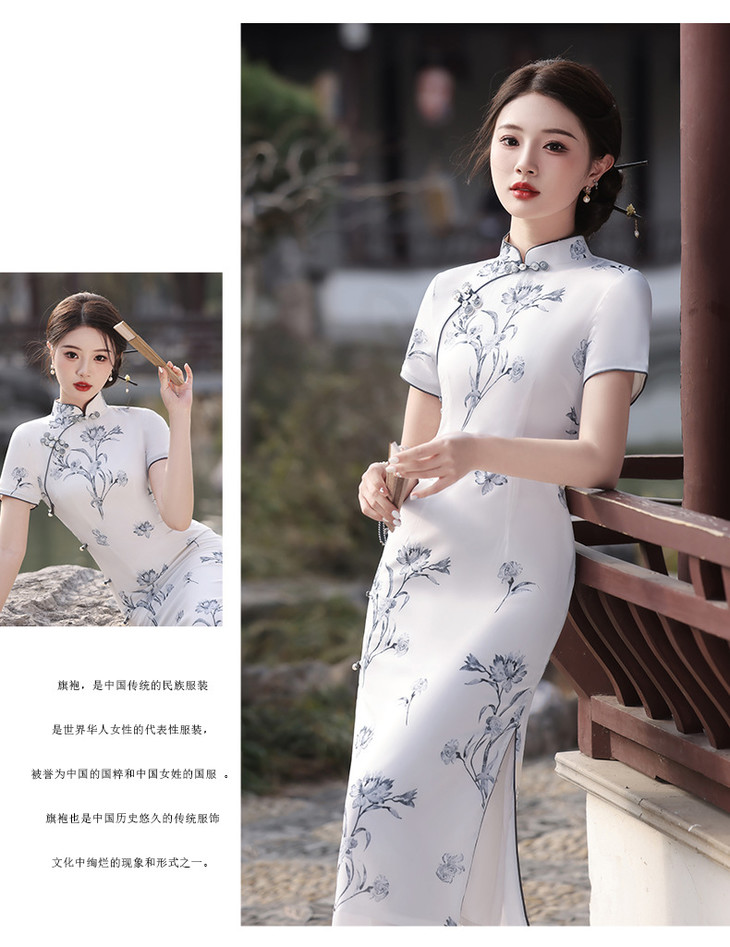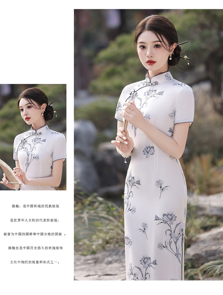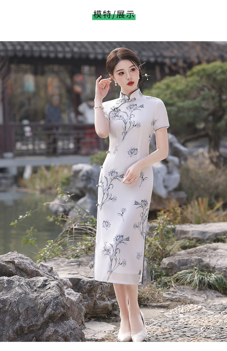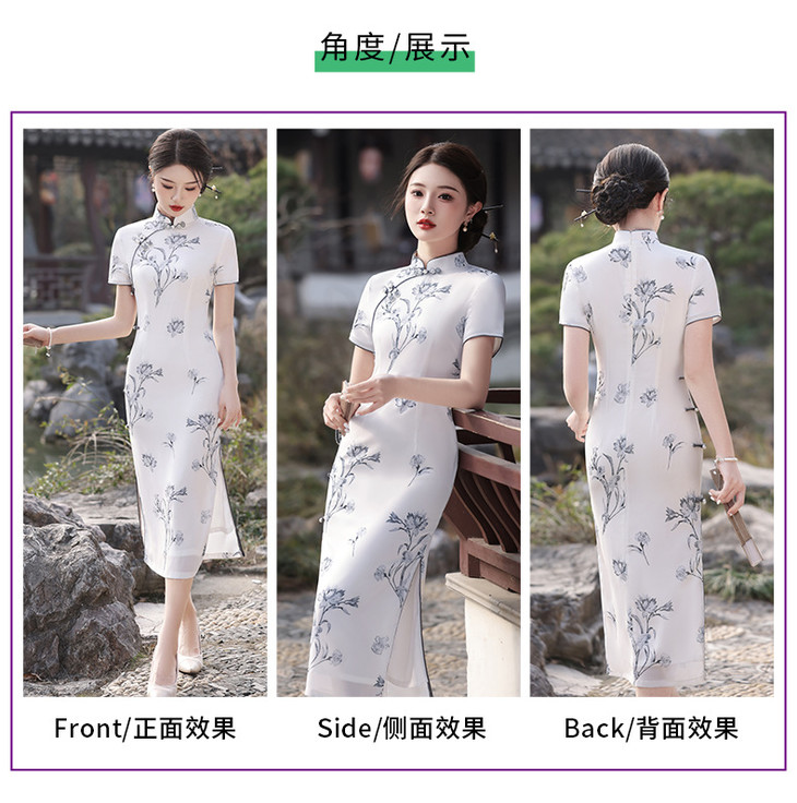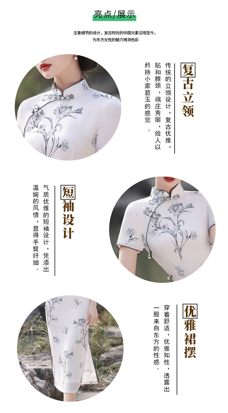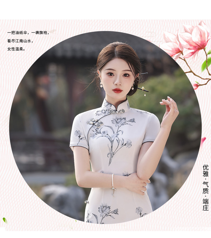 春夏立领中国风盘扣复古优雅长款旗袍MLS6845