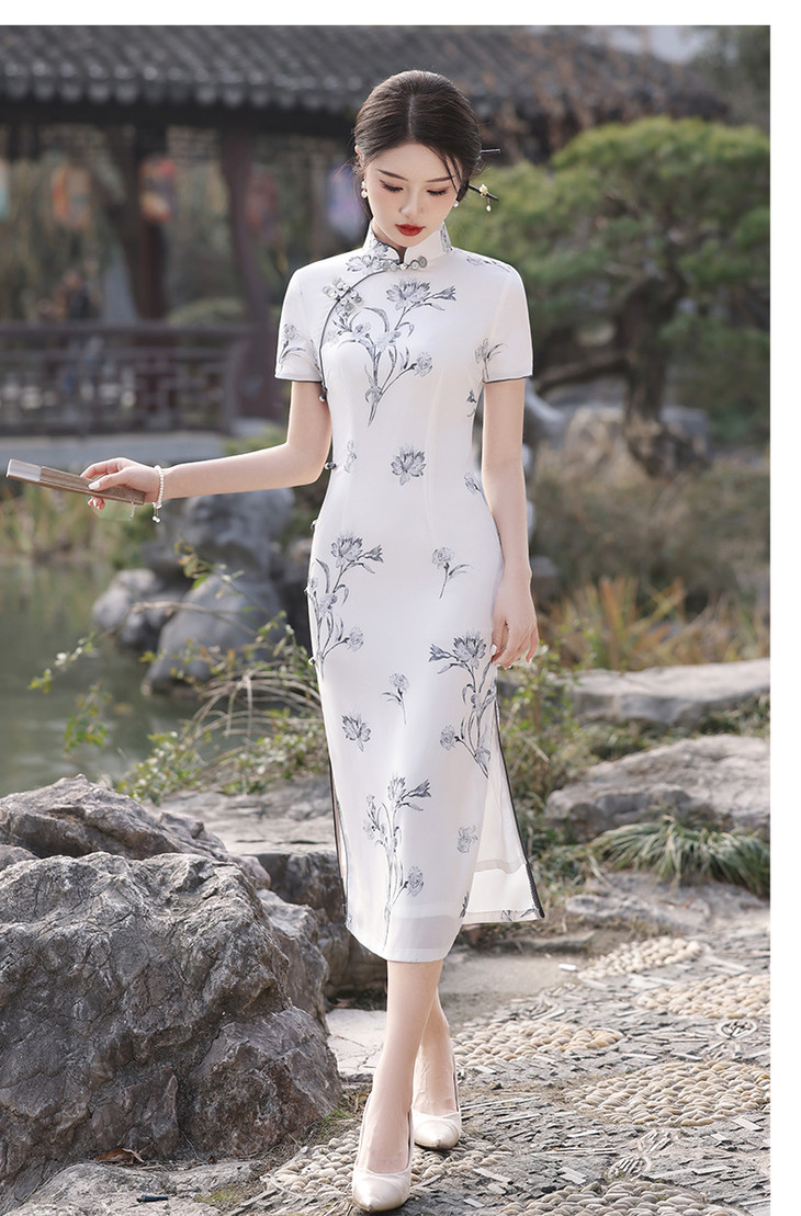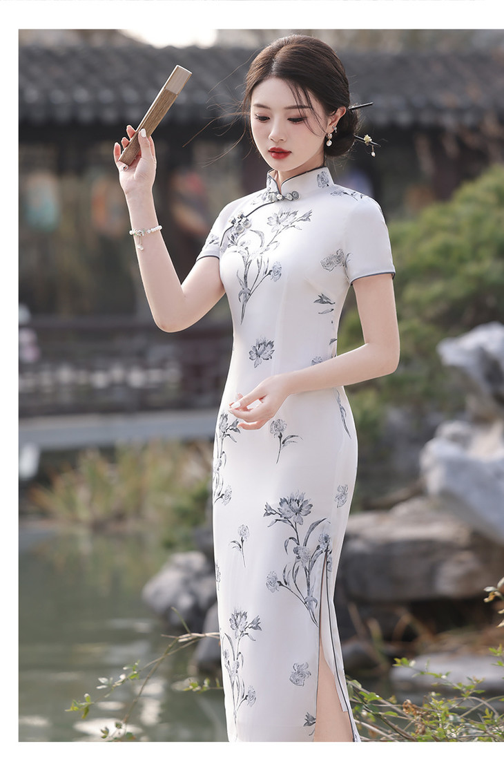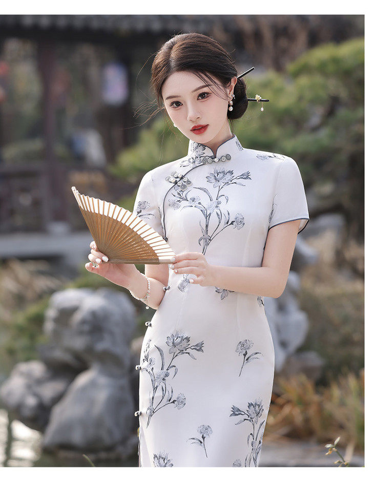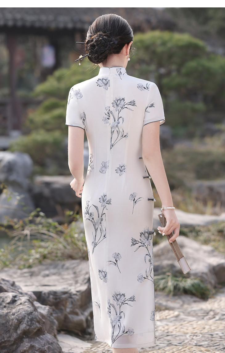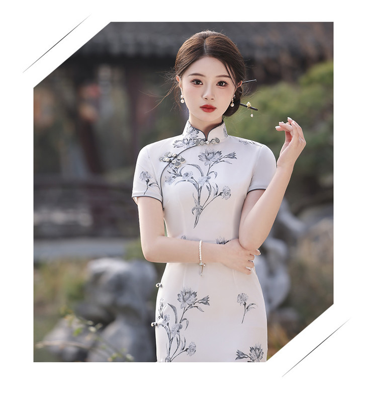 春夏立领中国风盘扣复古优雅长款旗袍MLS6845