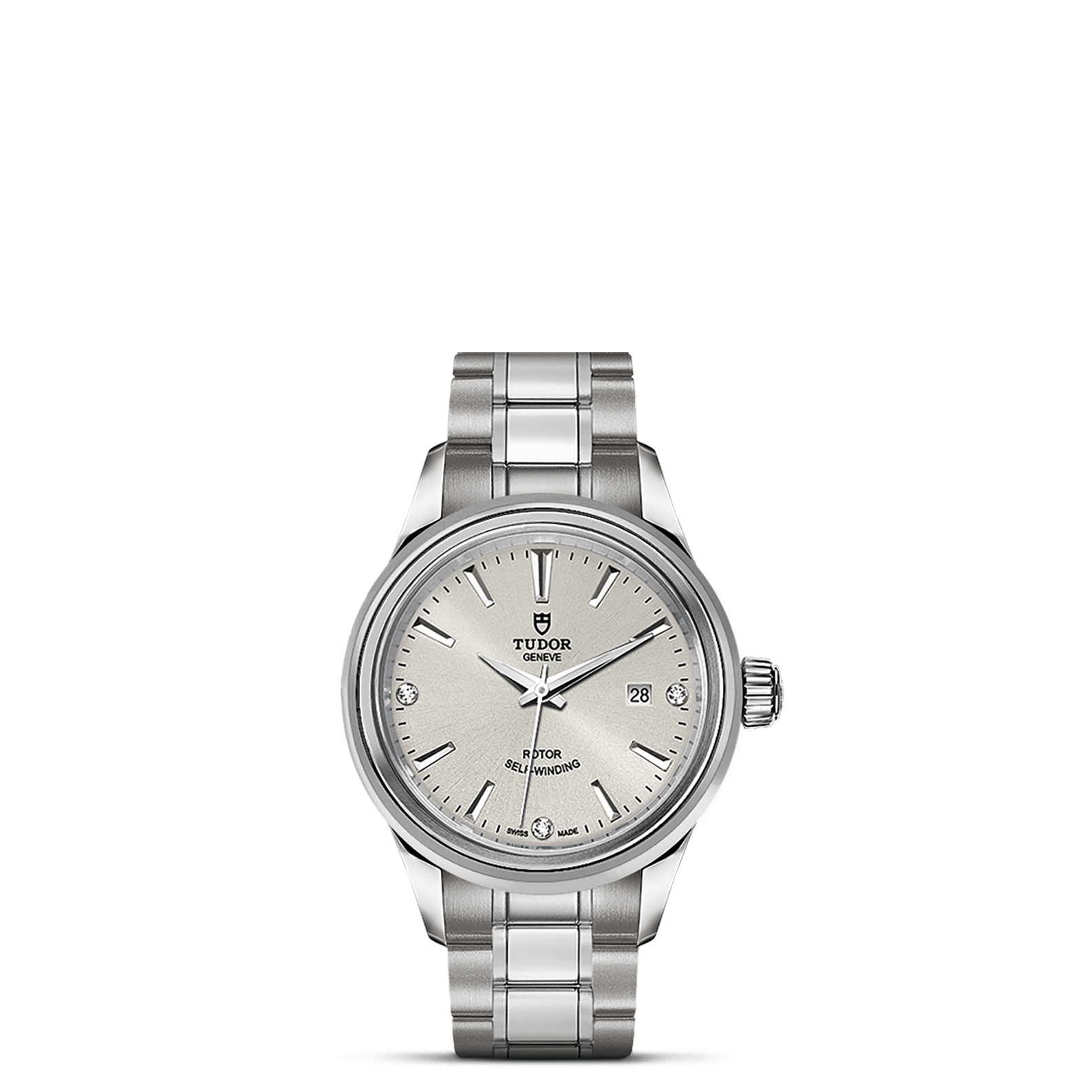 磨光及磨砂钢表壳,直径28毫米
