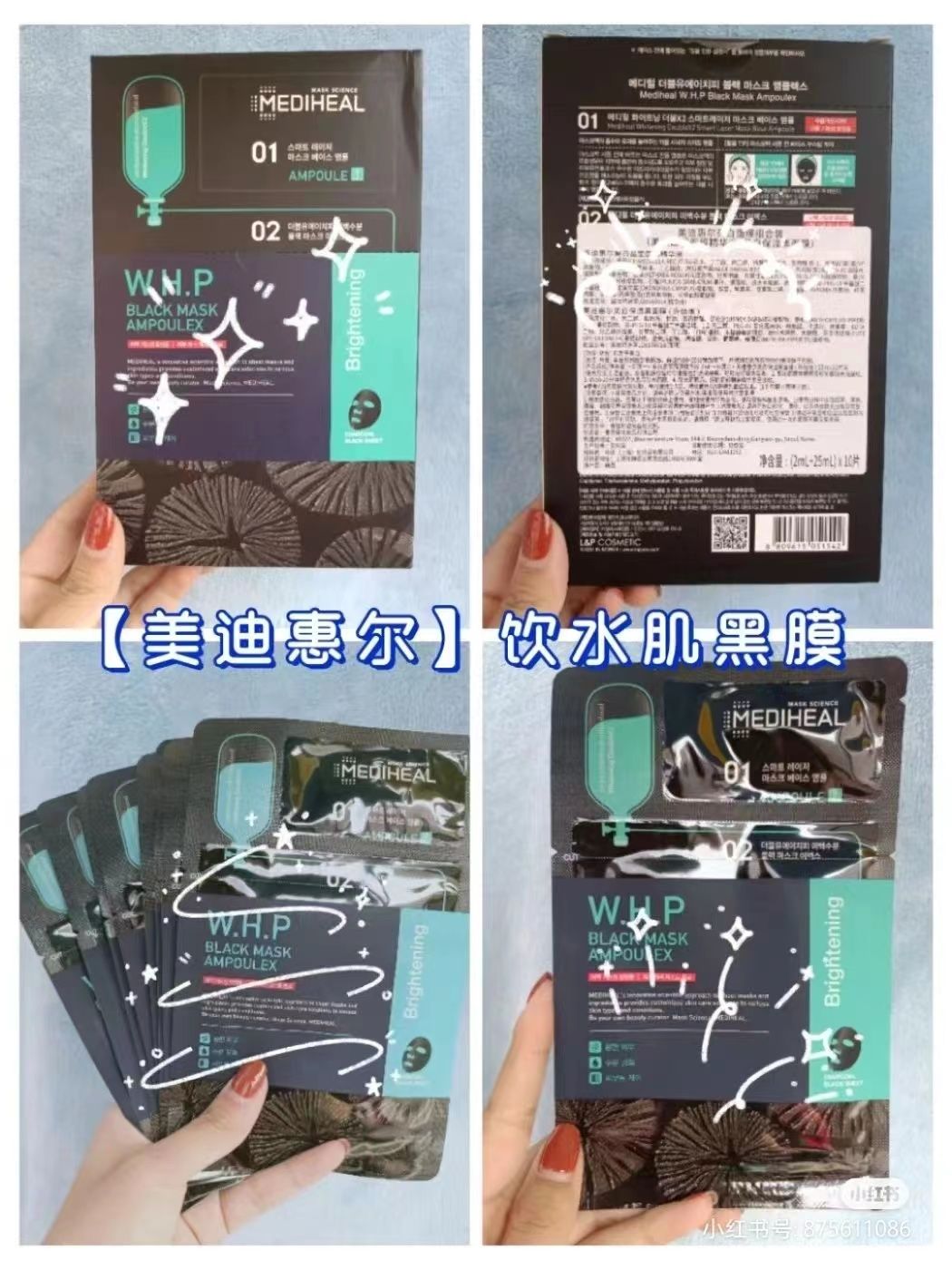 【爆款超低价预售 急单慎拍】韩国MEDIHEAL美迪惠尔NMF亮白升级黑炭两步曲面膜10片
