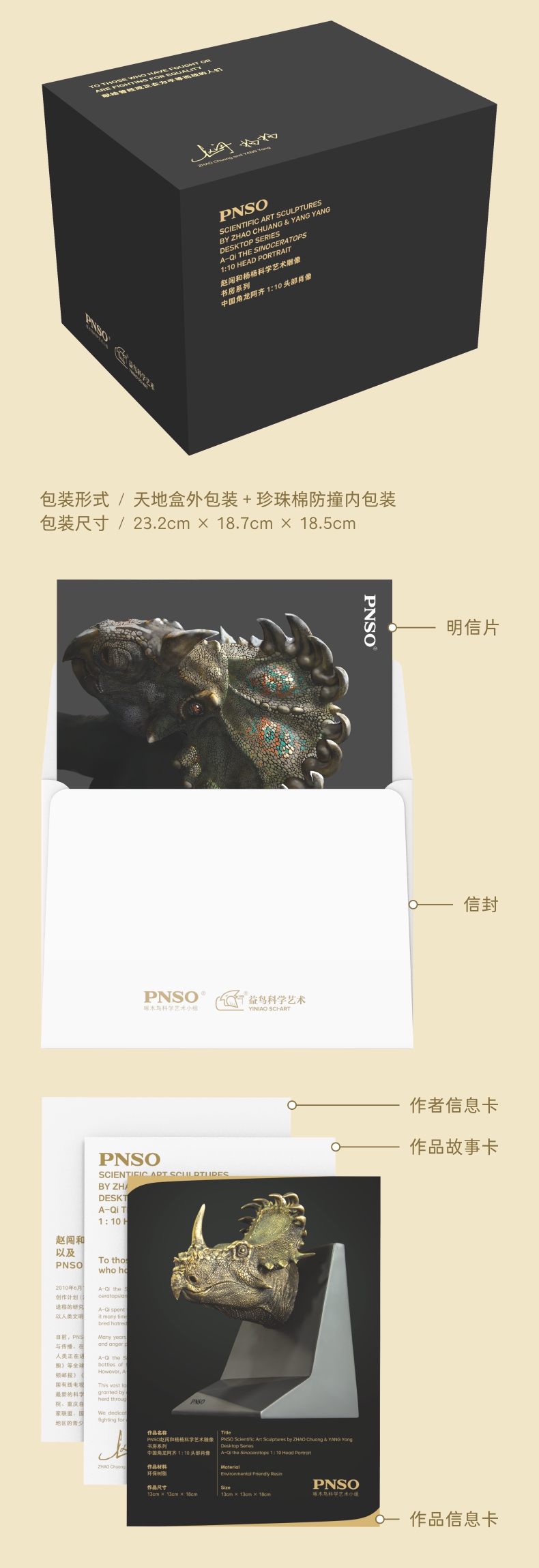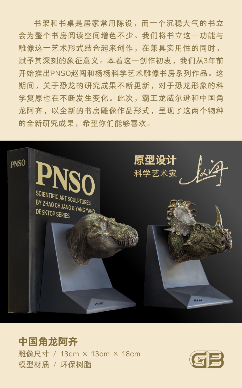 PNSO中国角龙阿齐头部肖像恐龙书档赵闯杨杨科学艺术雕像书房系列