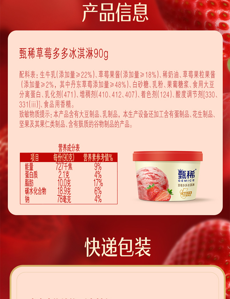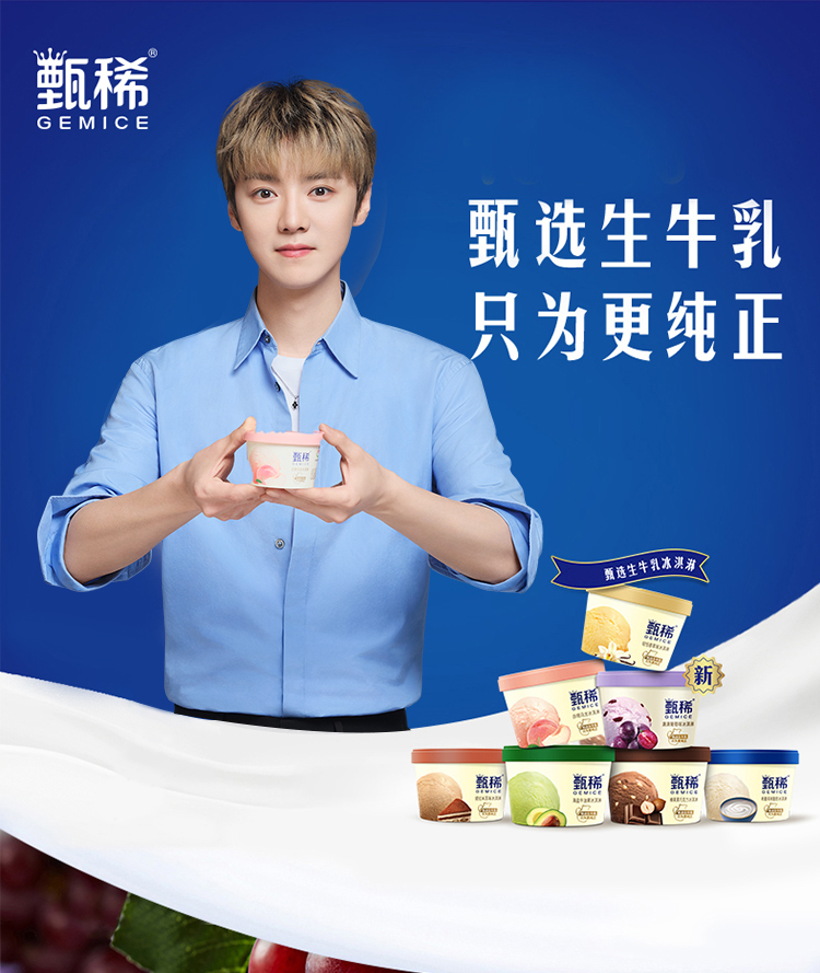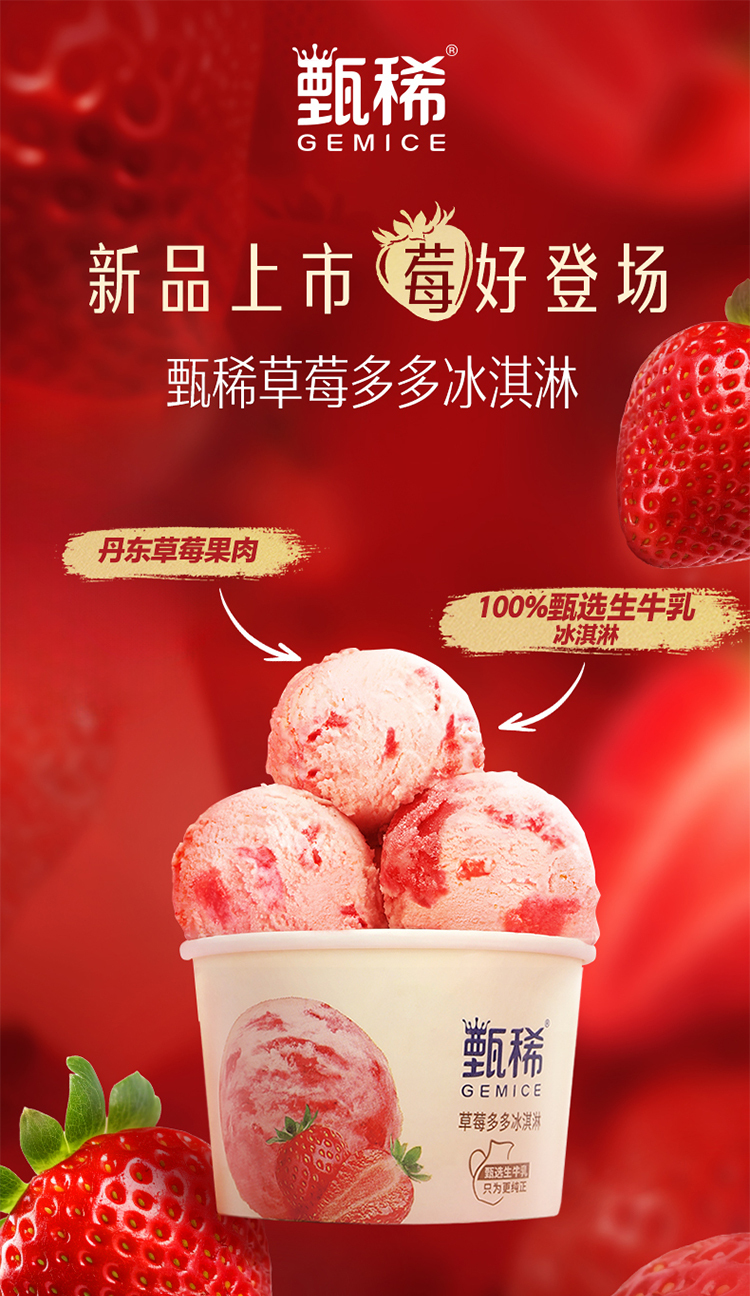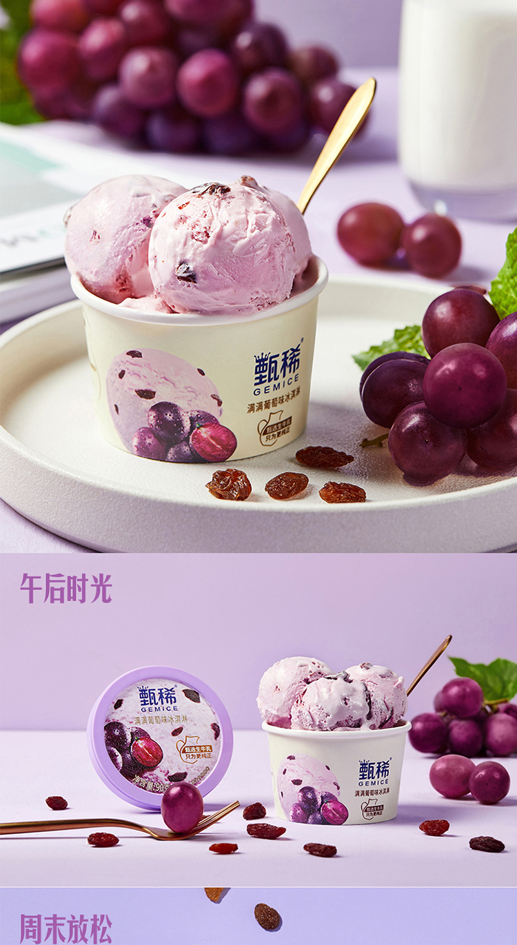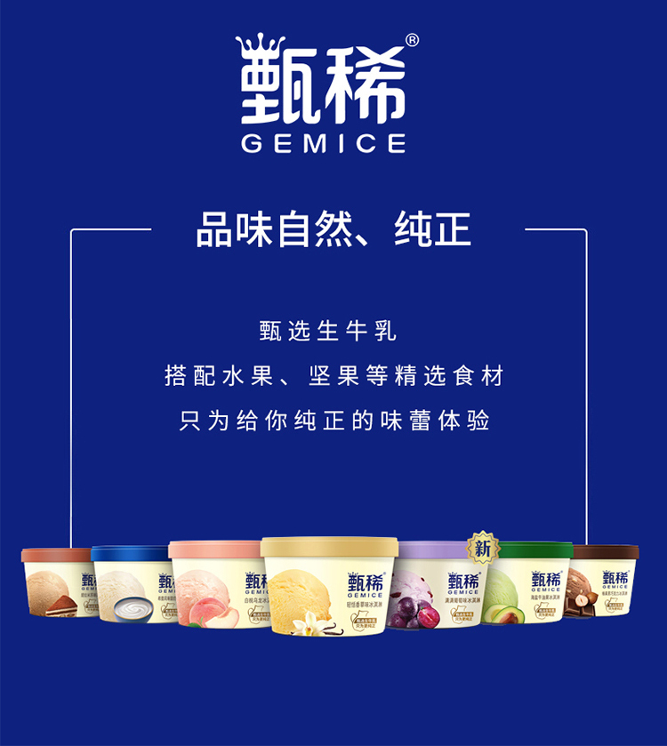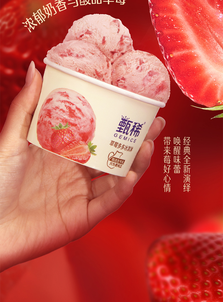 伊利【贾冰推荐】甄稀草莓多多+白桃+青柑蜜瓜+葡萄味冰淇淋B套餐90克X4杯