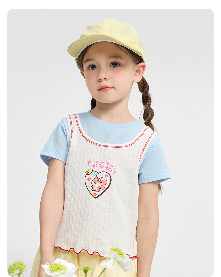 【balaOne】巴拉巴拉童装短袖t恤儿童2026新款夏装女童假两件上衣