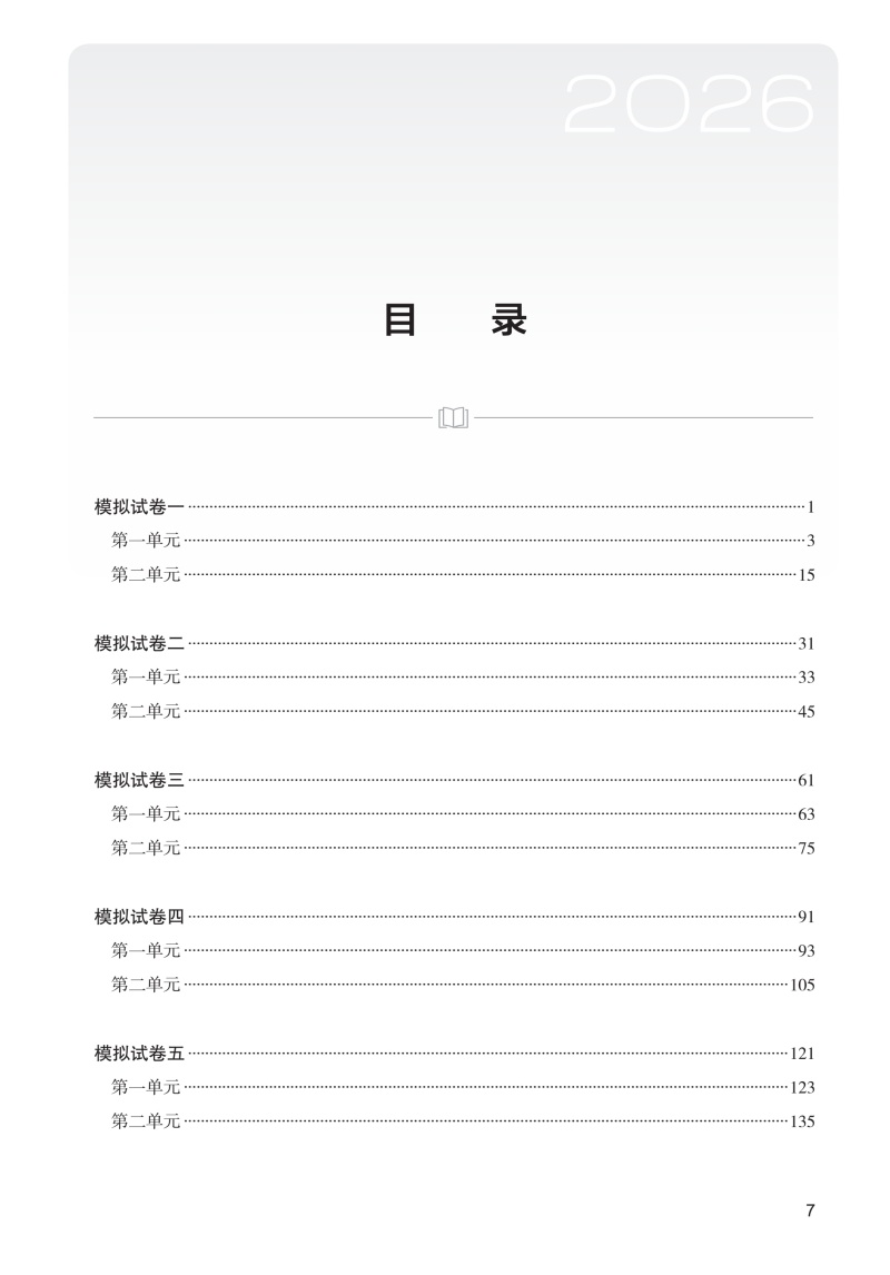 模拟试卷一 /1 第一单元 /3 第二单元 /15 模拟试卷二 /31 第一单元 /33 第二单元 /45 模拟试卷三 /61 第一单元 /63 第二单元 /75 模拟试卷四 /91 第一单元 /93 第二单元 /105 模拟试卷五 /121 第一单元 /123 第二单元 /135