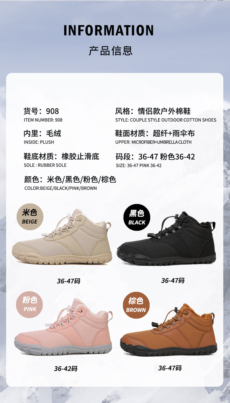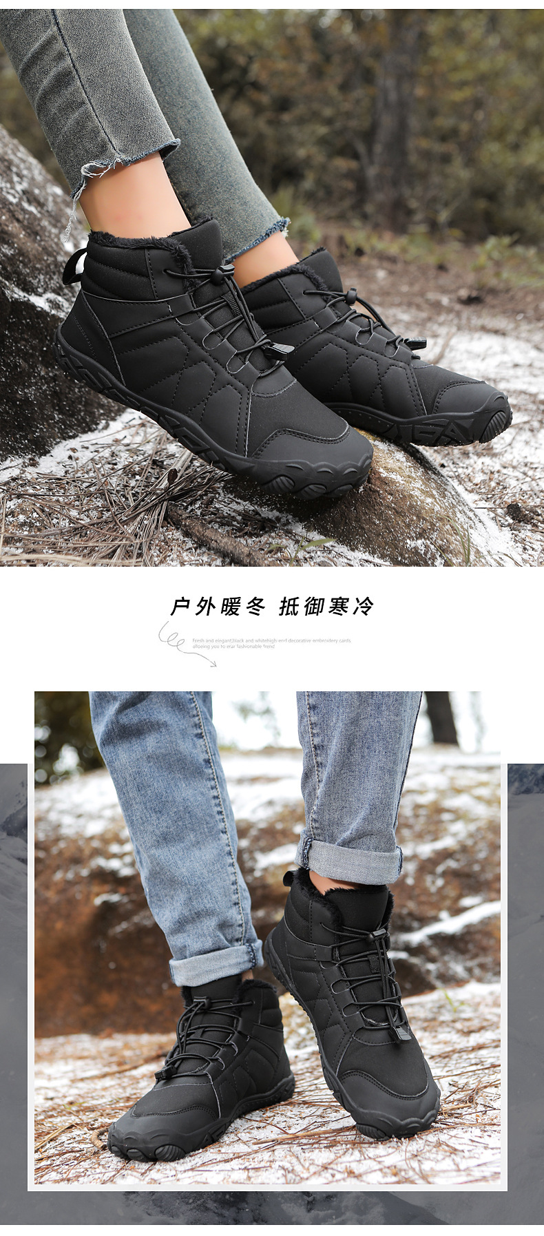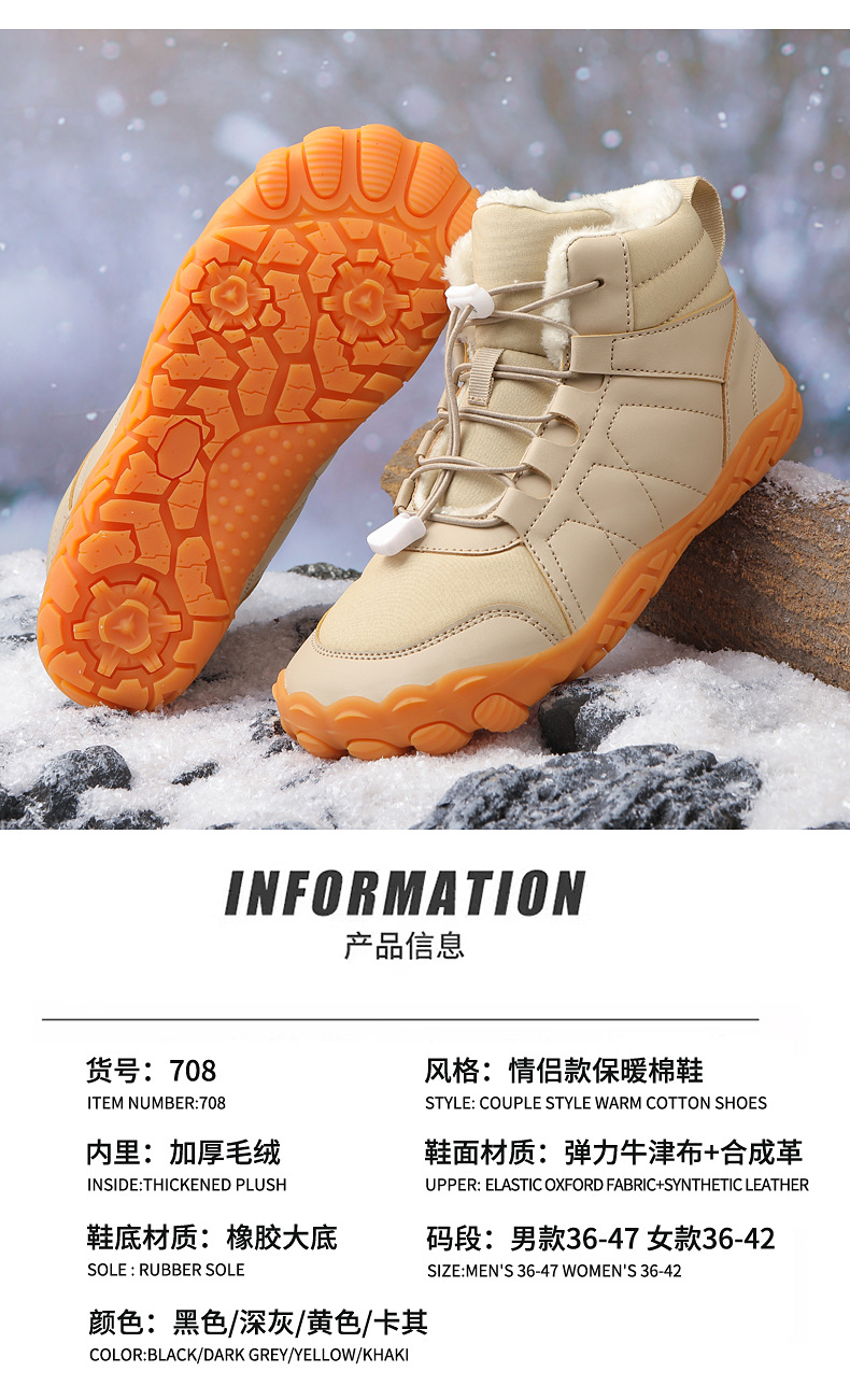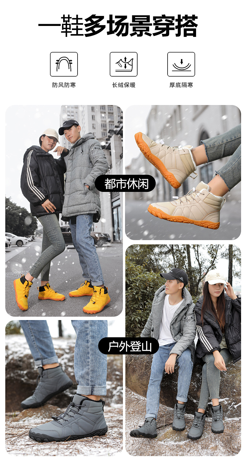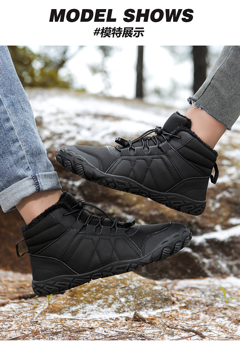 冬季鞋男女士雪地靴防滑登山鞋保暖加绒棉靴滑雪靴中帮情侣短靴