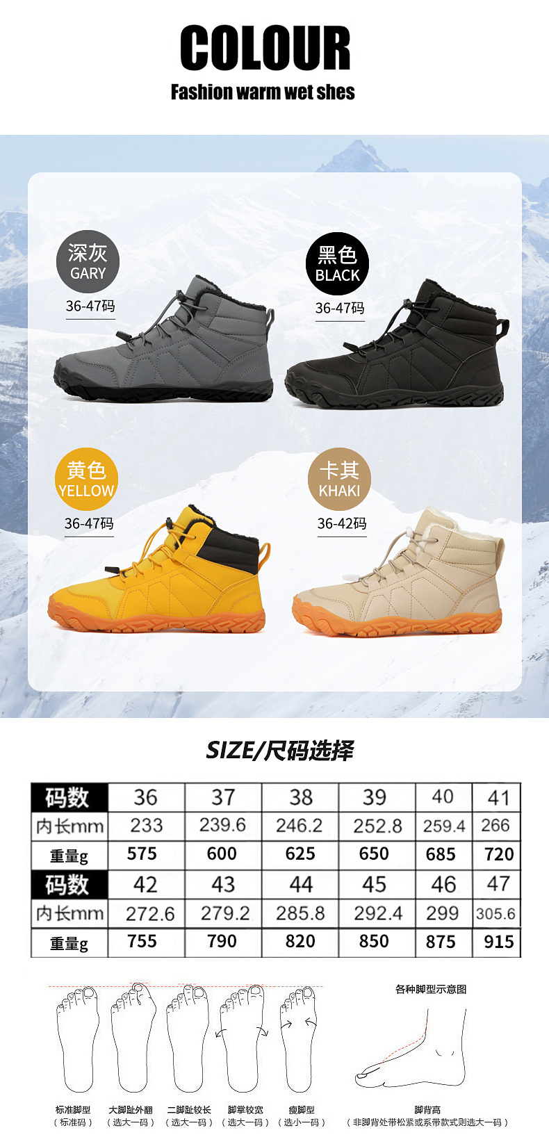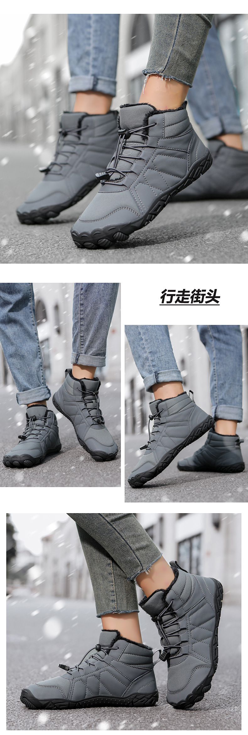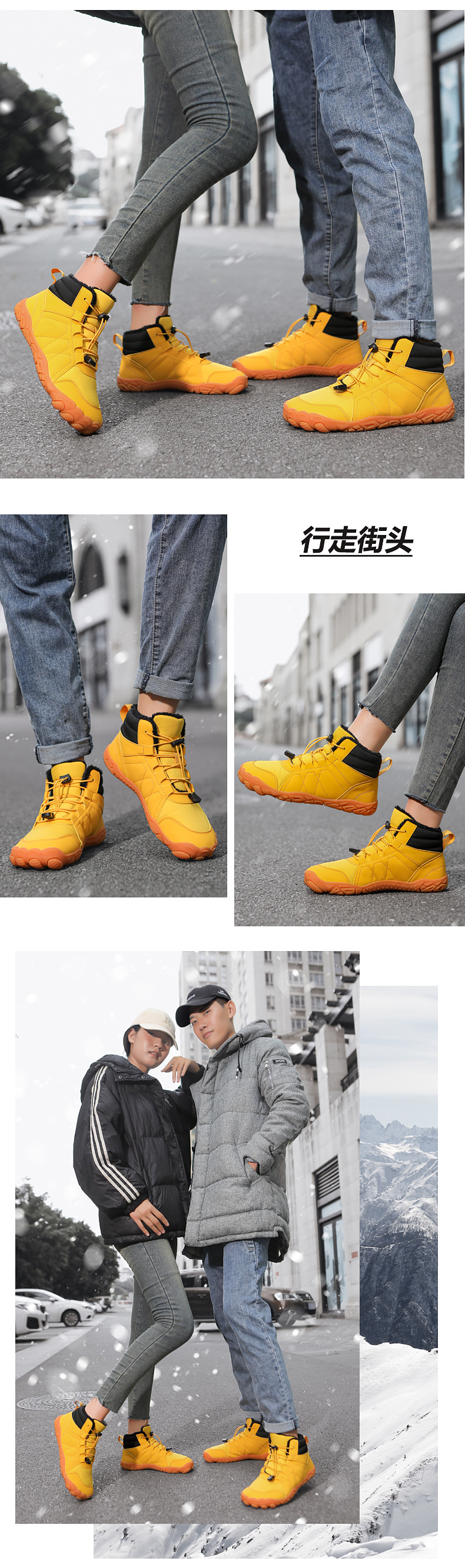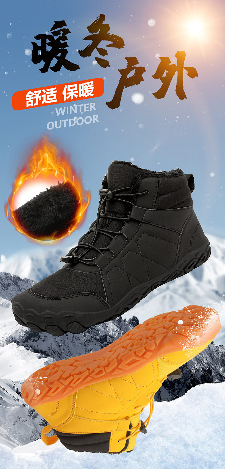 冬季鞋男女士雪地靴防滑登山鞋保暖加绒棉靴滑雪靴中帮情侣短靴