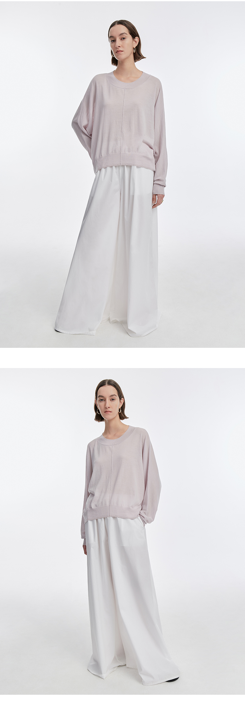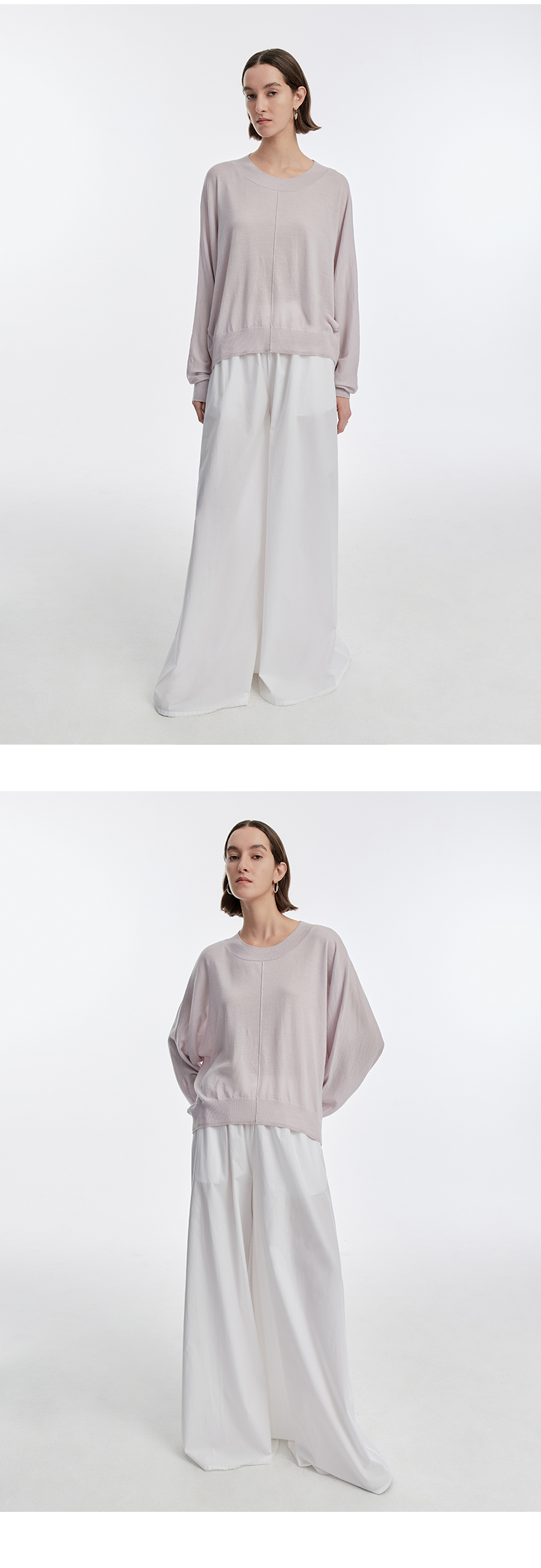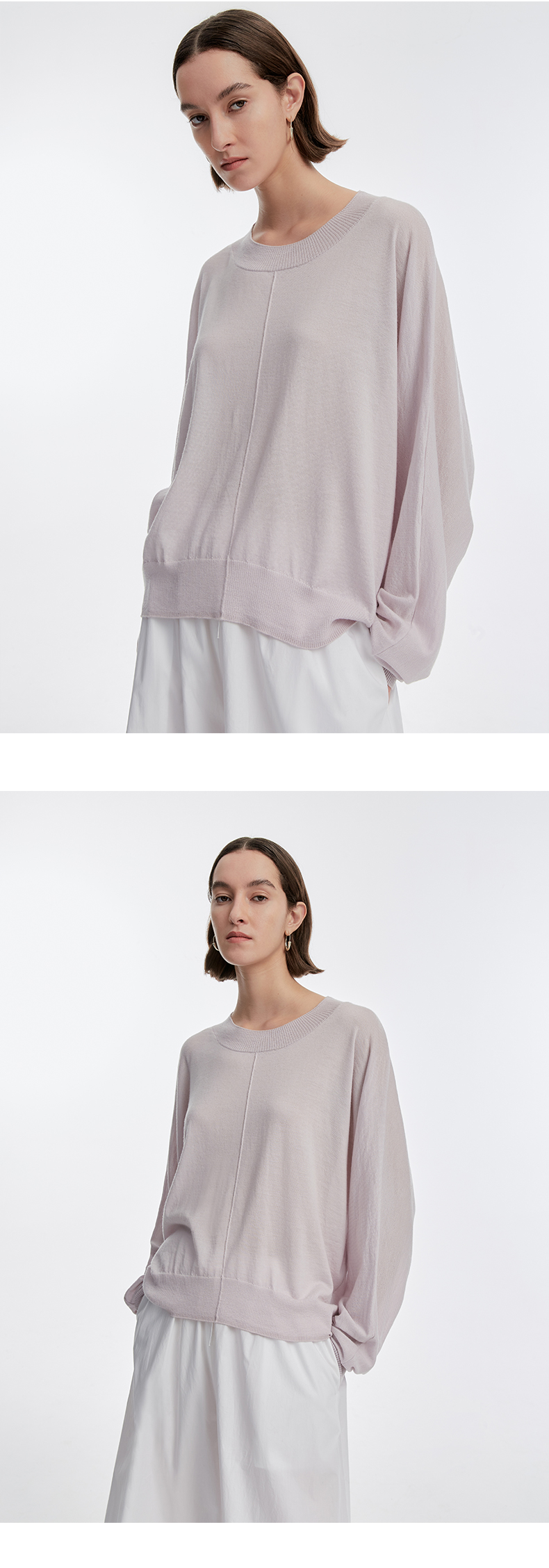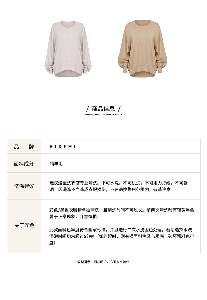 HIDEMI 美利奴羊毛廓形落肩宽松毛衣/奶茶色/香芋粉紫