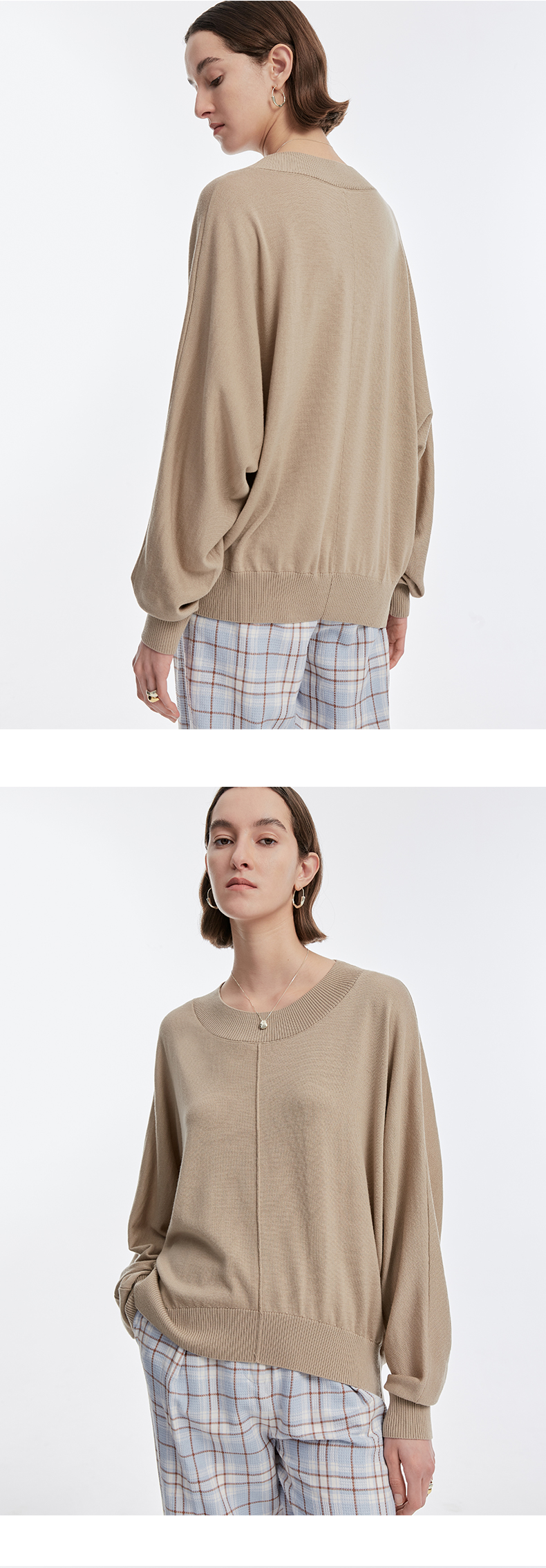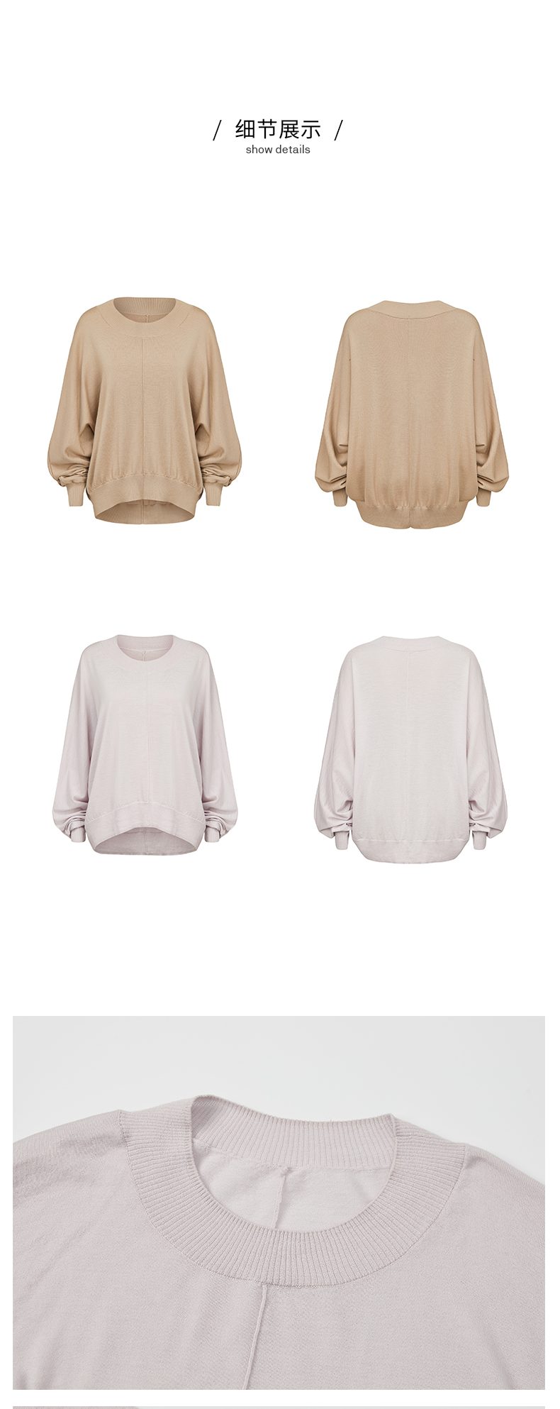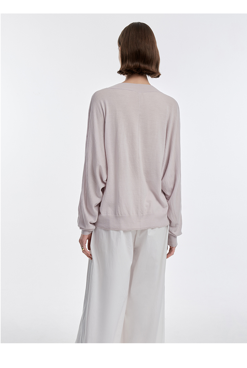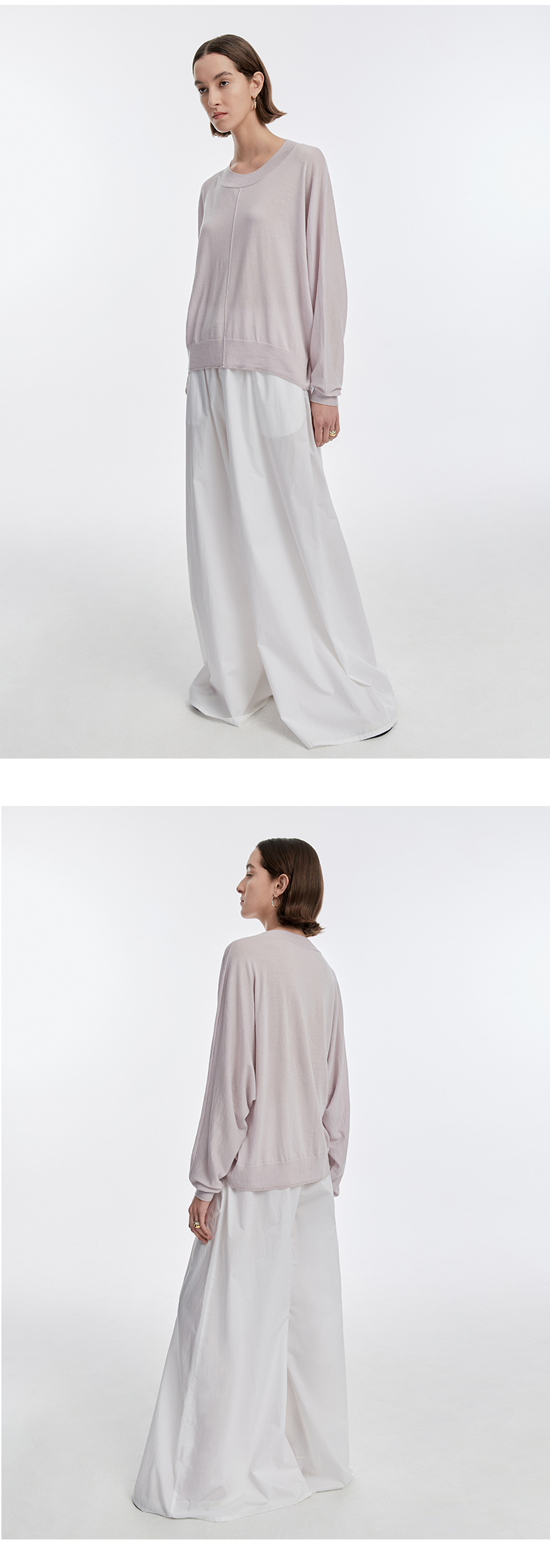 HIDEMI 美利奴羊毛廓形落肩宽松毛衣/奶茶色/香芋粉紫