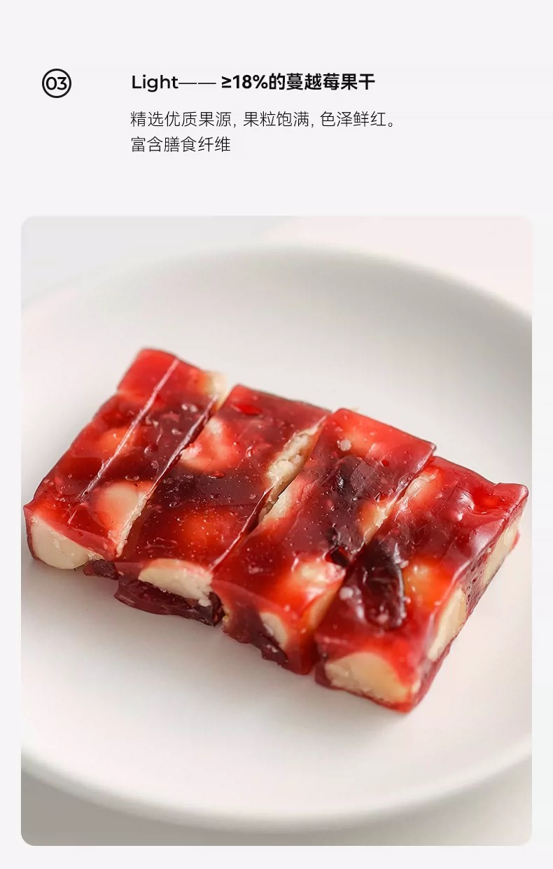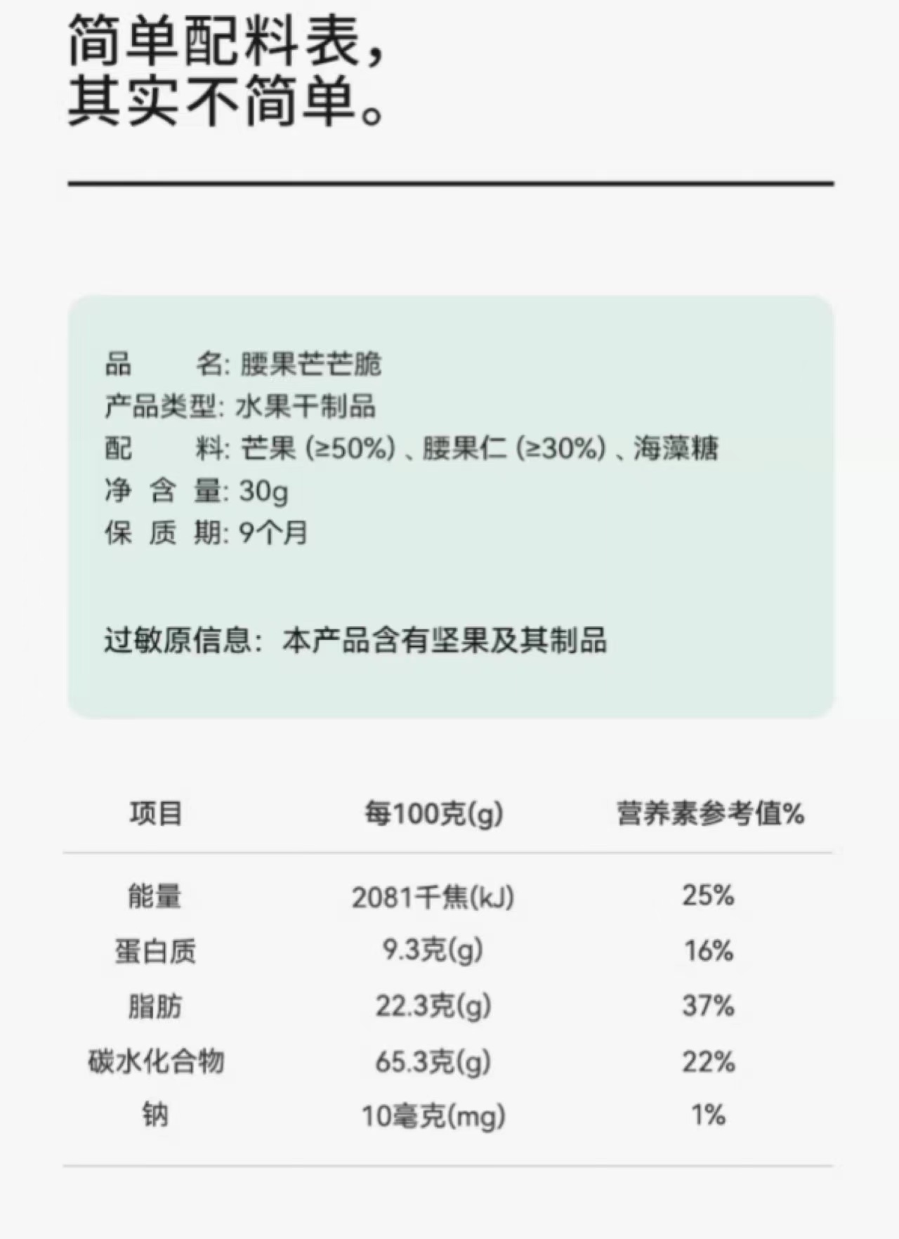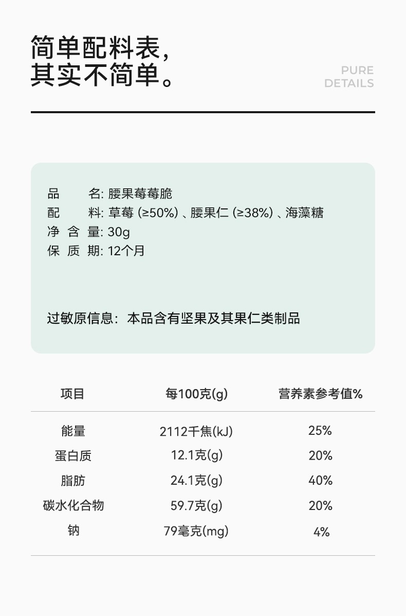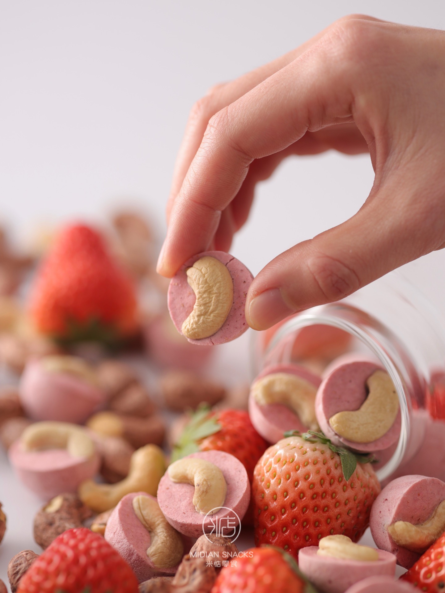 草莓原浆添加量≥50%,腰果仁添加量≥38%