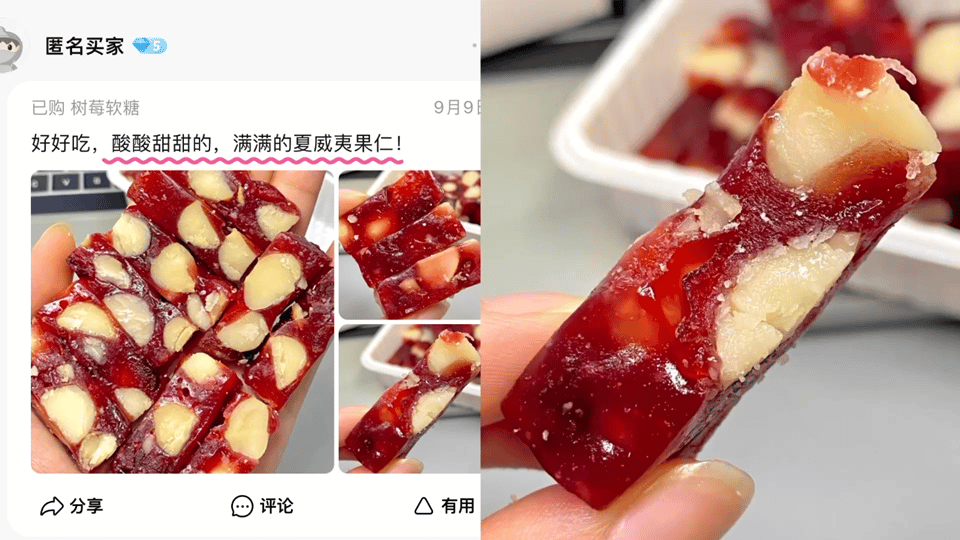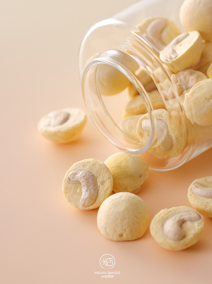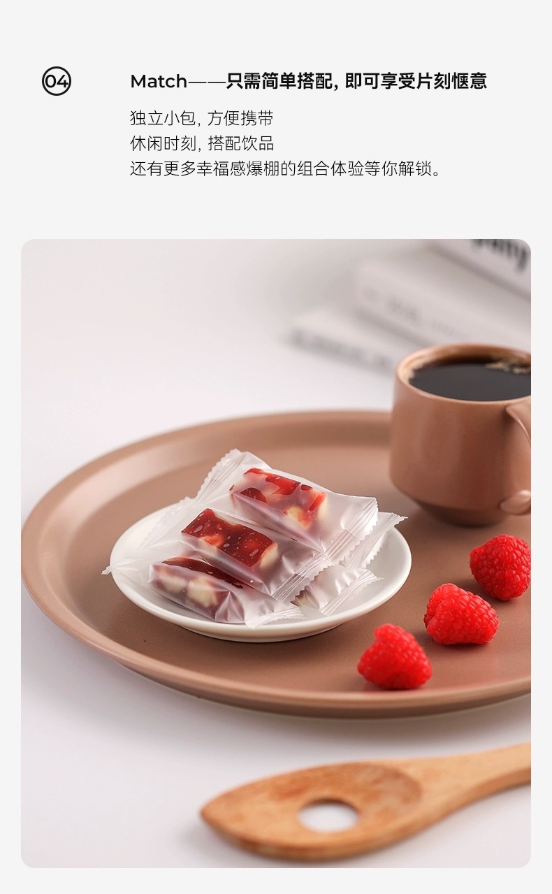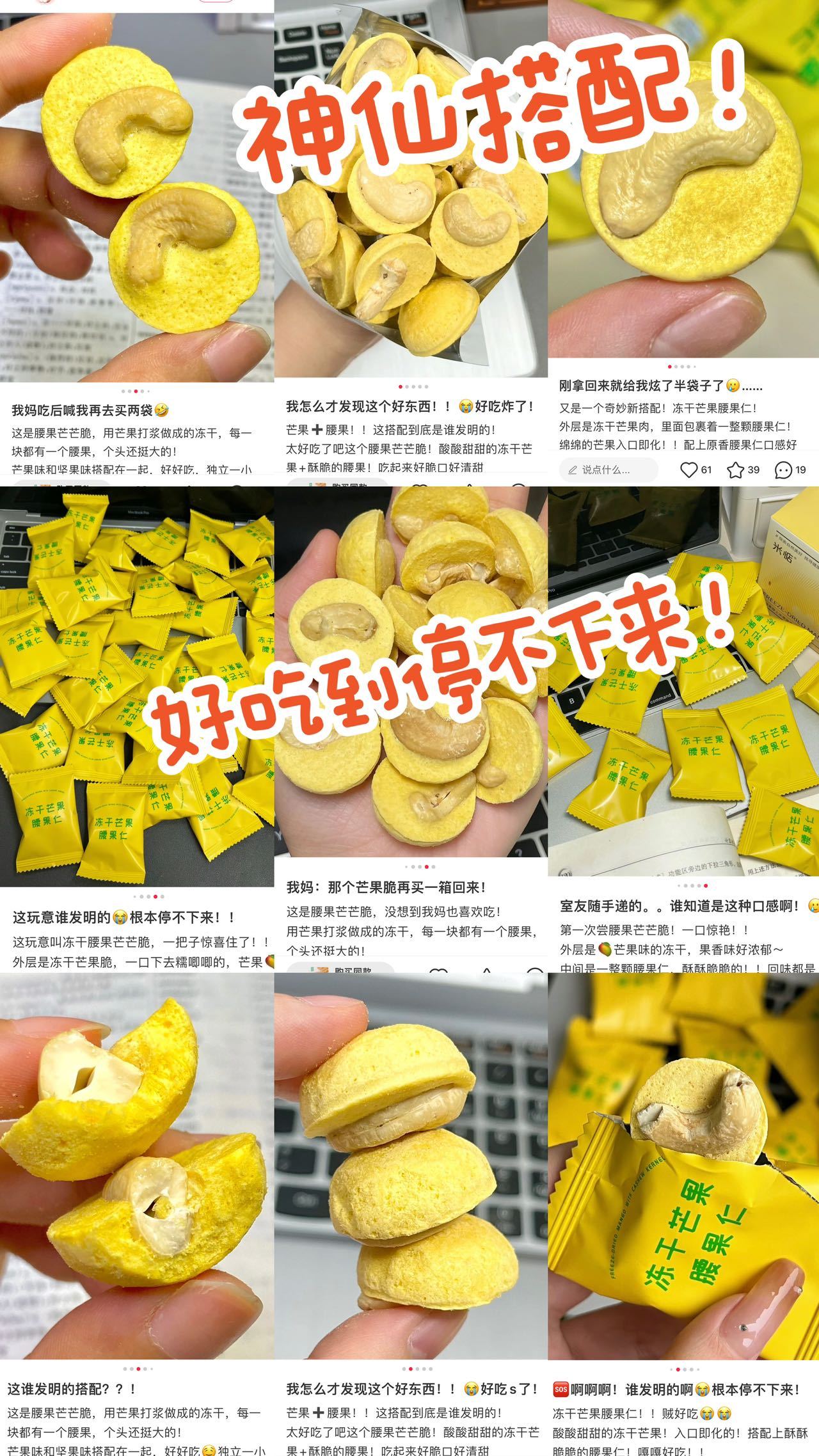 草莓原浆添加量≥50%,腰果仁添加量≥38%