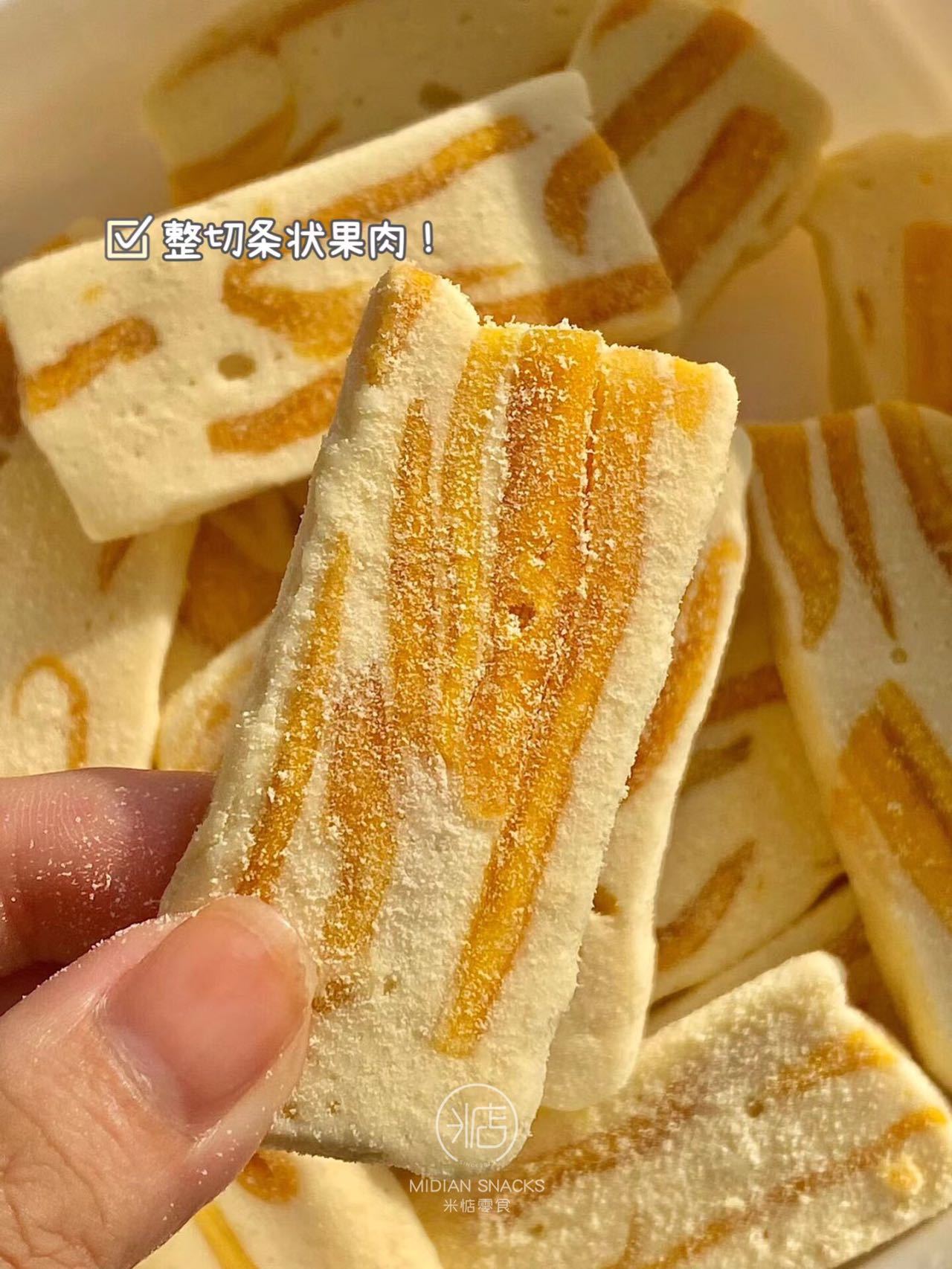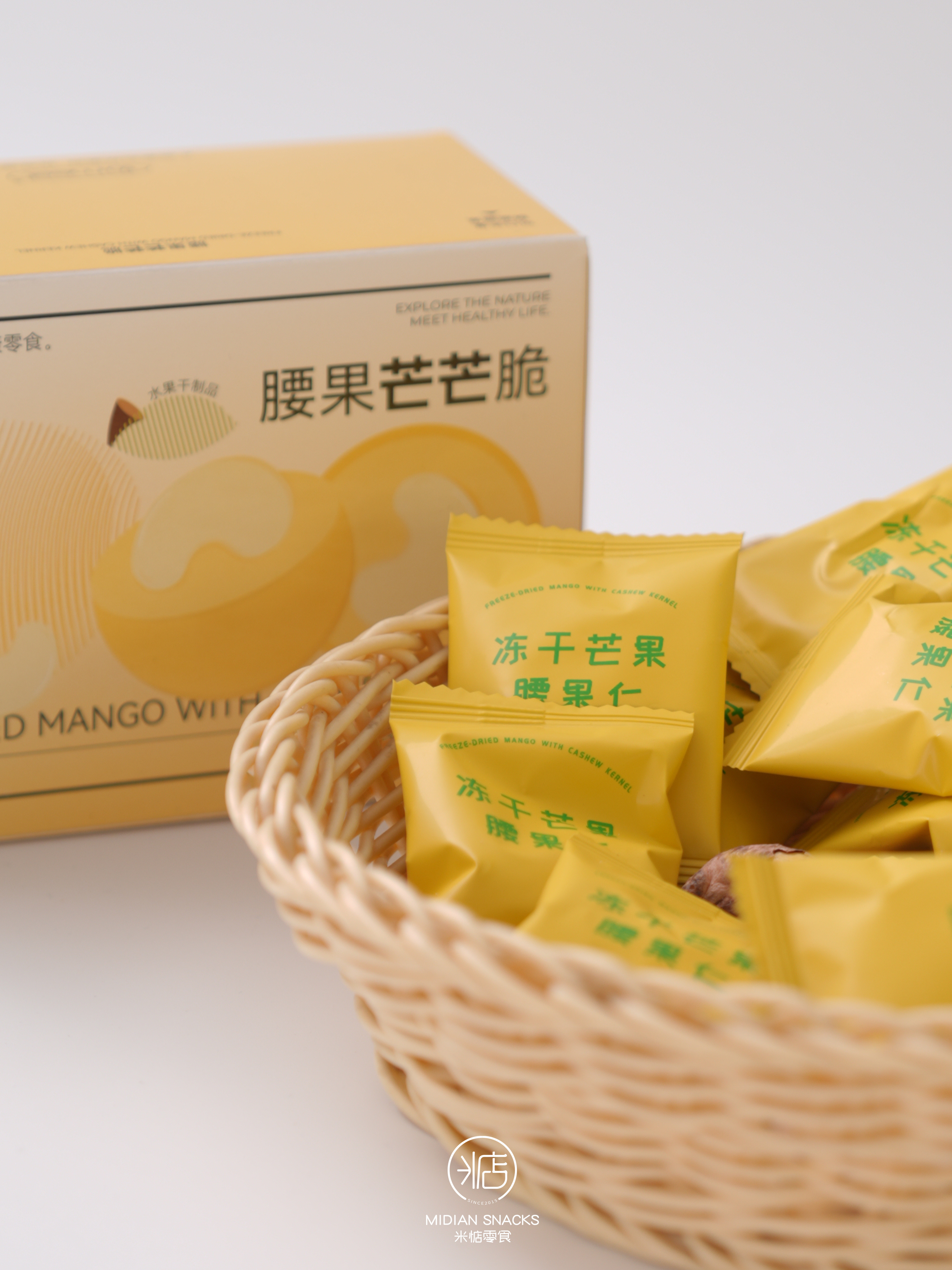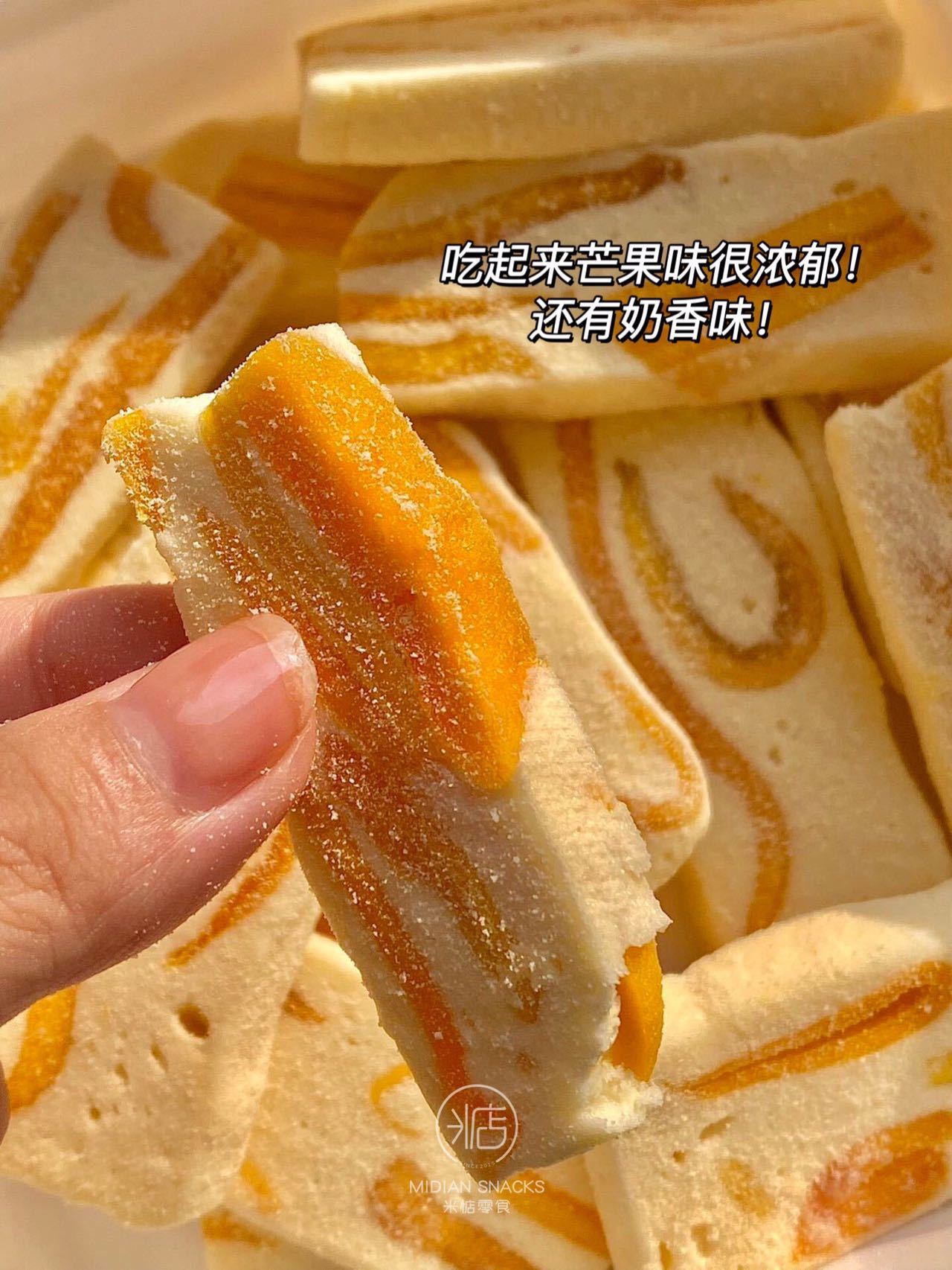 芒果打浆铺盘,加入腰果仁后快速冻干