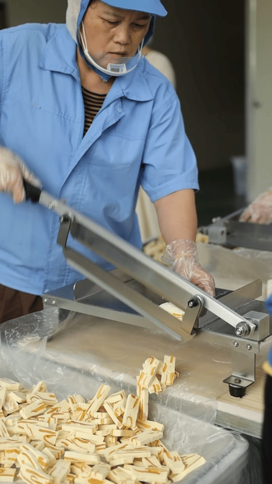多道工序加持,恒温烘干,让笋丝豆干成型。