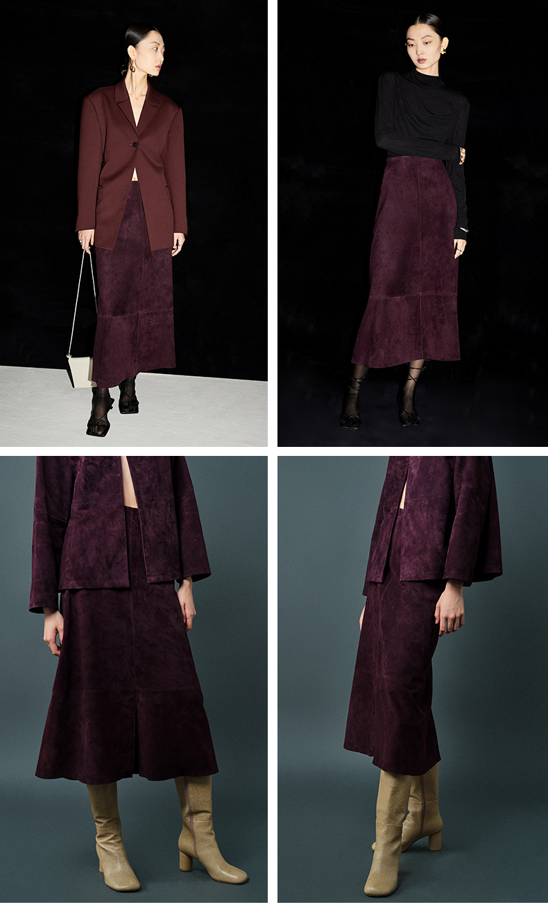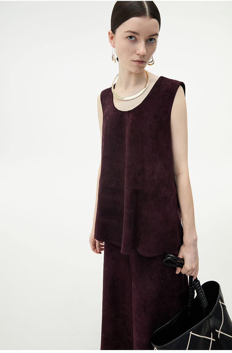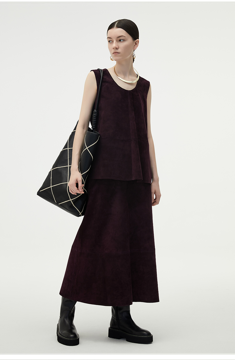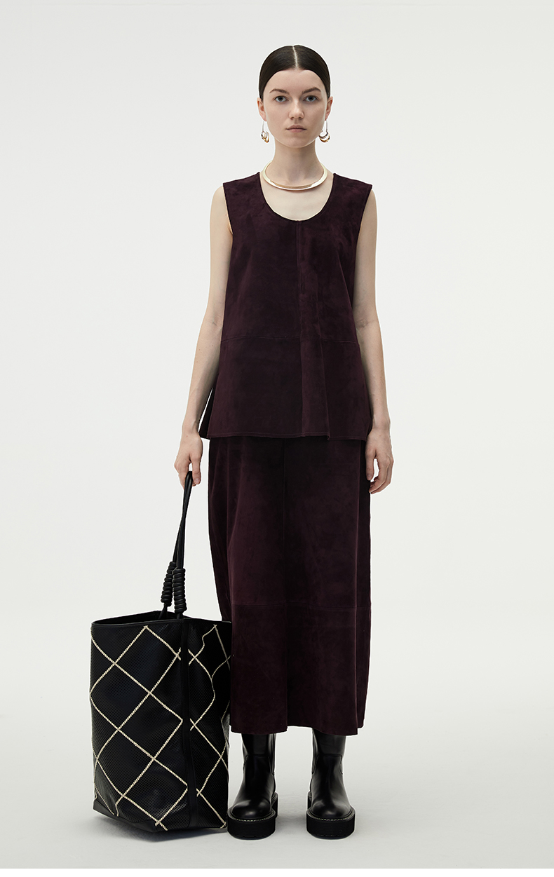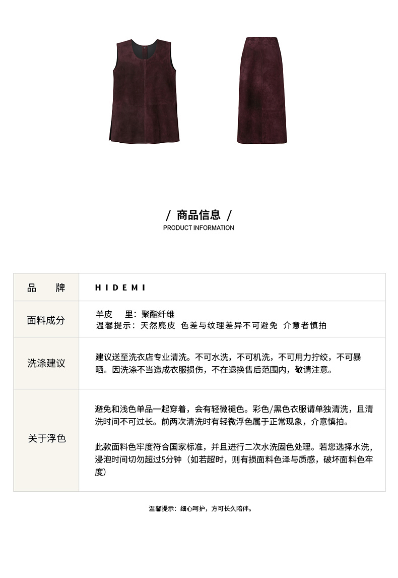 HIDEMI 勃艮第红麂皮套装 纽扣式背心/半身长裙