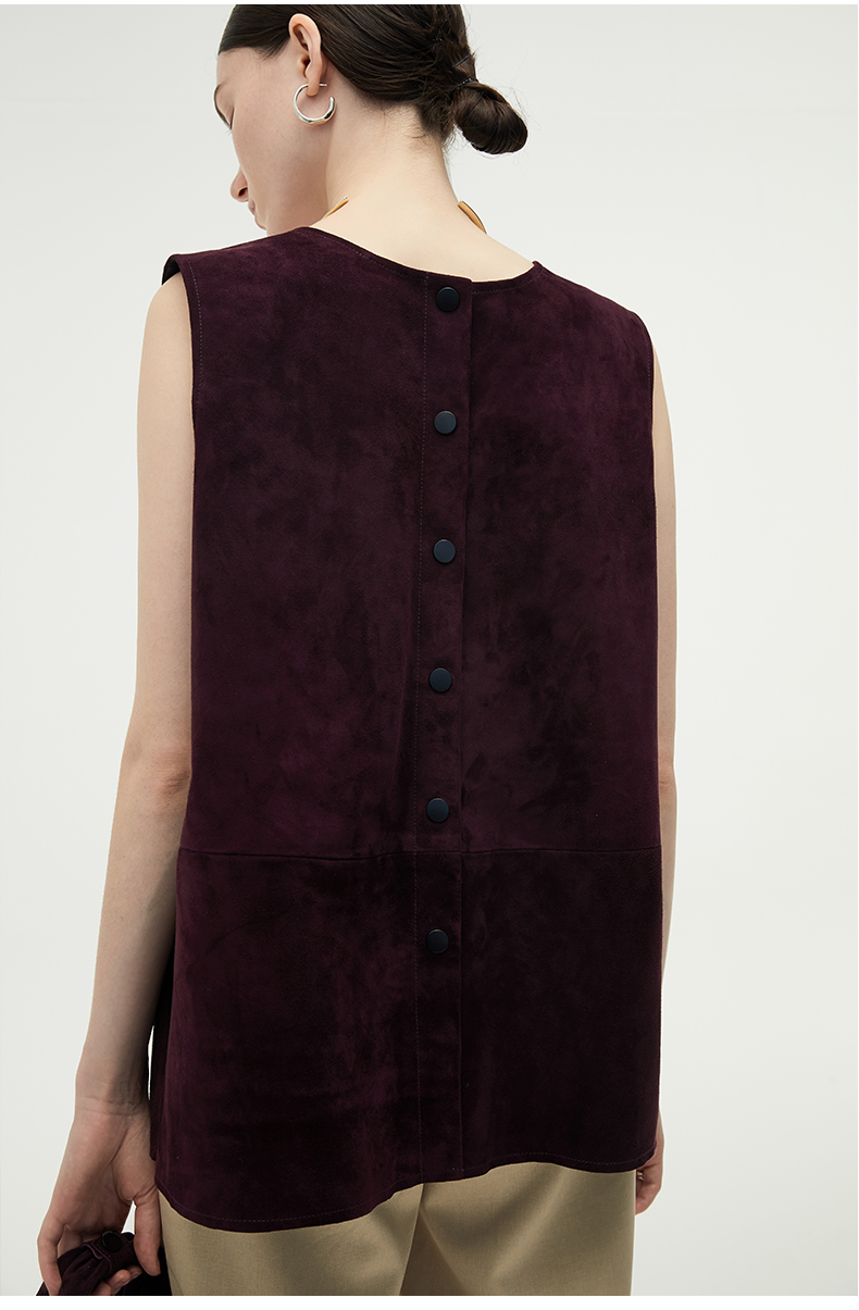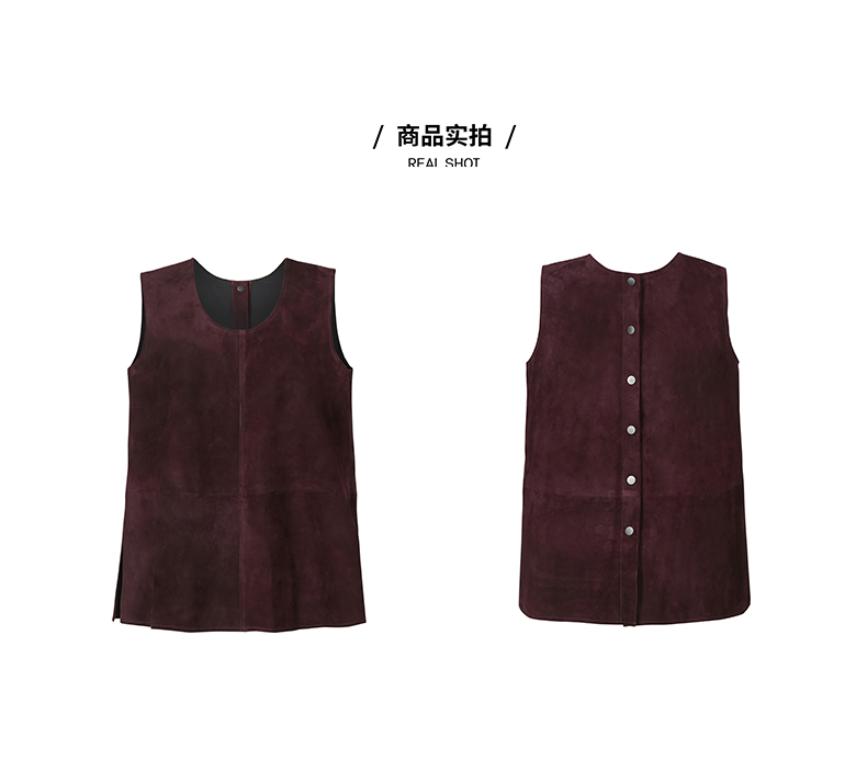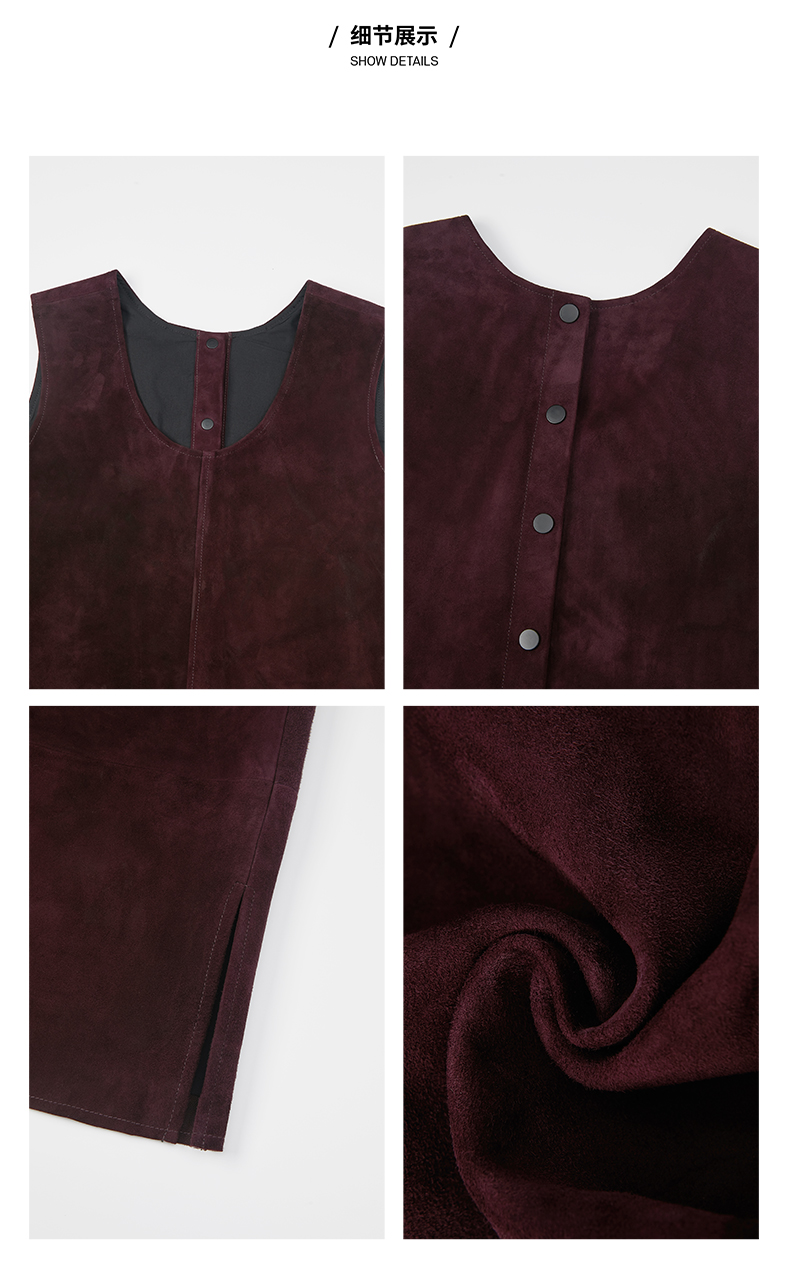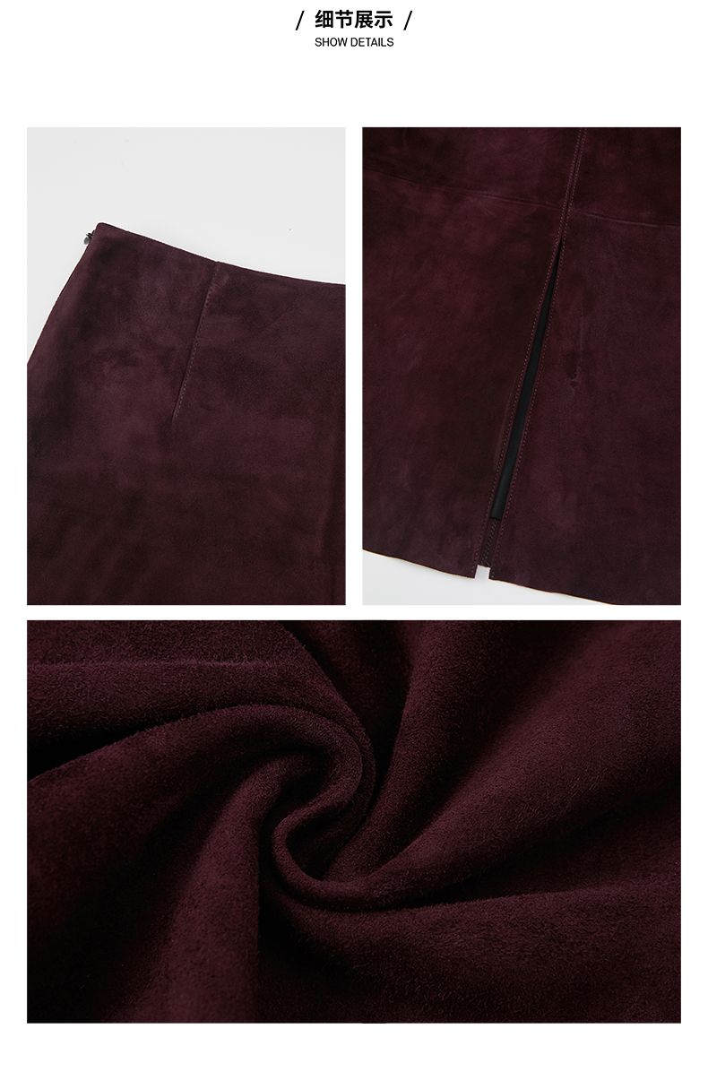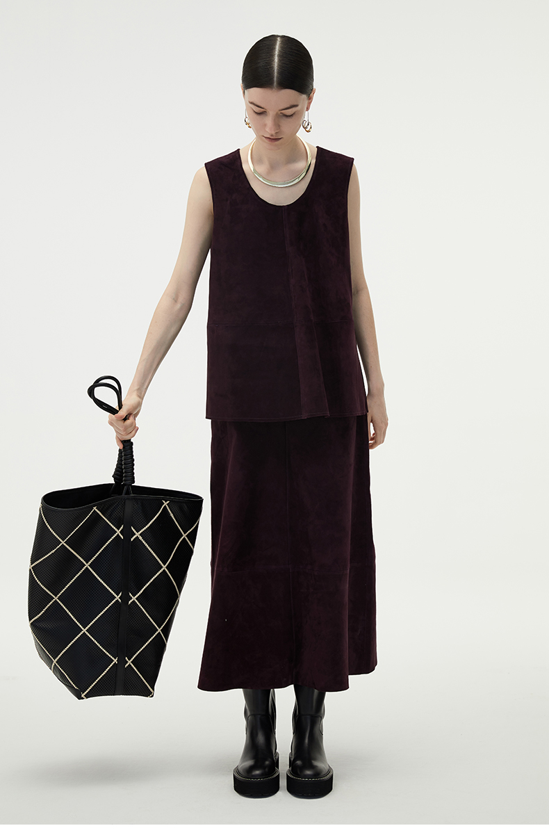 HIDEMI 勃艮第红麂皮套装 纽扣式背心/半身长裙