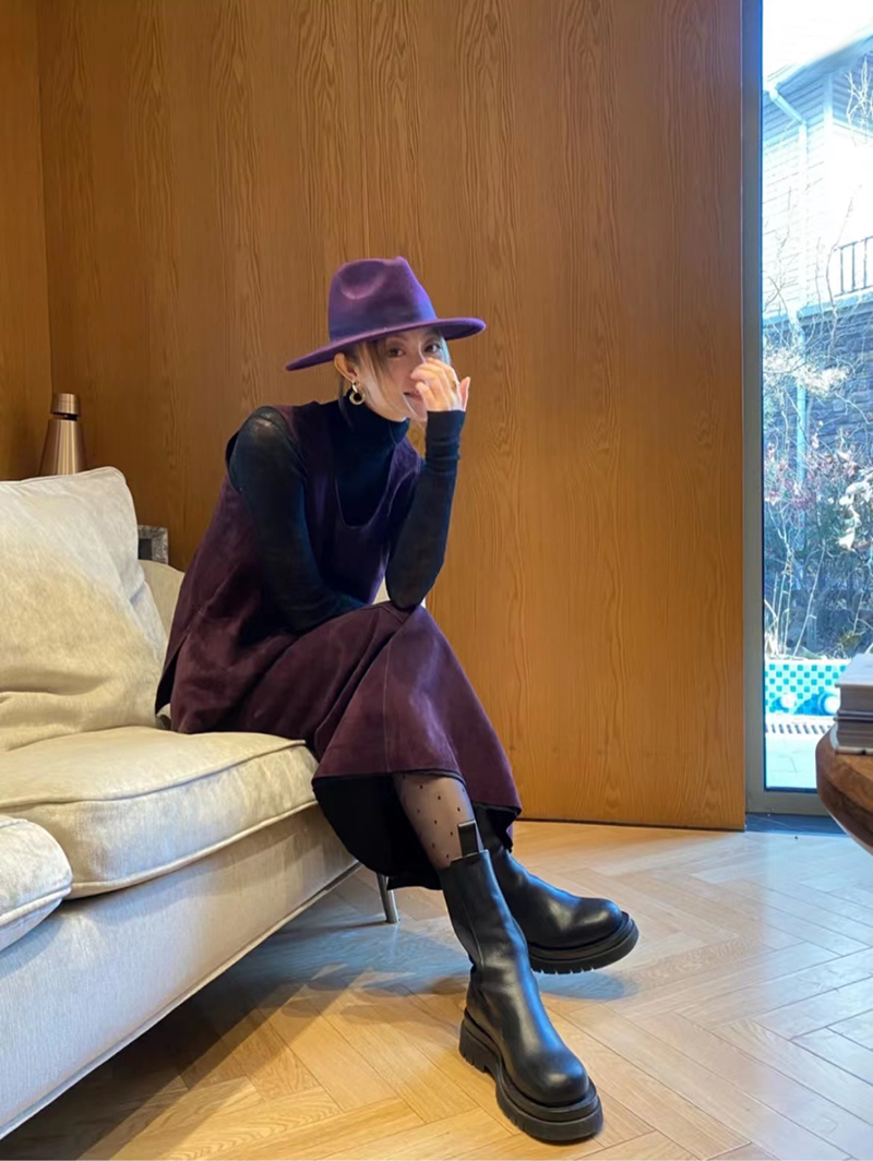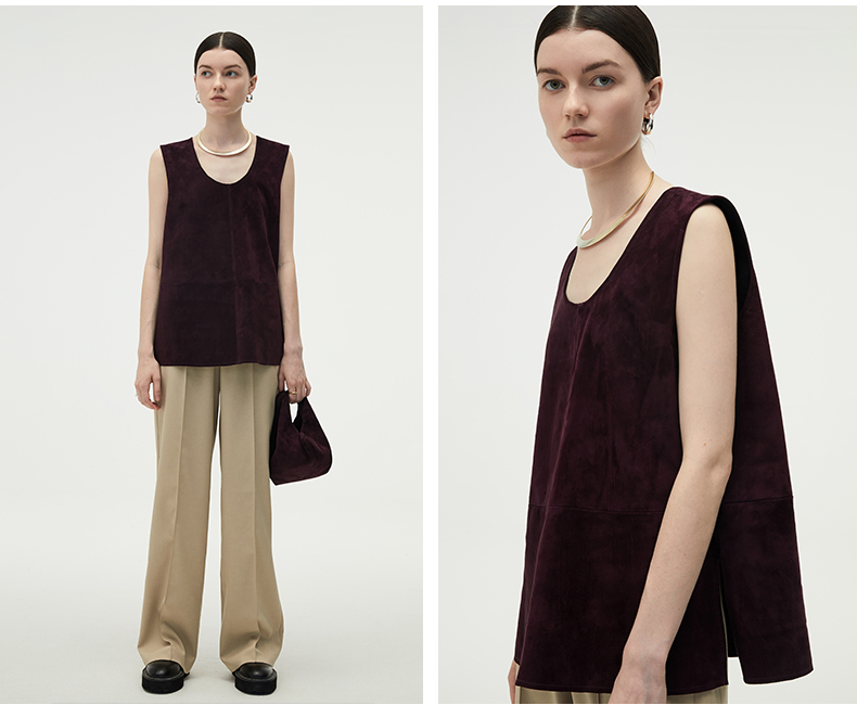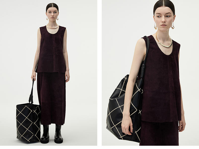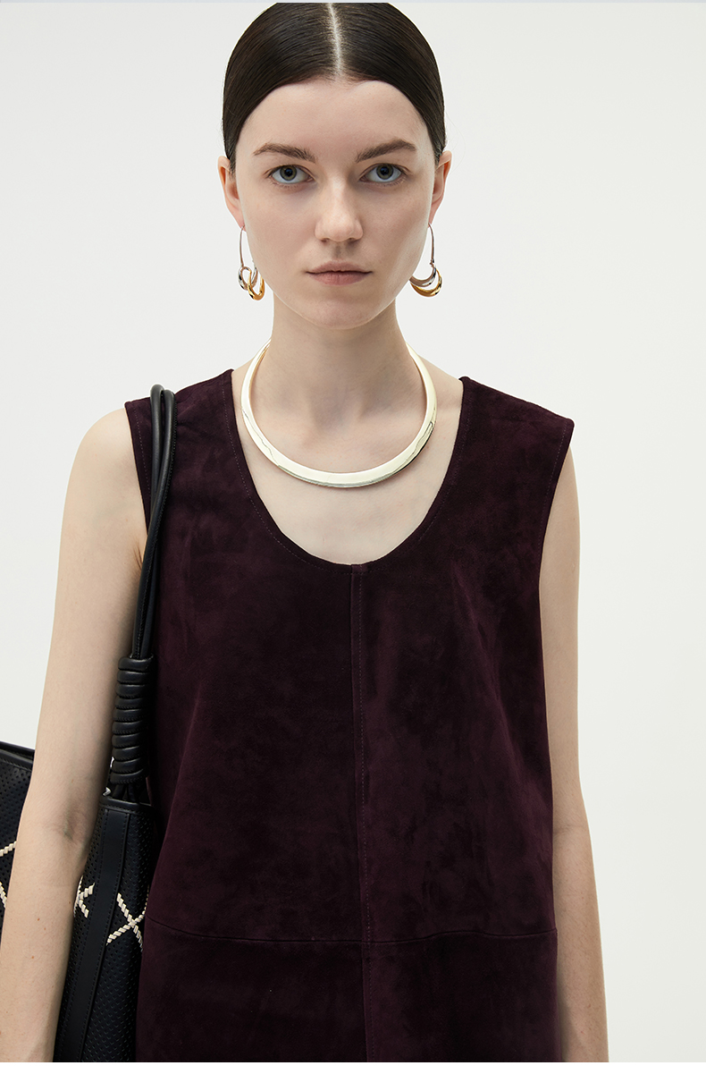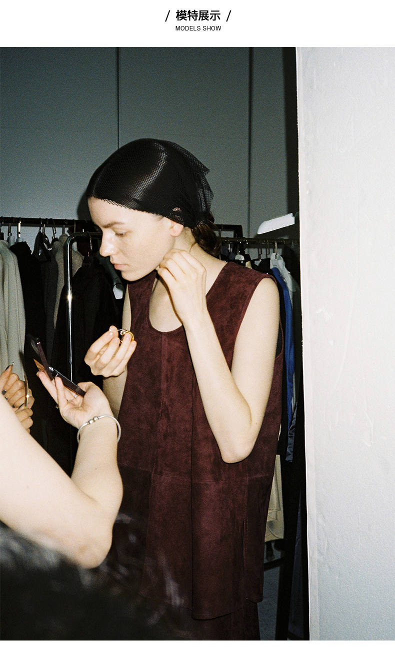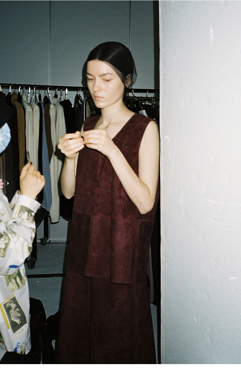 HIDEMI 勃艮第红麂皮套装 纽扣式背心/半身长裙