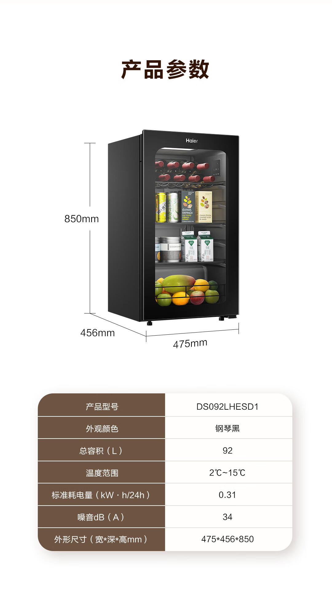海尔(Haier)92升家用客厅办公室冷藏柜暖藏冰吧 茶叶饮料水果蔬菜保鲜柜囤货小型LC-92LHESD1