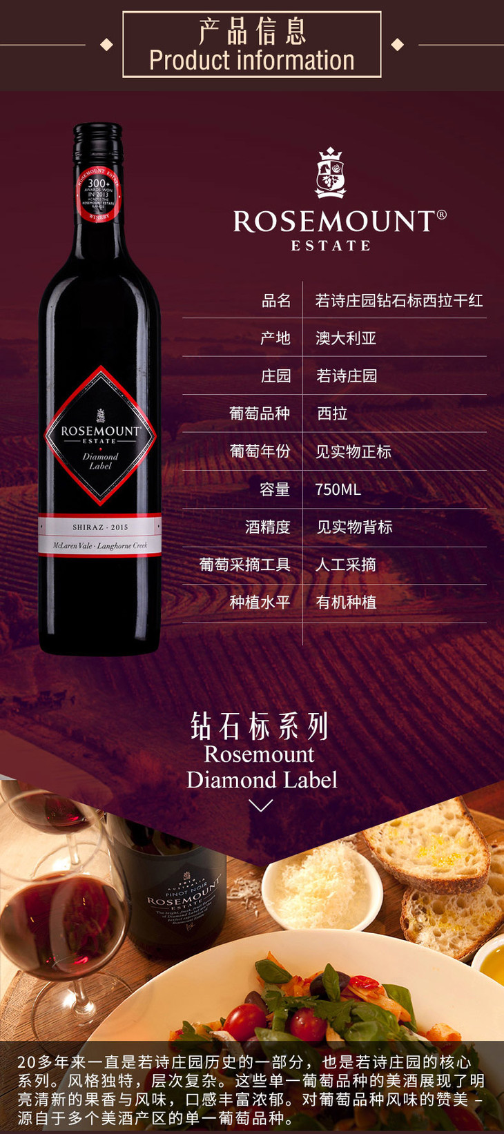 【若诗庄园】钻石标西拉干红葡萄酒 2016