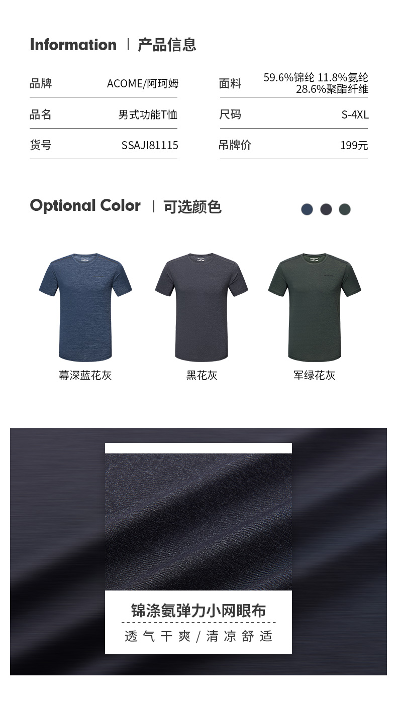 Senselead森力/男式功能T恤 SSAJI81115