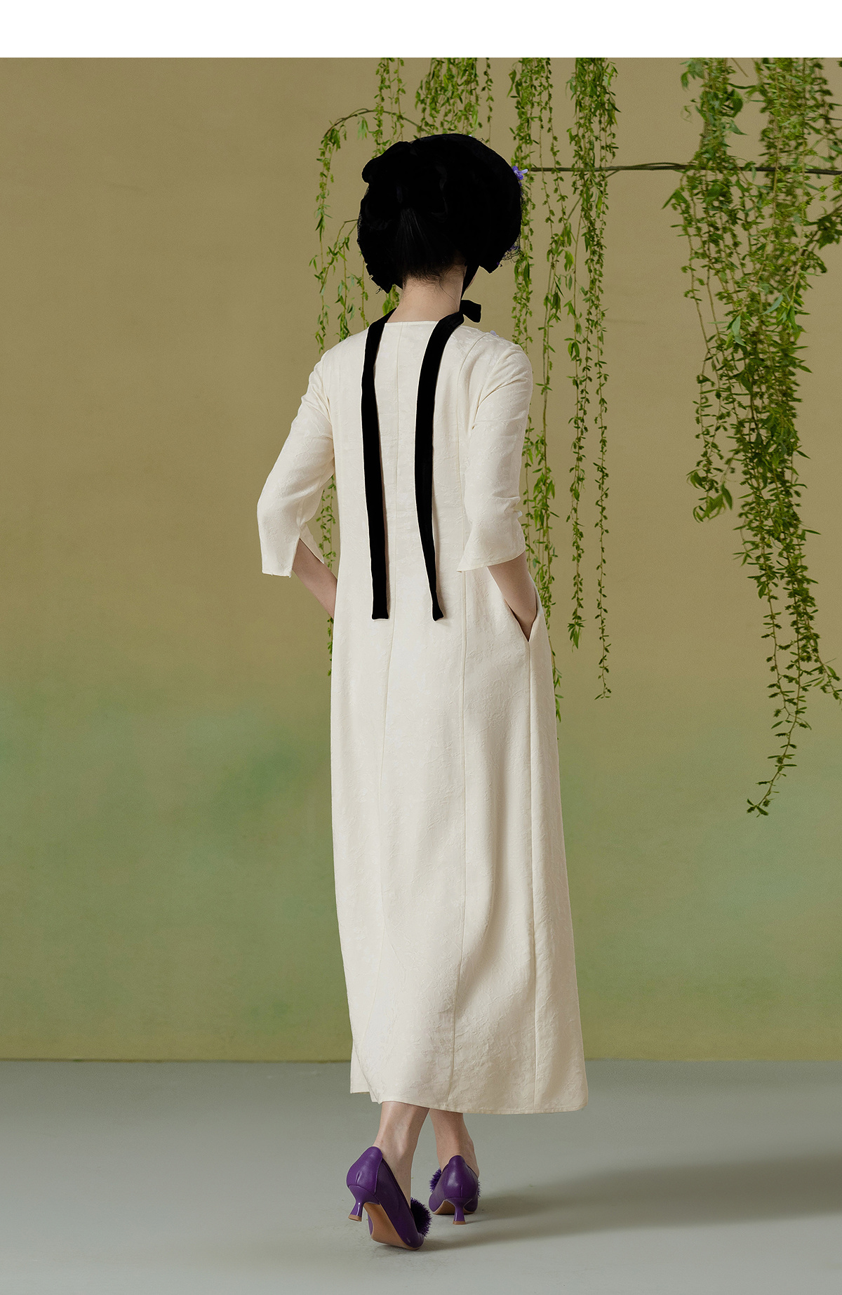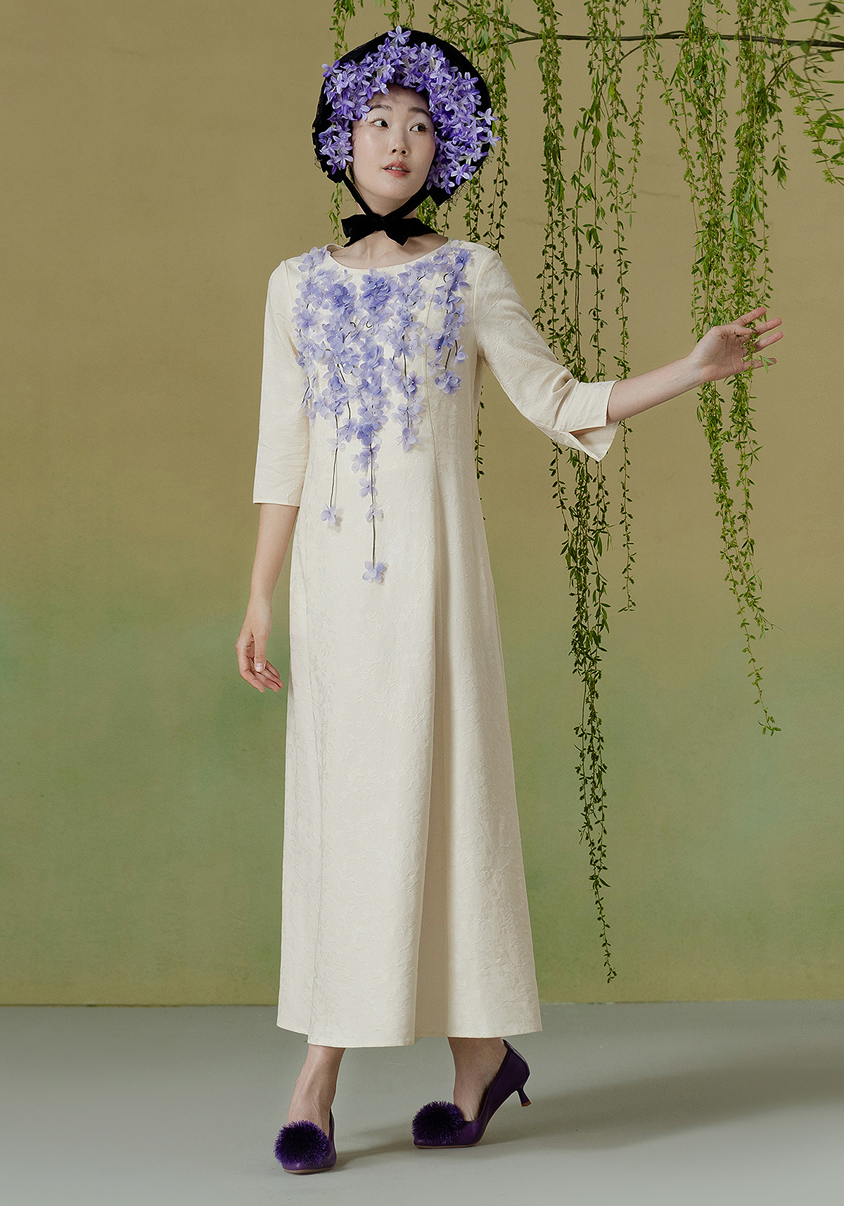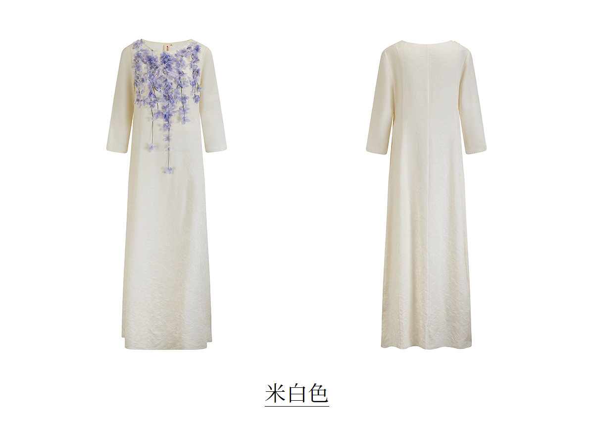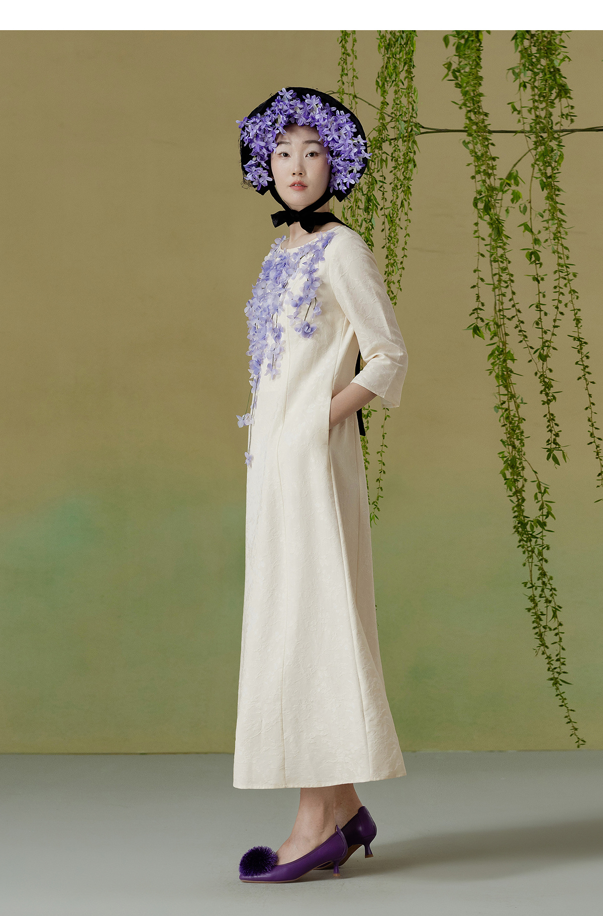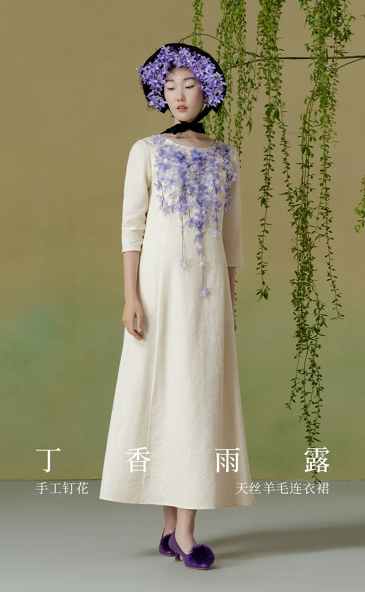 【林栖设计小店】【现货】秀场同款丁香花七分袖连衣裙天丝羊毛宽松2025春夏新品裙子女S1953003
