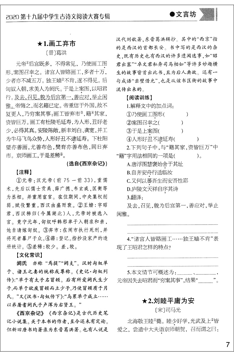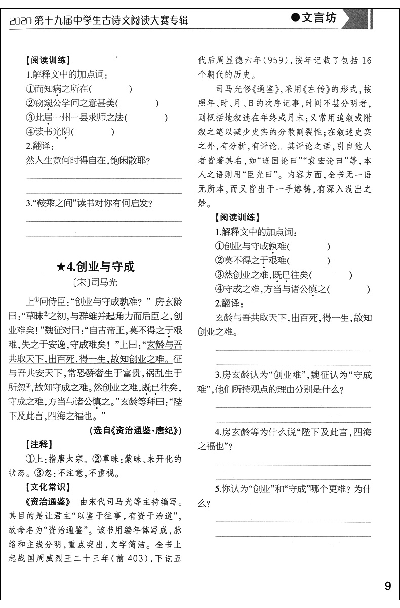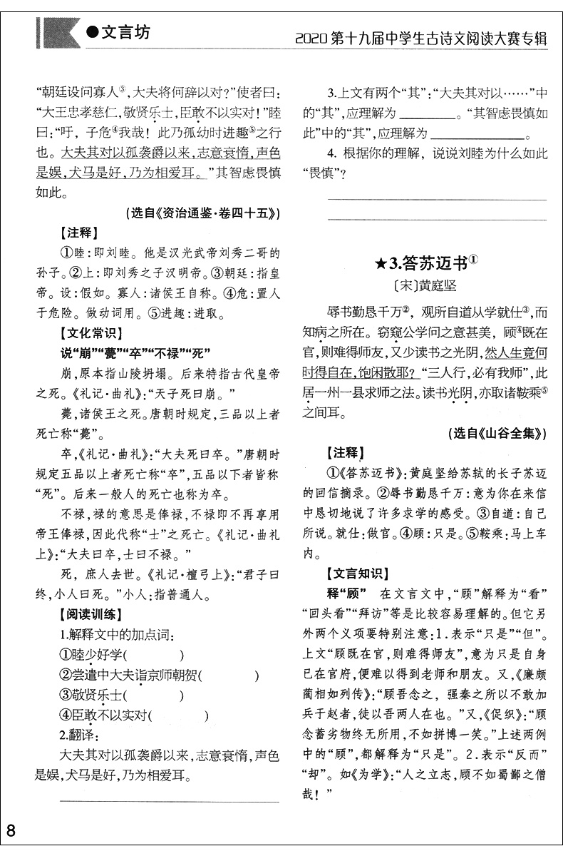 2020第十九届中学生古诗文阅读大赛专辑 高中卷 高中古诗文文言文训练 高中中职适用 文汇出版社