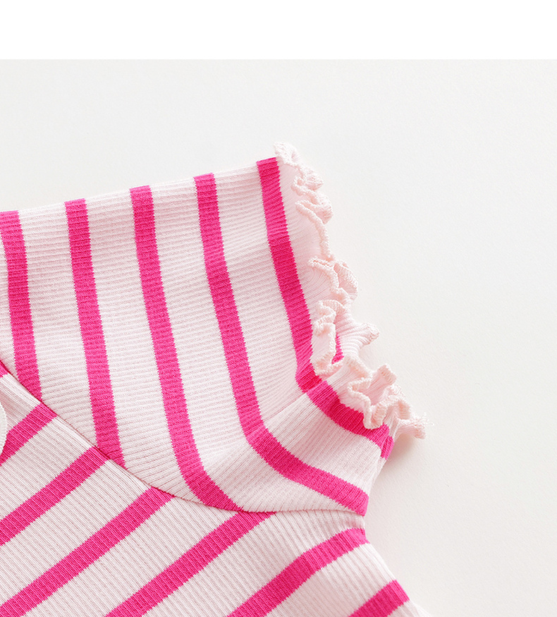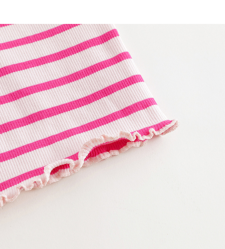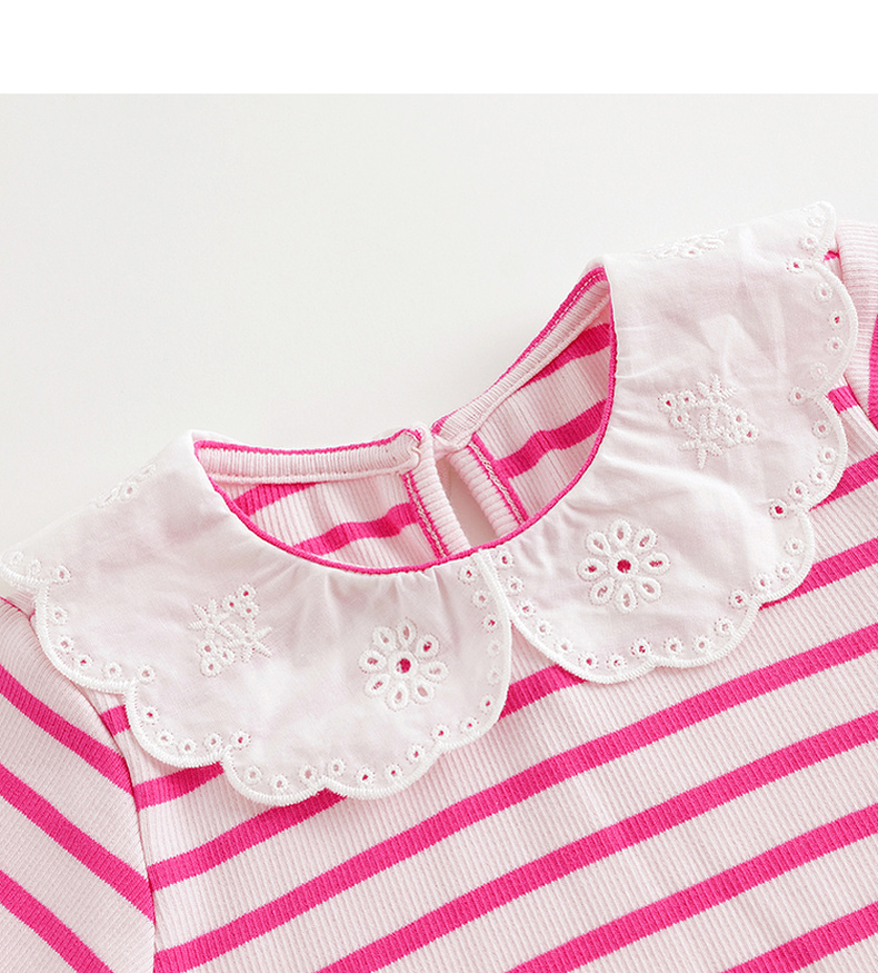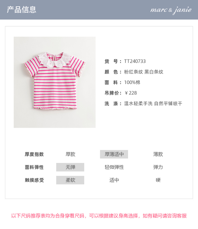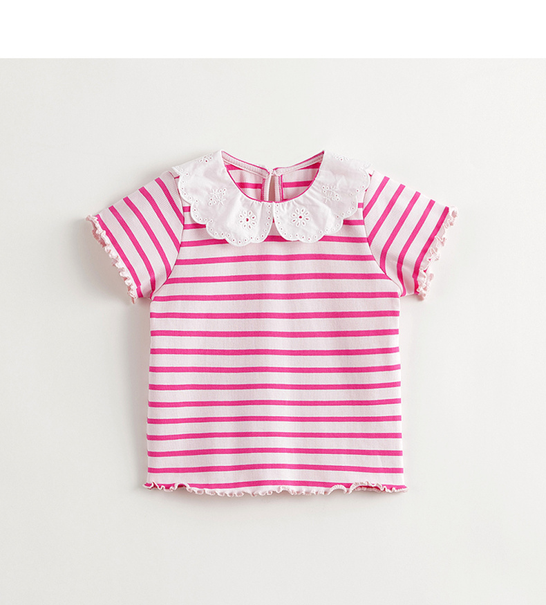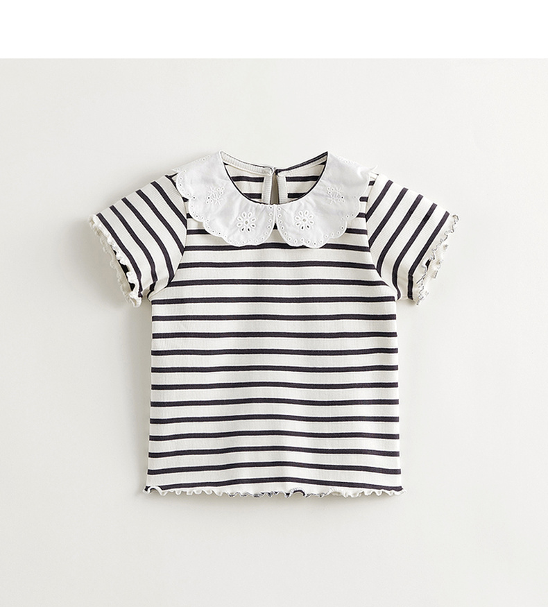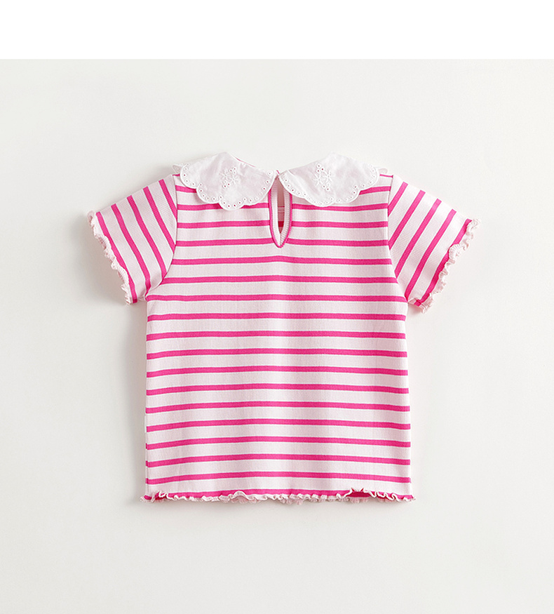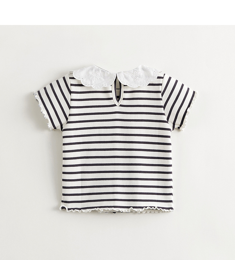 马克珍妮女童甜美娃娃领条纹短袖T恤儿童纯棉上衣夏装新款240733