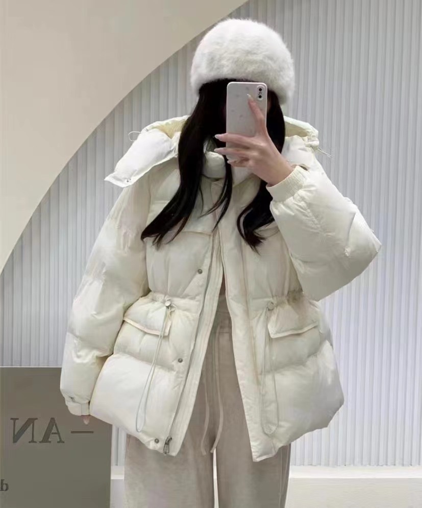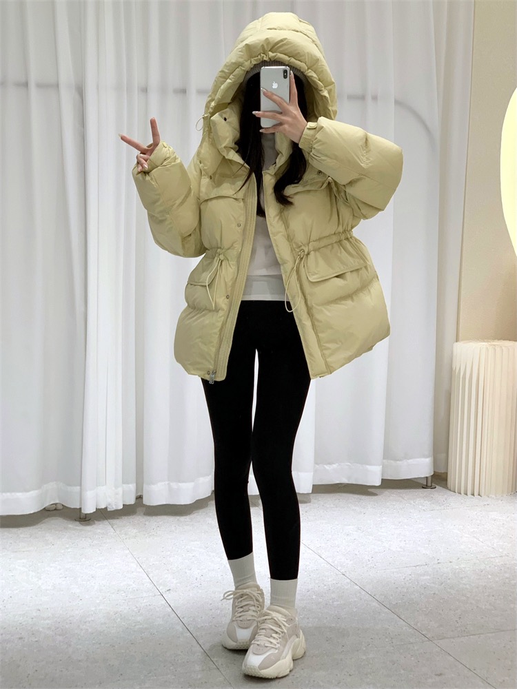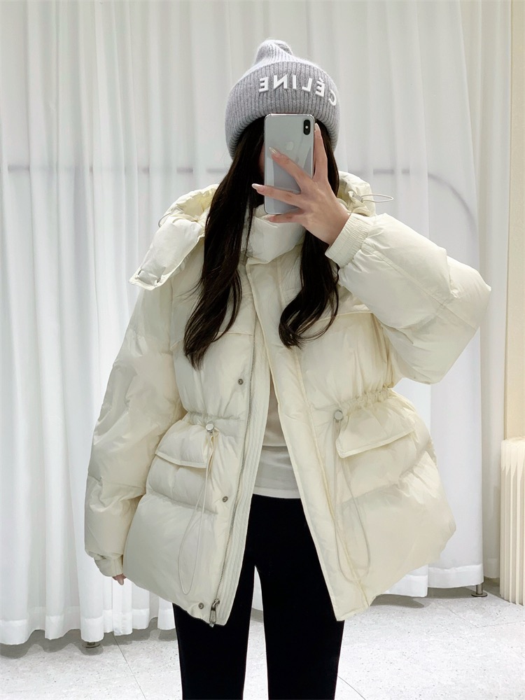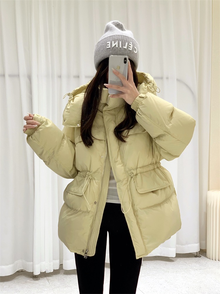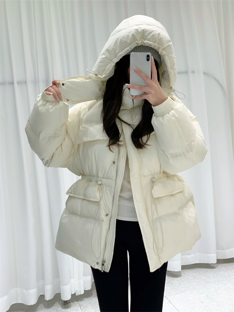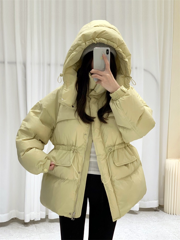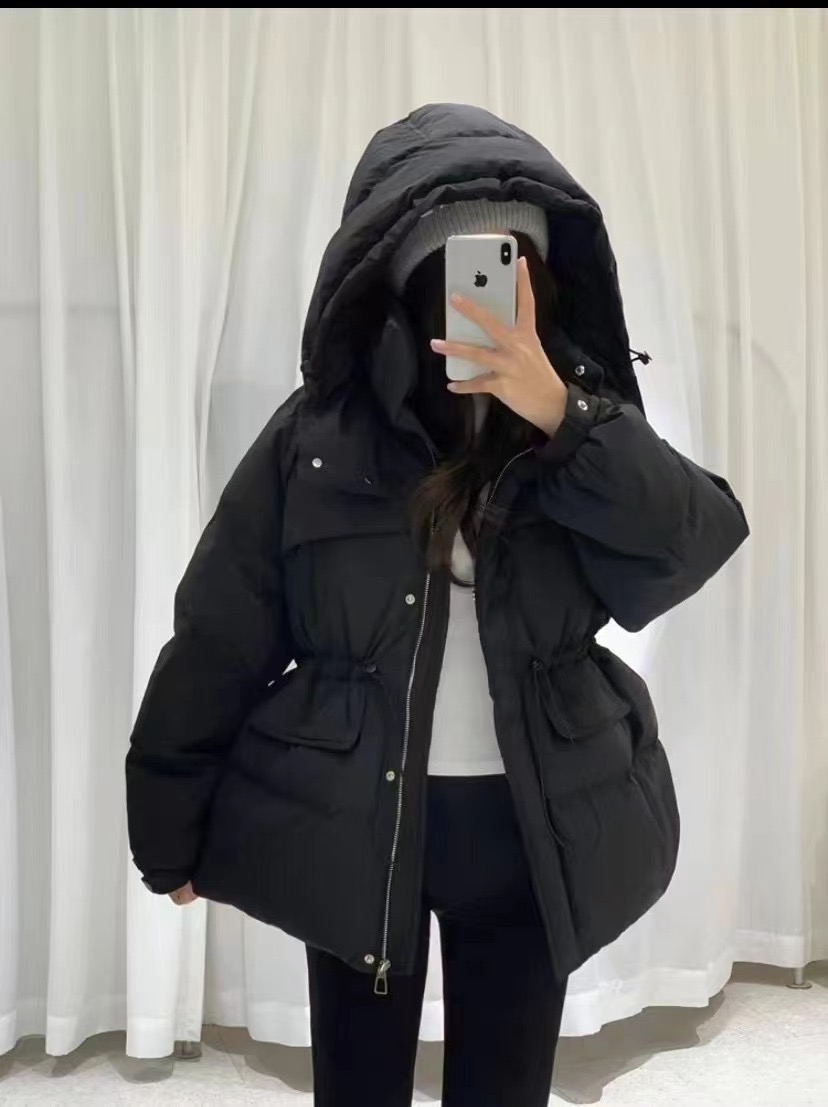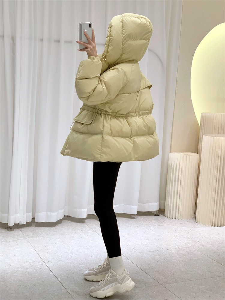 现货【YW】无忧购韩版中长款收腰显瘦50%白鸭绒连帽百搭羽绒服外套24012#(截单后3-5天发货)