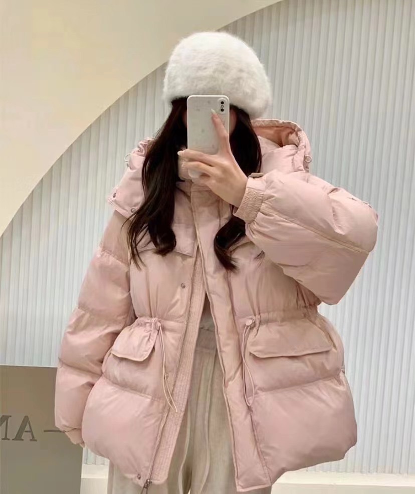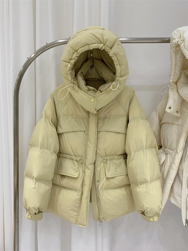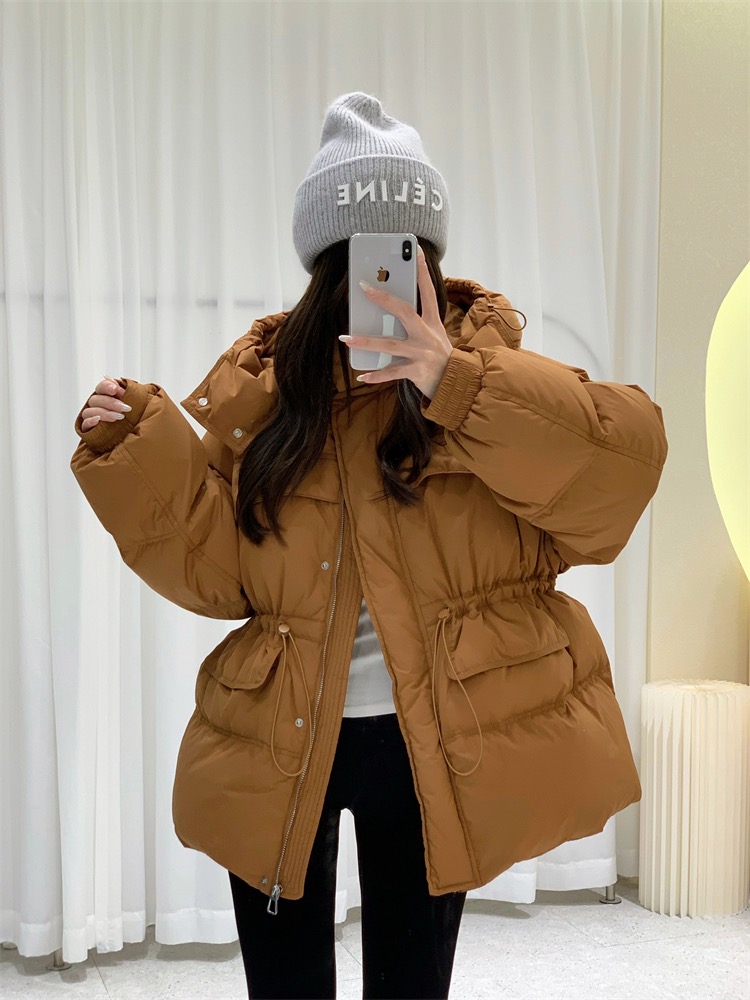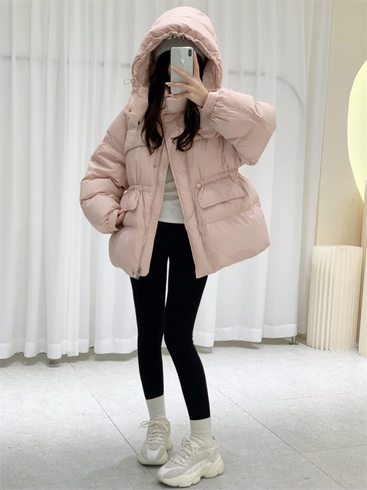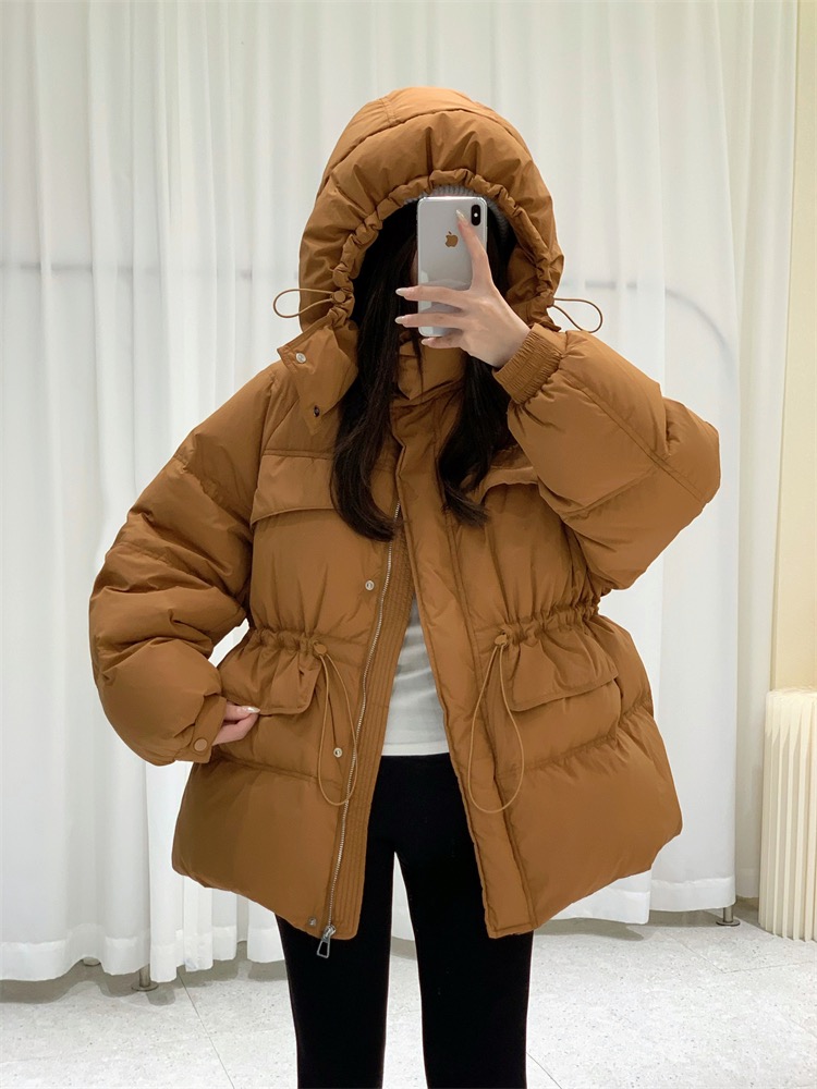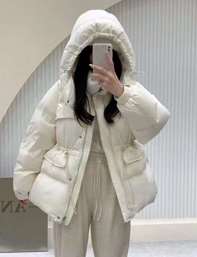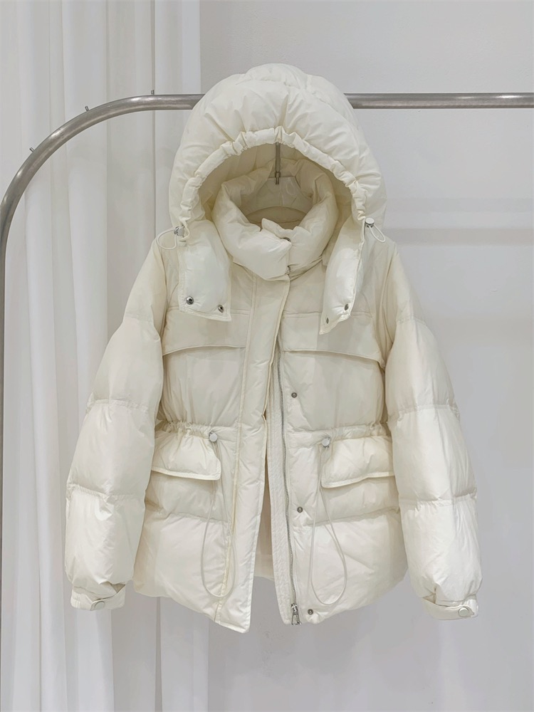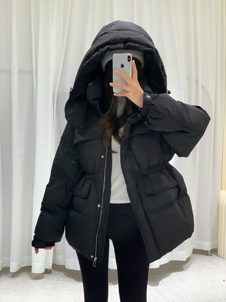 现货【YW】无忧购韩版中长款收腰显瘦50%白鸭绒连帽百搭羽绒服外套24012#(截单后3-5天发货)