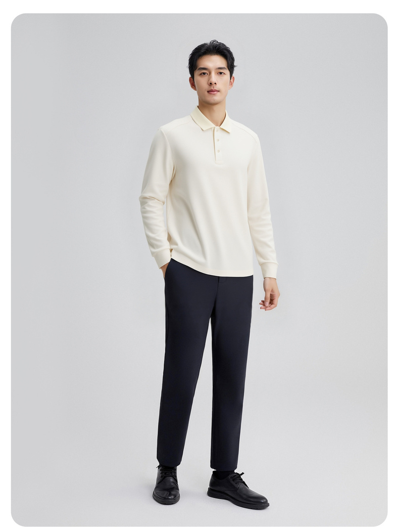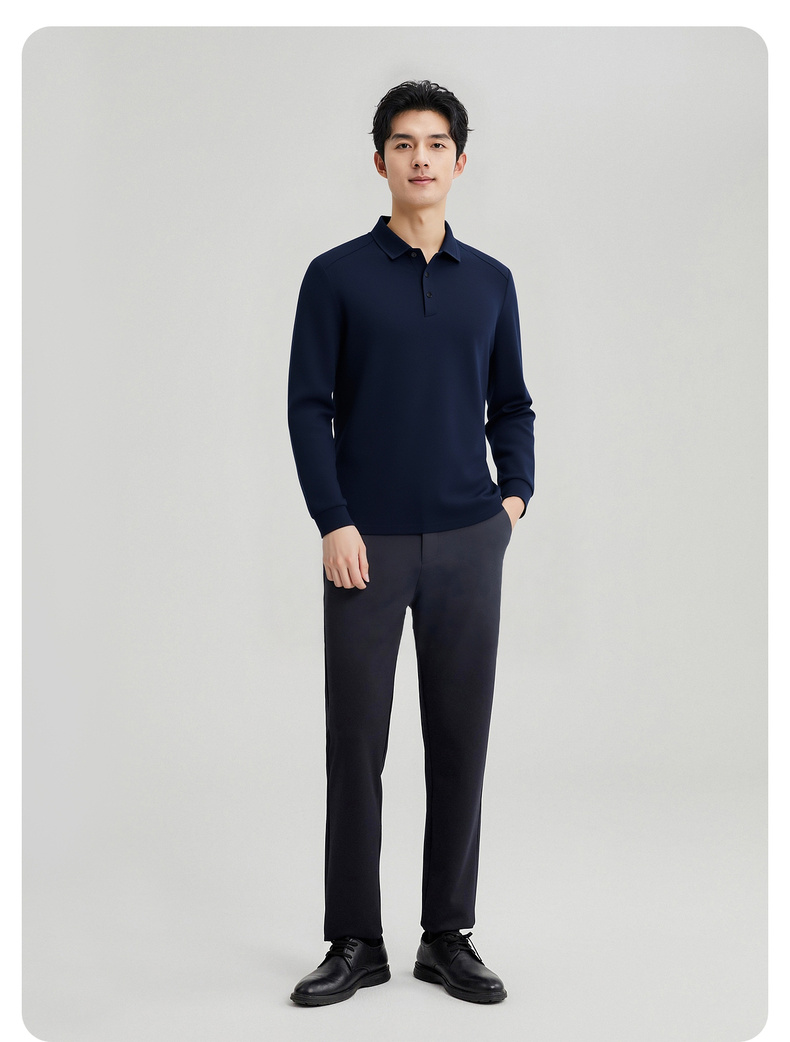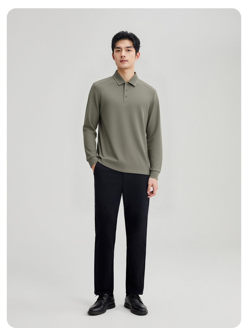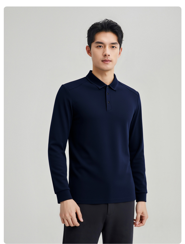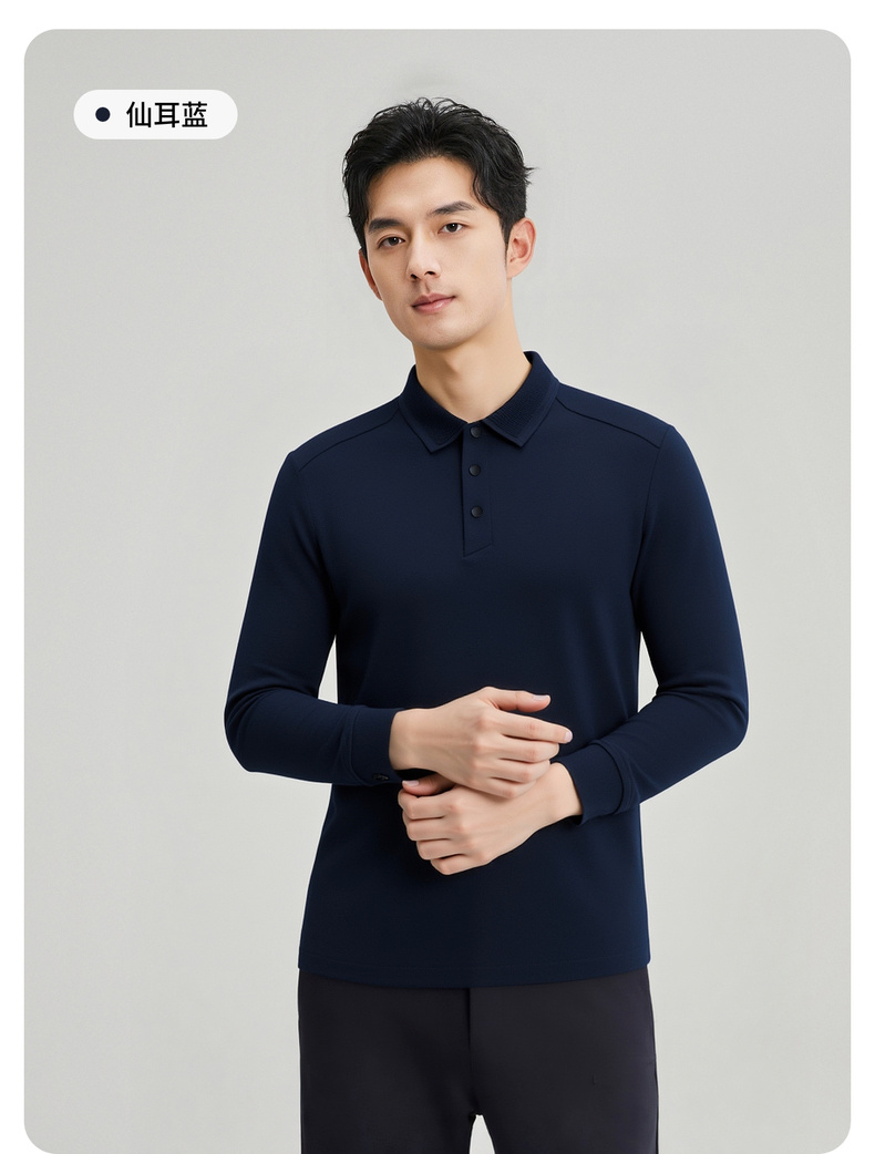 圣得西男士珠地网眼面料亲肤透气POLO衫2025秋季高弹舒适上衣