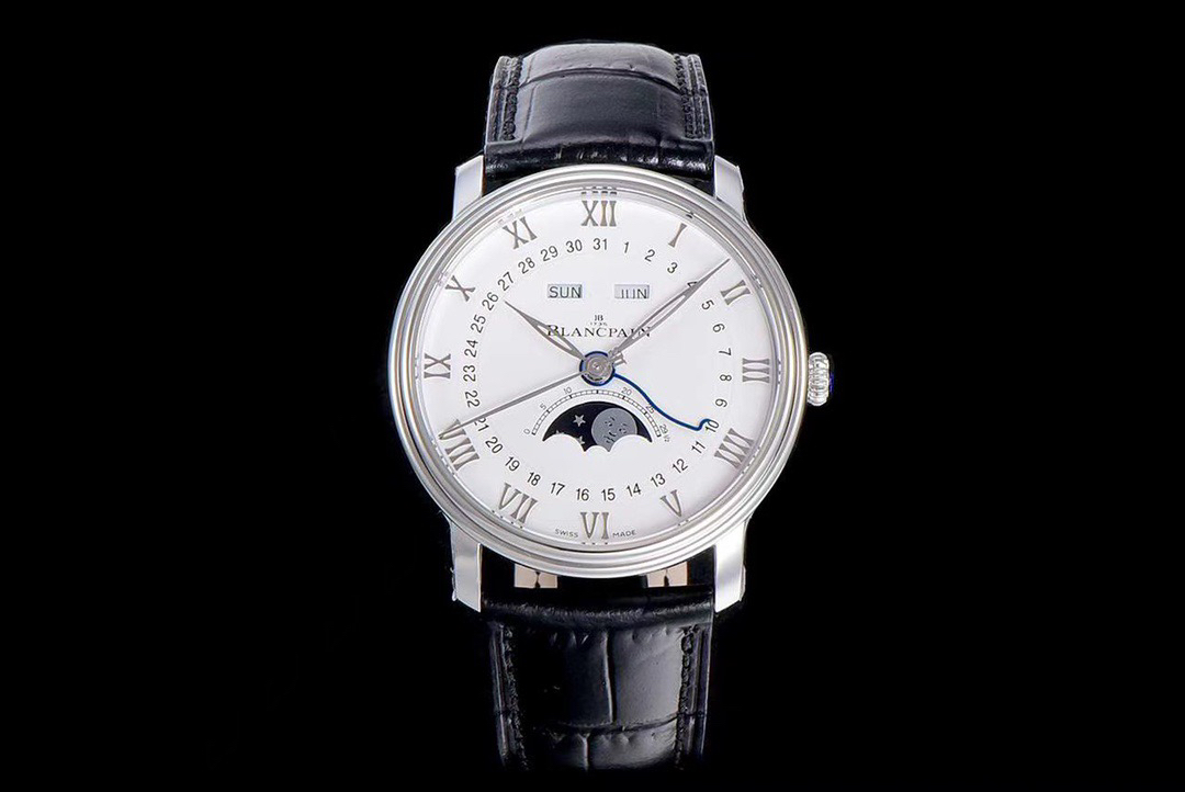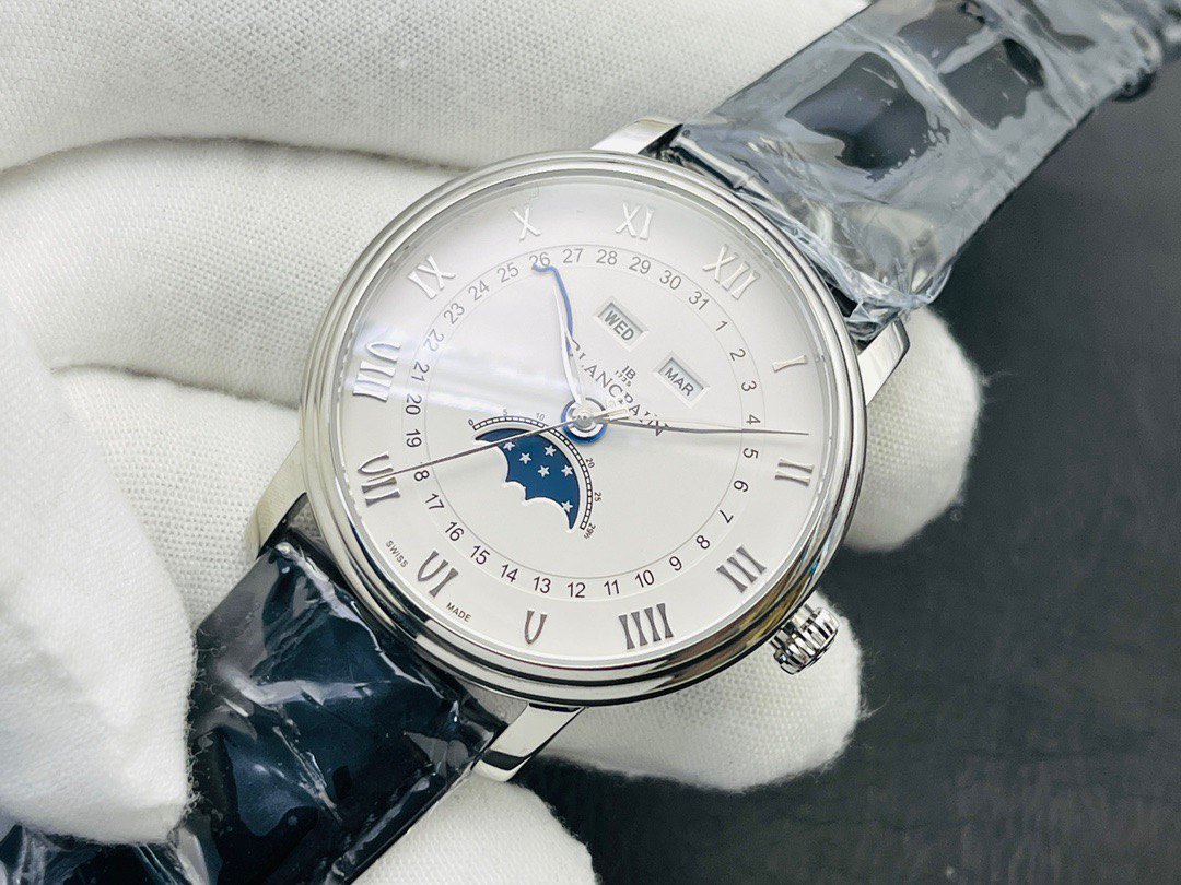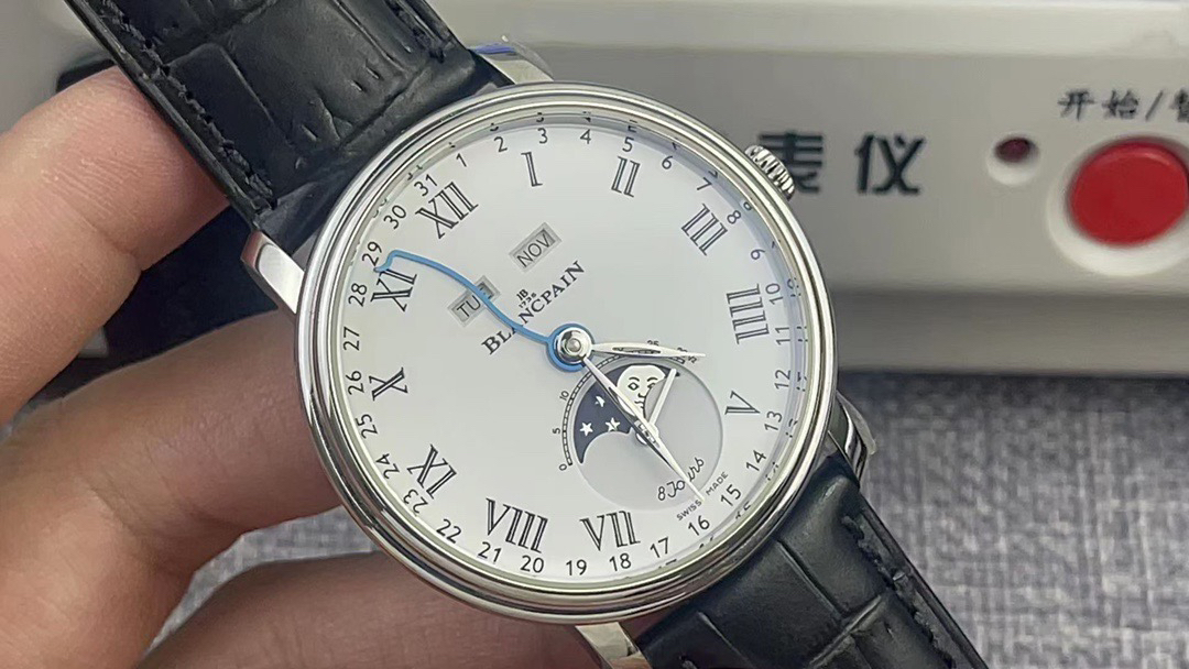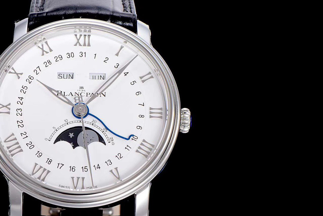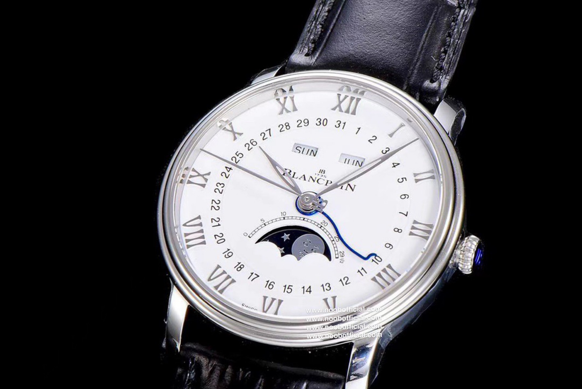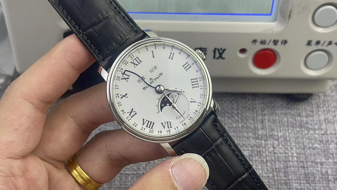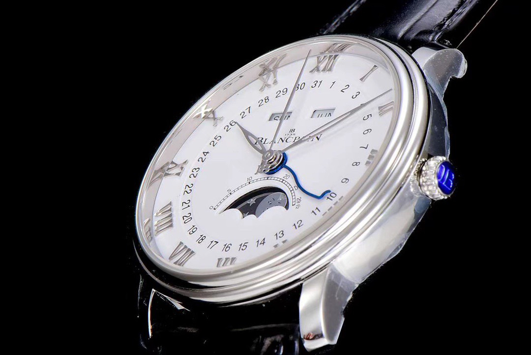 OM厂 V2版 5504宝珀 经典系列 6654 月相腕表,表壳、日历字体、月相盘再升级,带真月相、全日历功能,40x12mm,复刻cal.6654自动机械机芯,蓝宝石镜面,意大利牛皮表带,折叠扣