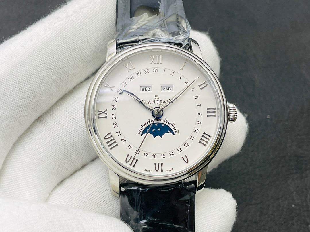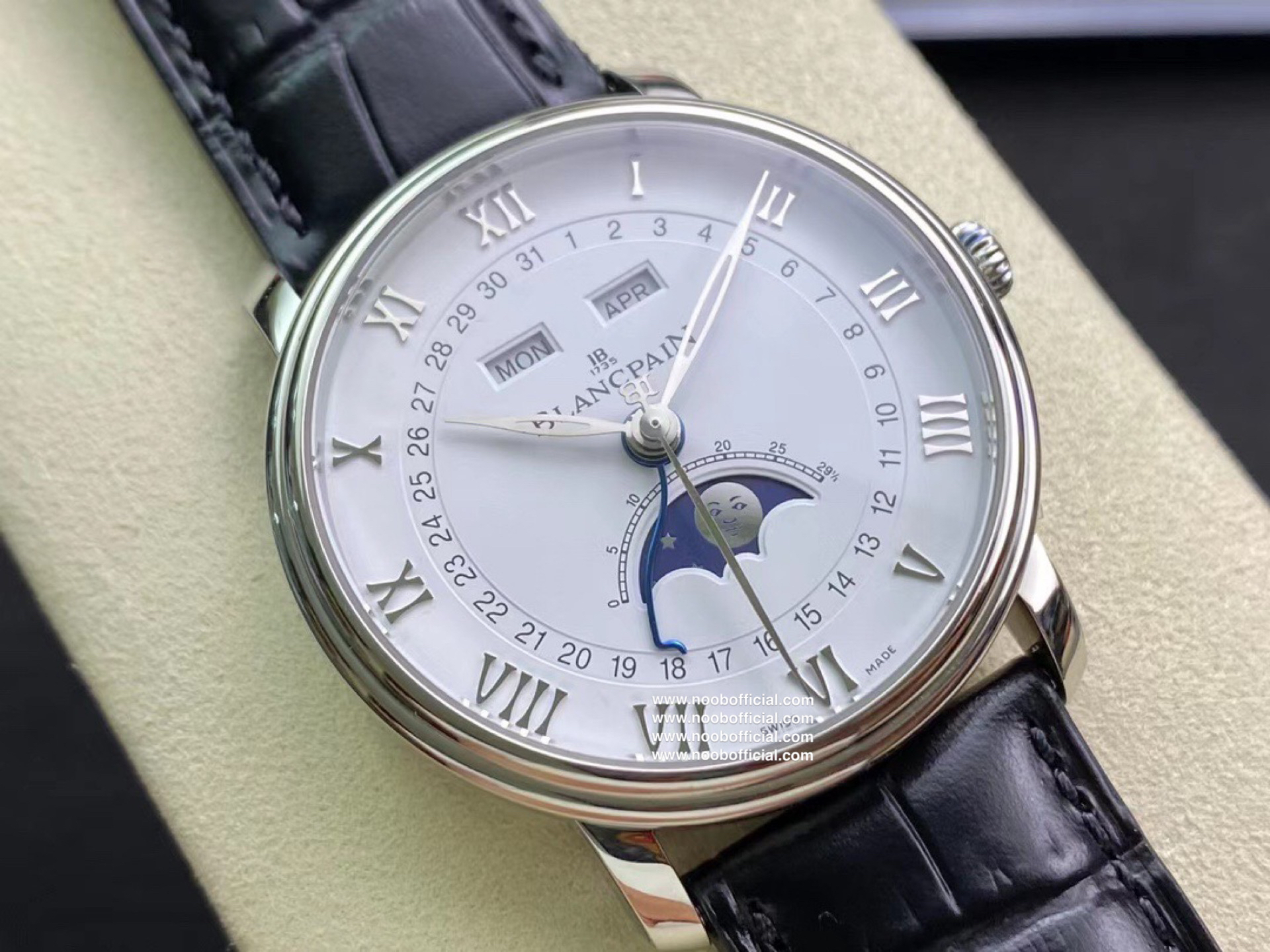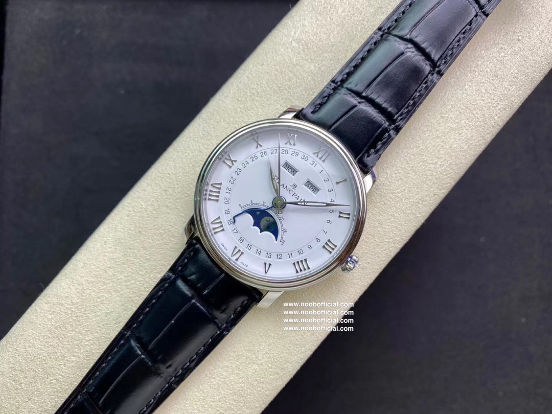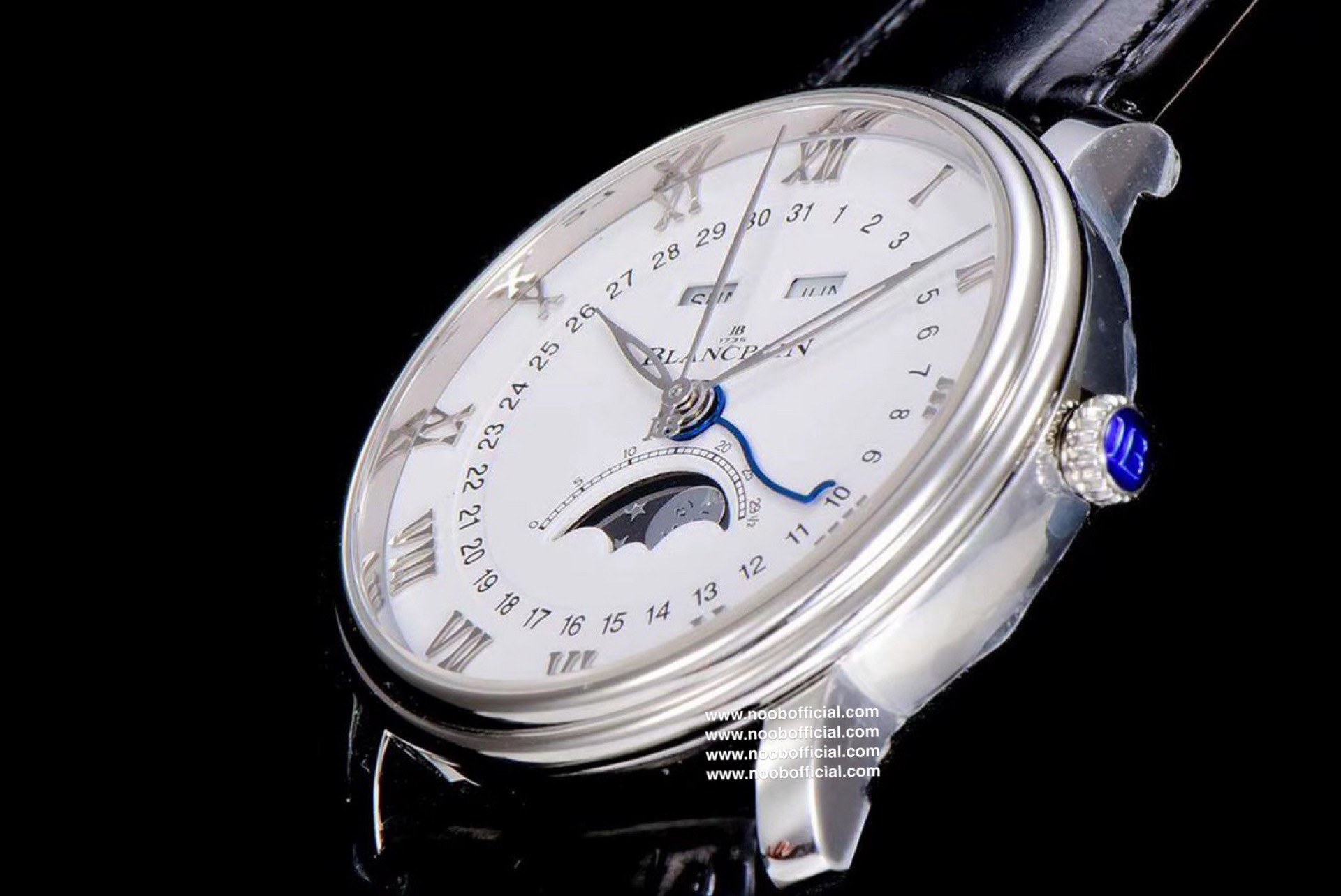 OM厂 V2版 5504宝珀 经典系列 6654 月相腕表,表壳、日历字体、月相盘再升级,带真月相、全日历功能,40x12mm,复刻cal.6654自动机械机芯,蓝宝石镜面,意大利牛皮表带,折叠扣