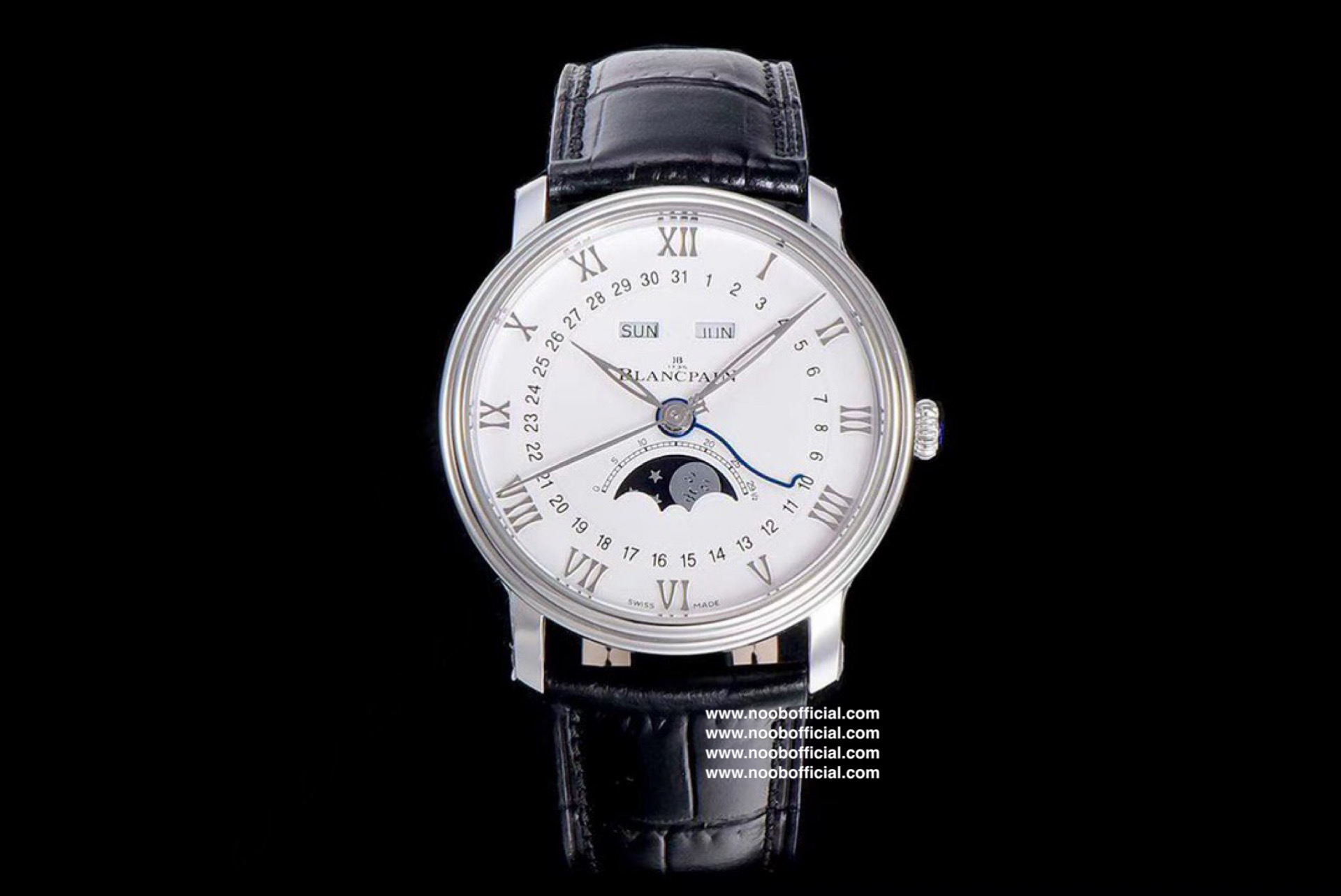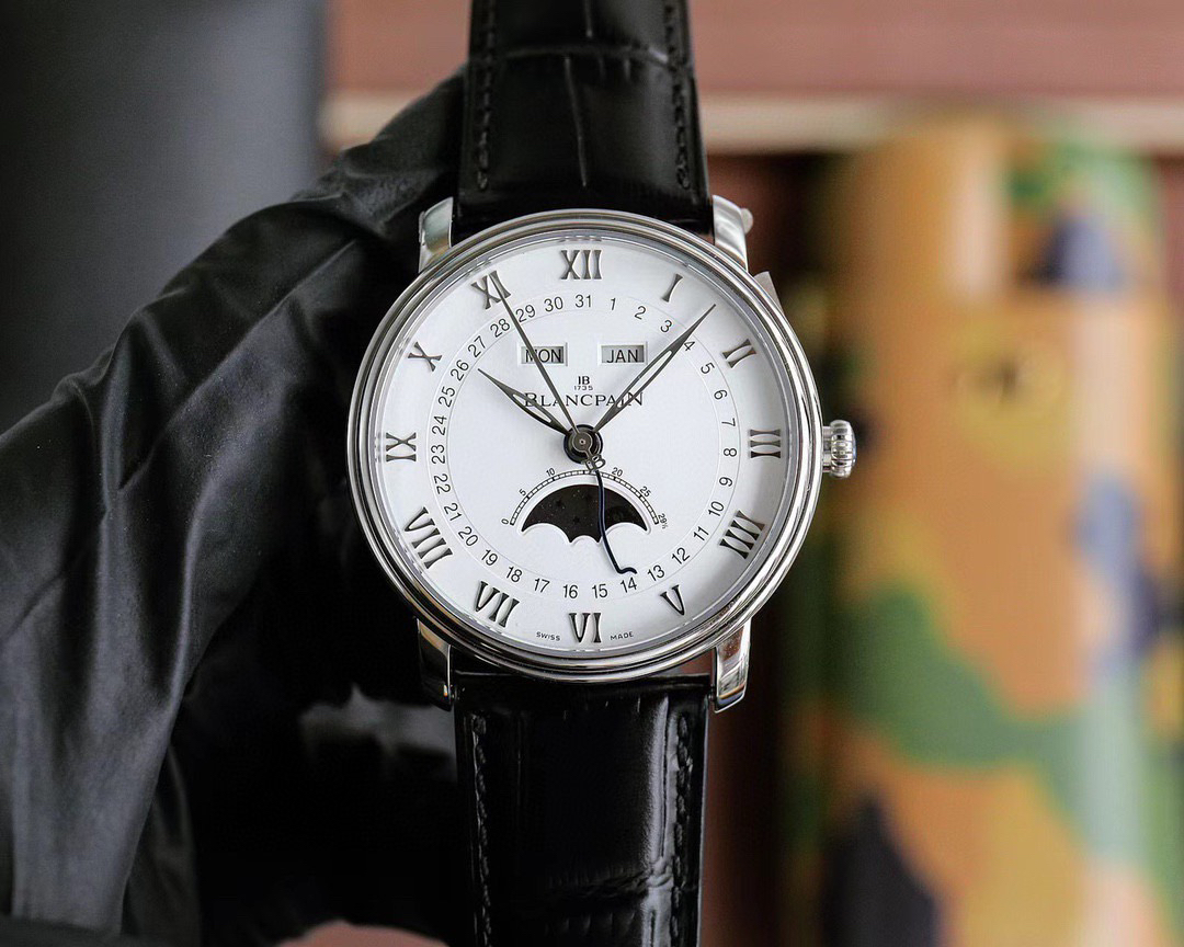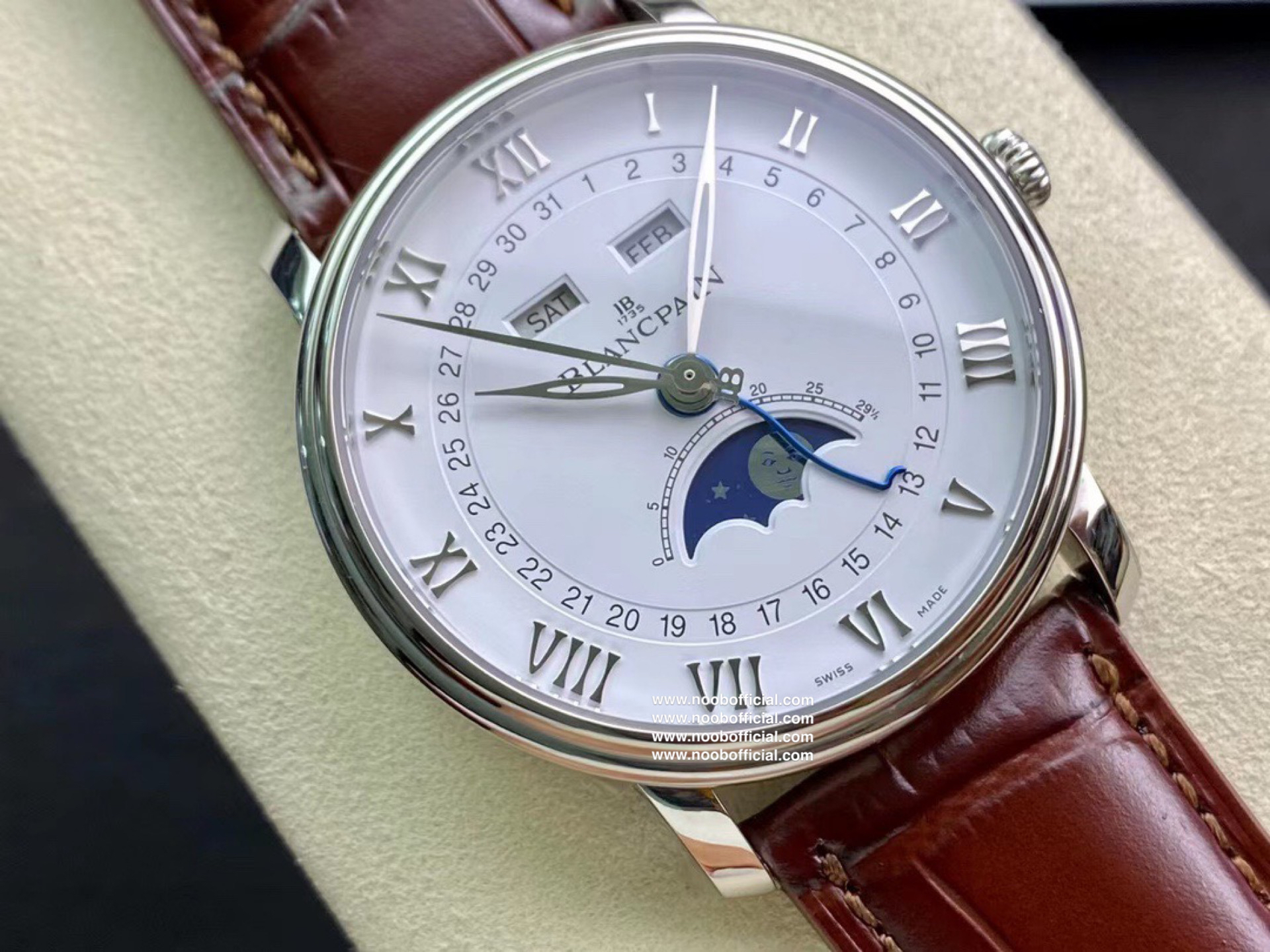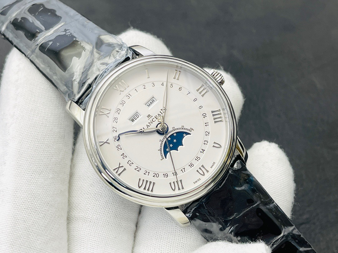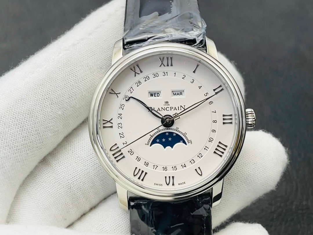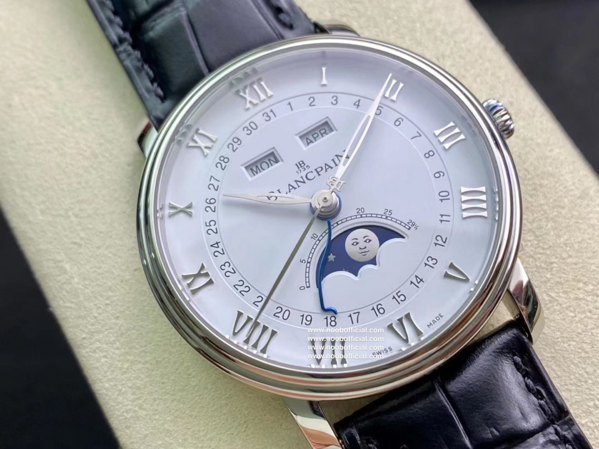 OM厂 V2版 5504宝珀 经典系列 6654 月相腕表,表壳、日历字体、月相盘再升级,带真月相、全日历功能,40x12mm,复刻cal.6654自动机械机芯,蓝宝石镜面,意大利牛皮表带,折叠扣