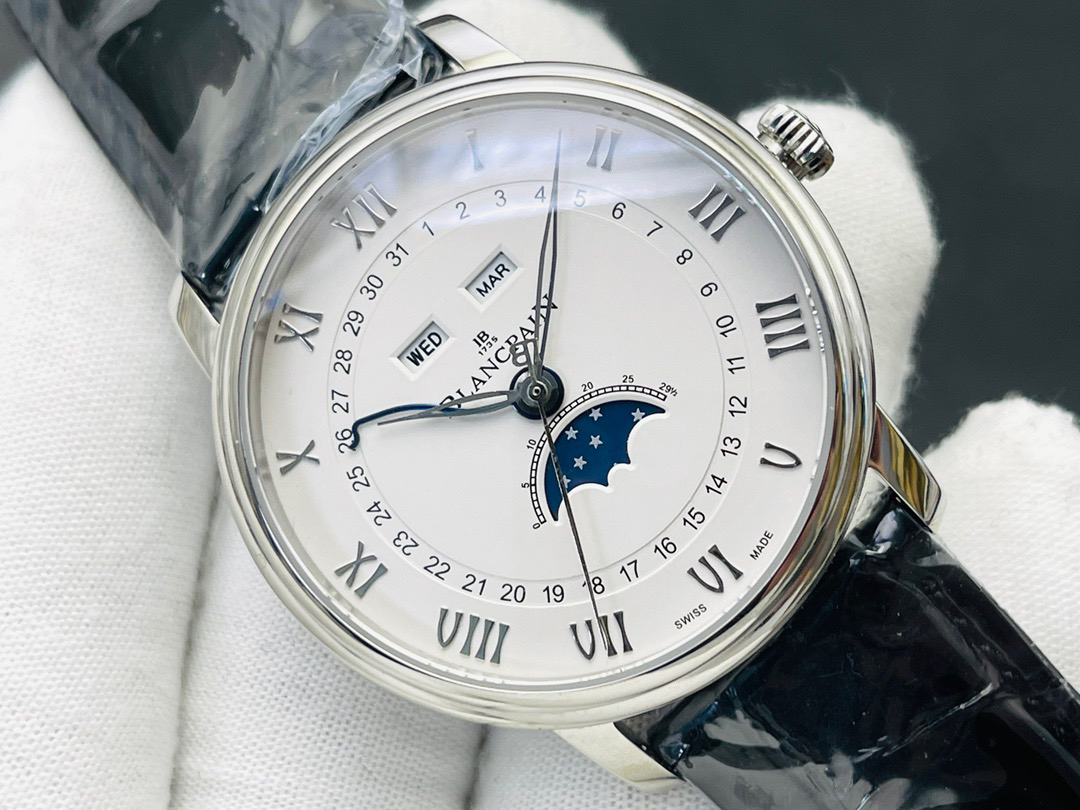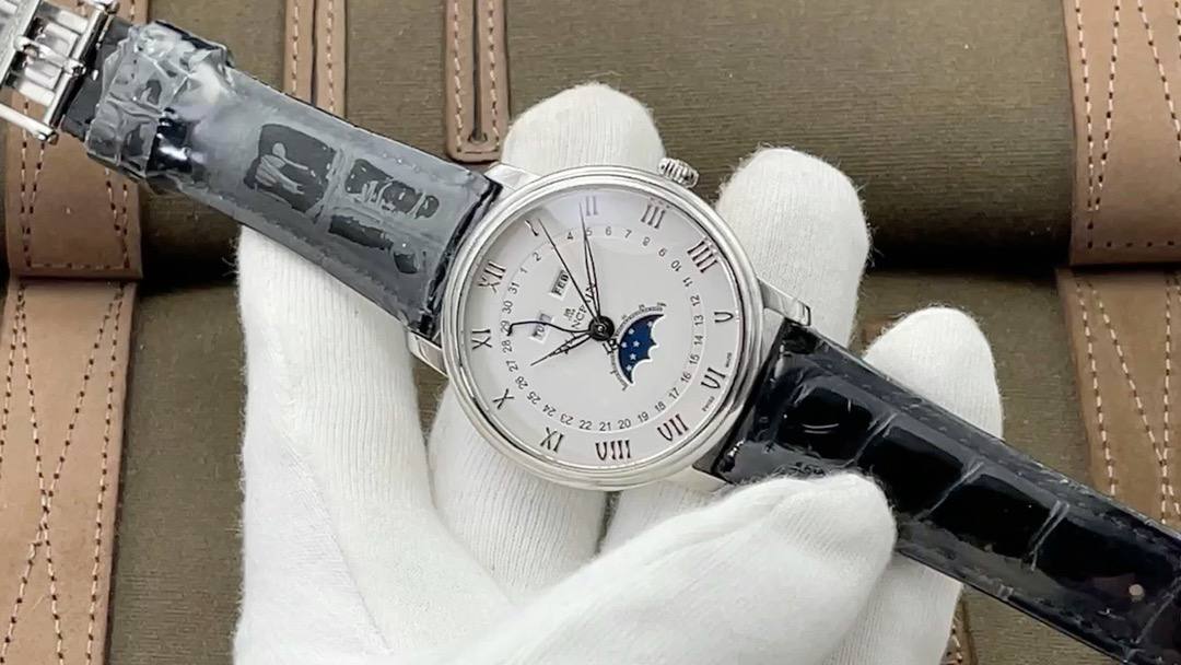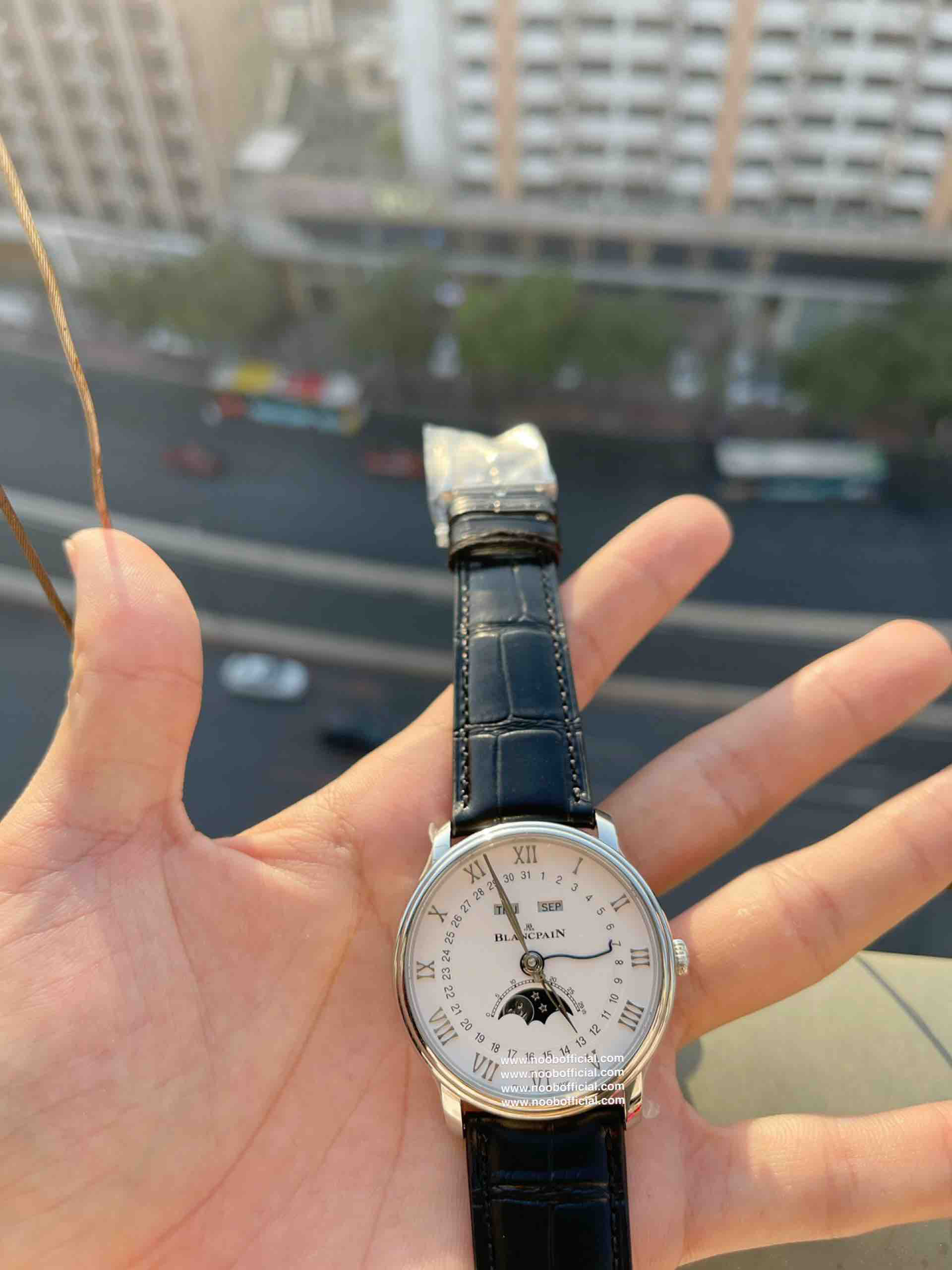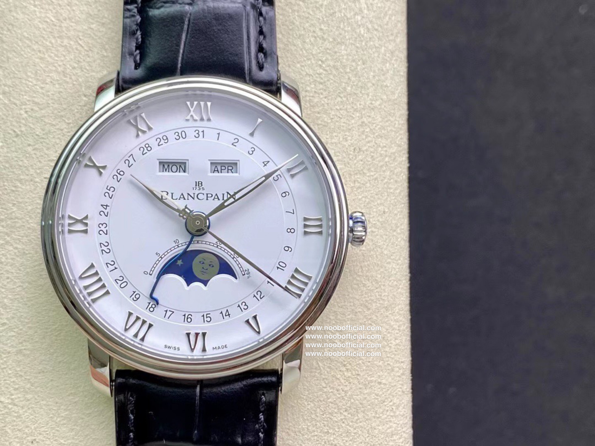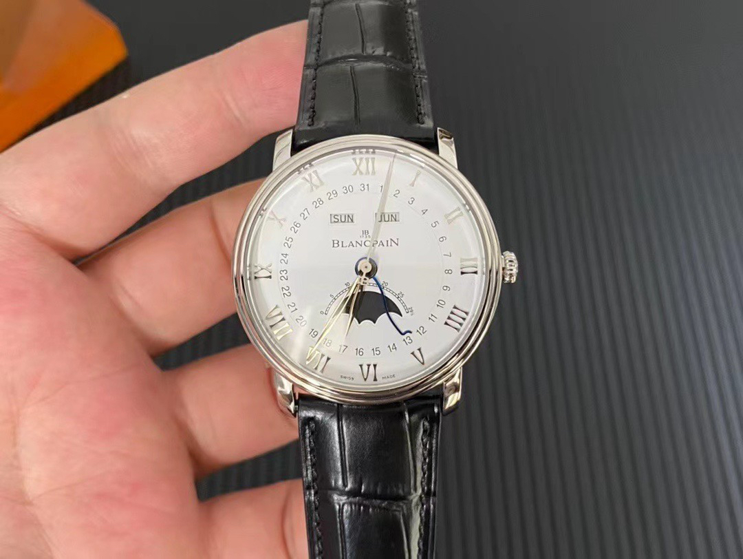 OM厂 V2版 5504宝珀 经典系列 6654 月相腕表,表壳、日历字体、月相盘再升级,带真月相、全日历功能,40x12mm,复刻cal.6654自动机械机芯,蓝宝石镜面,意大利牛皮表带,折叠扣