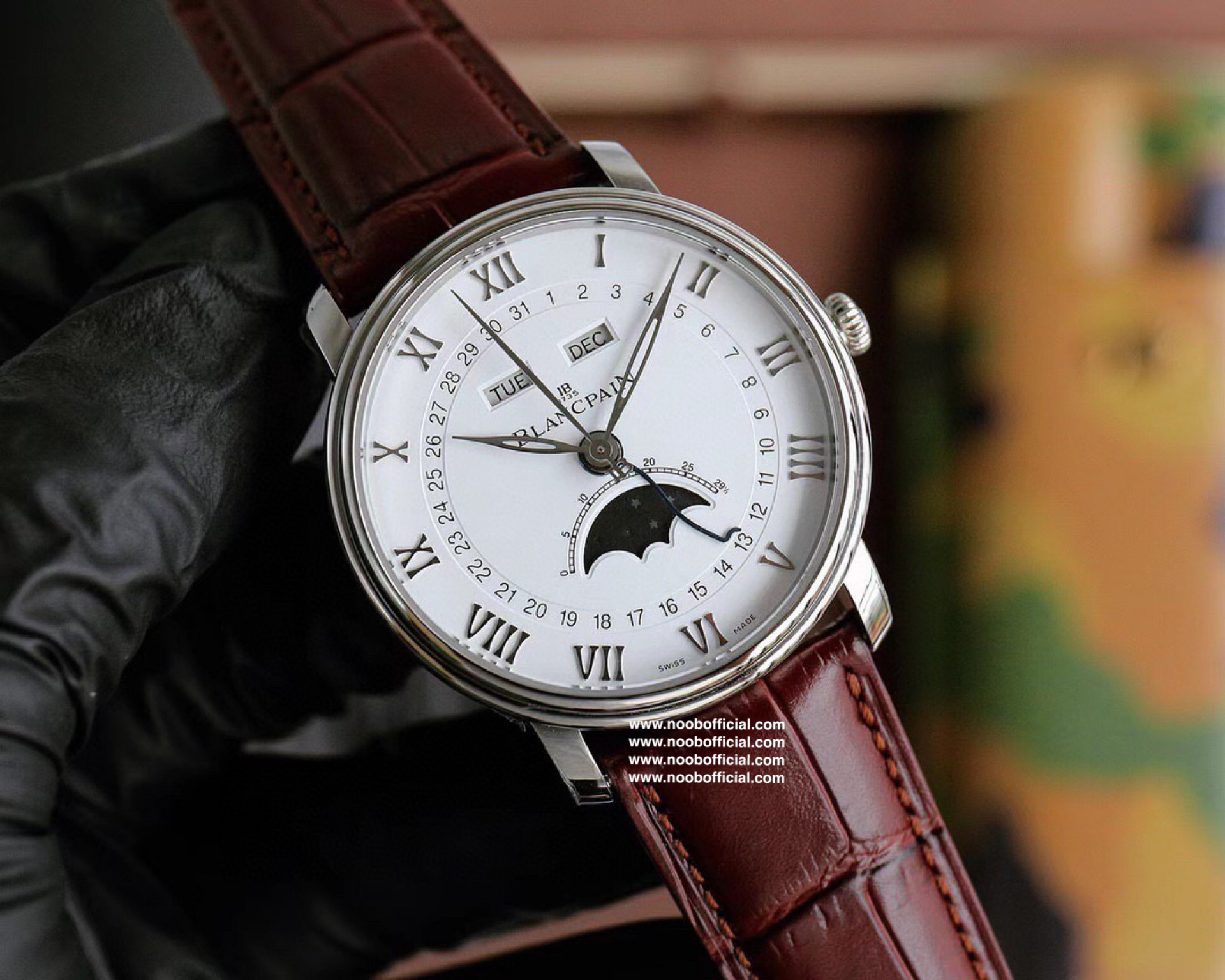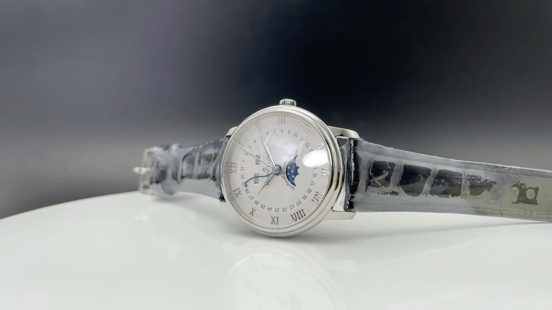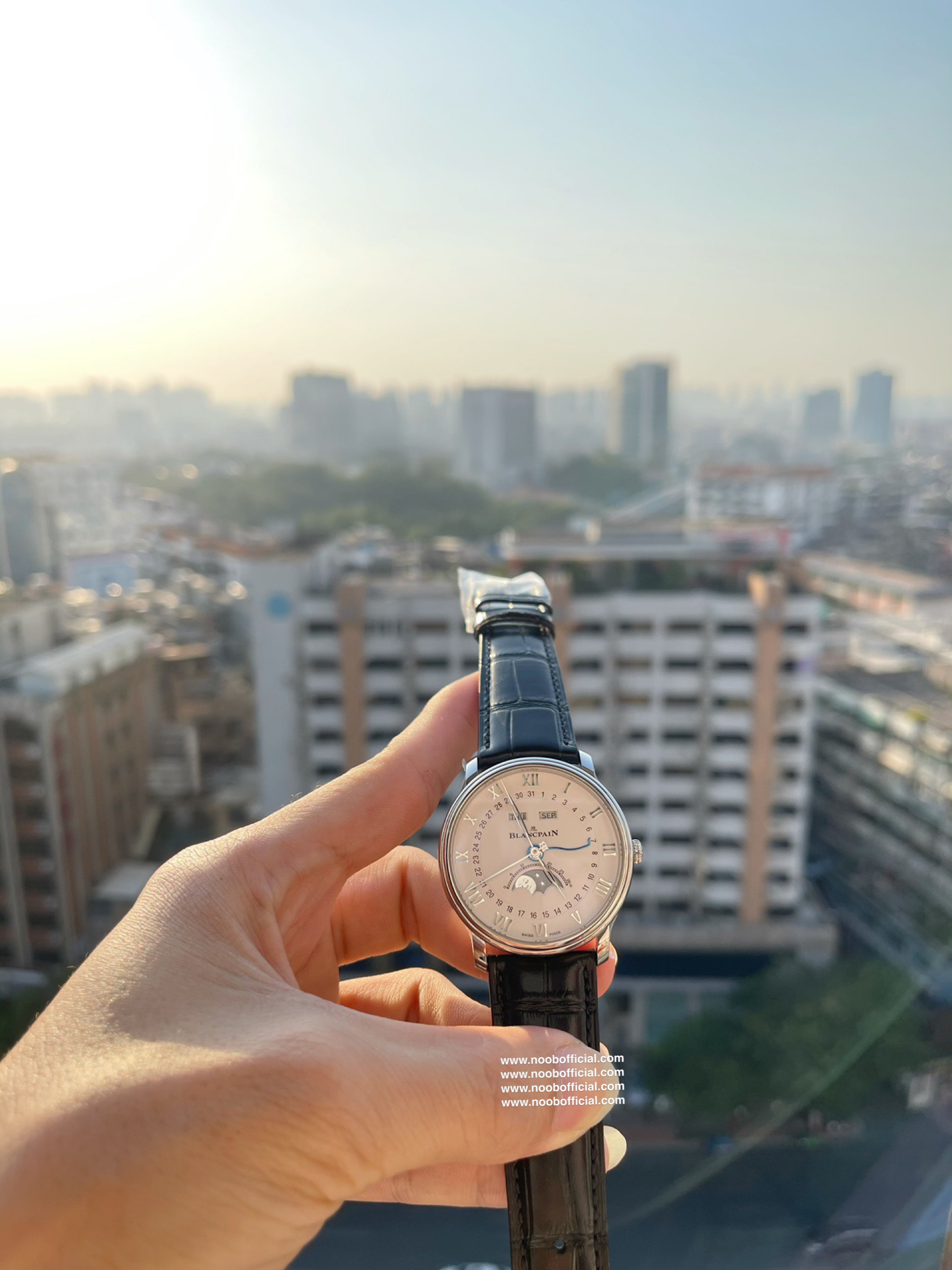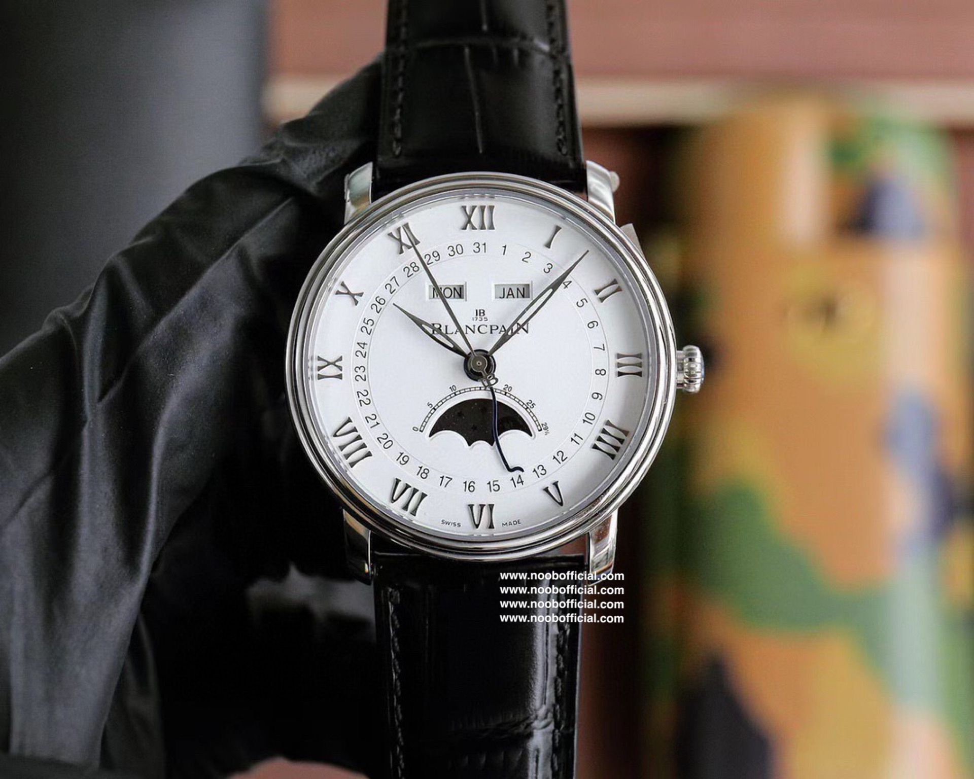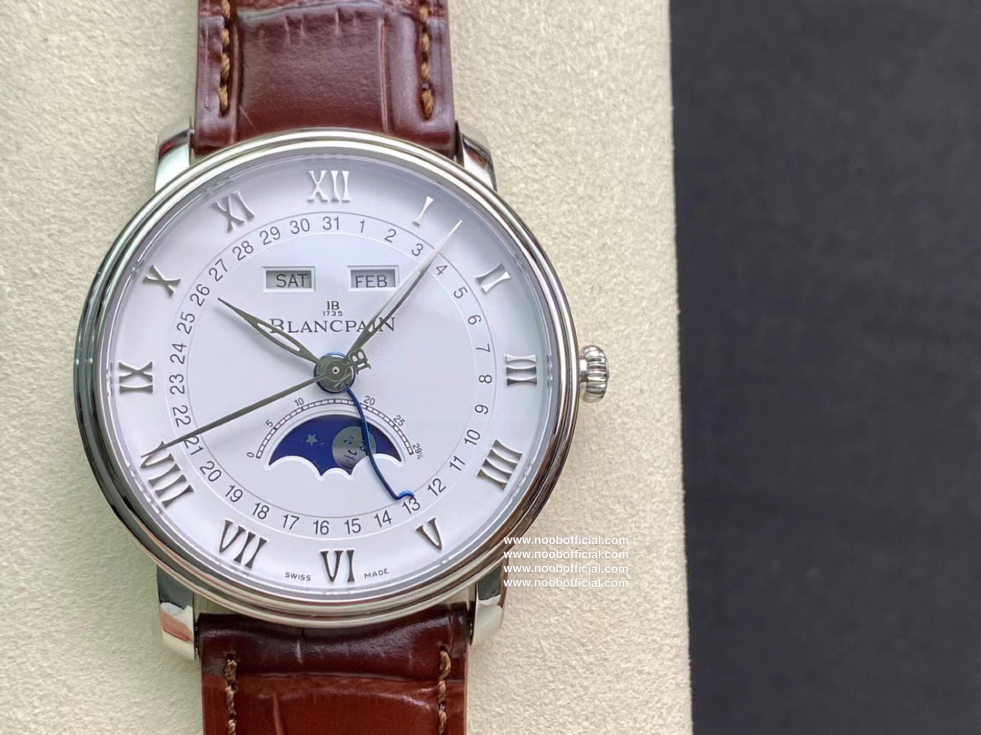 OM厂 V2版 5504宝珀 经典系列 6654 月相腕表,表壳、日历字体、月相盘再升级,带真月相、全日历功能,40x12mm,复刻cal.6654自动机械机芯,蓝宝石镜面,意大利牛皮表带,折叠扣