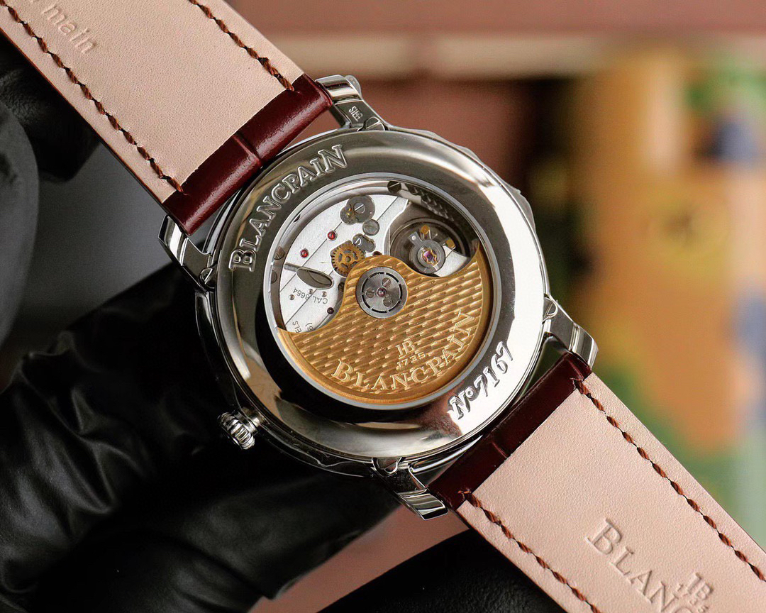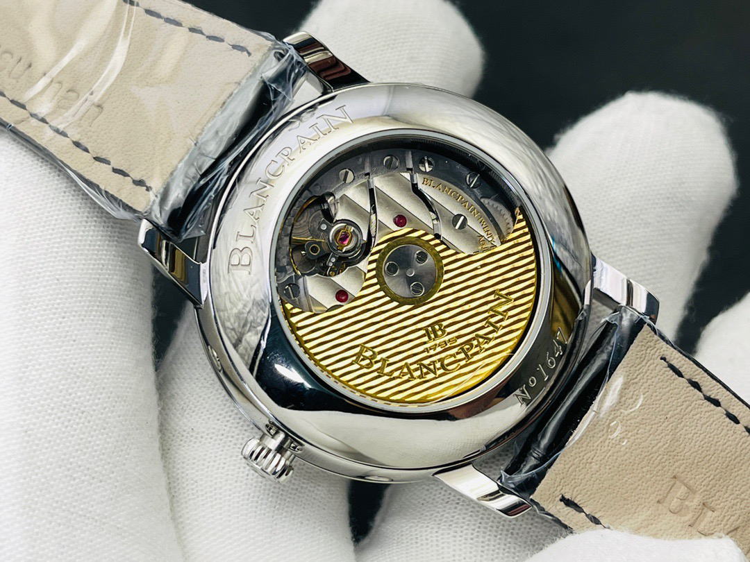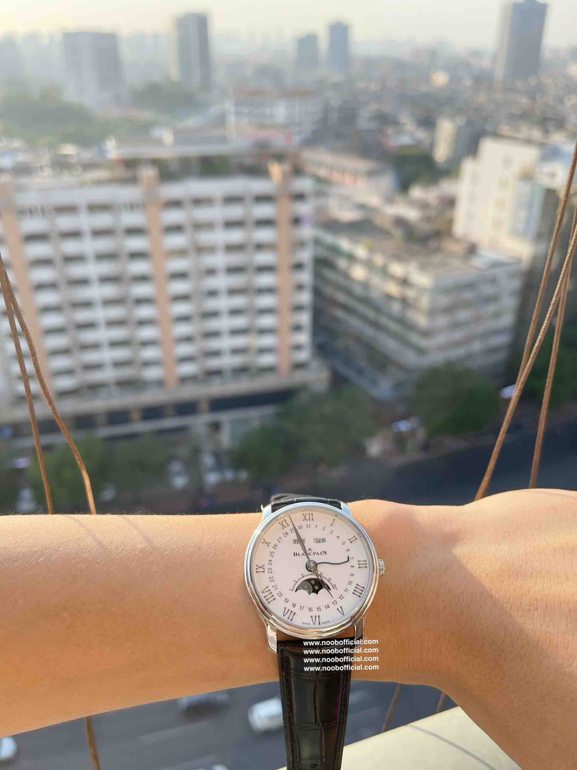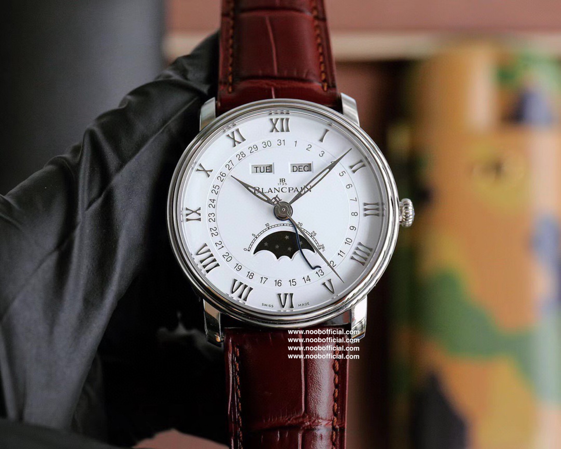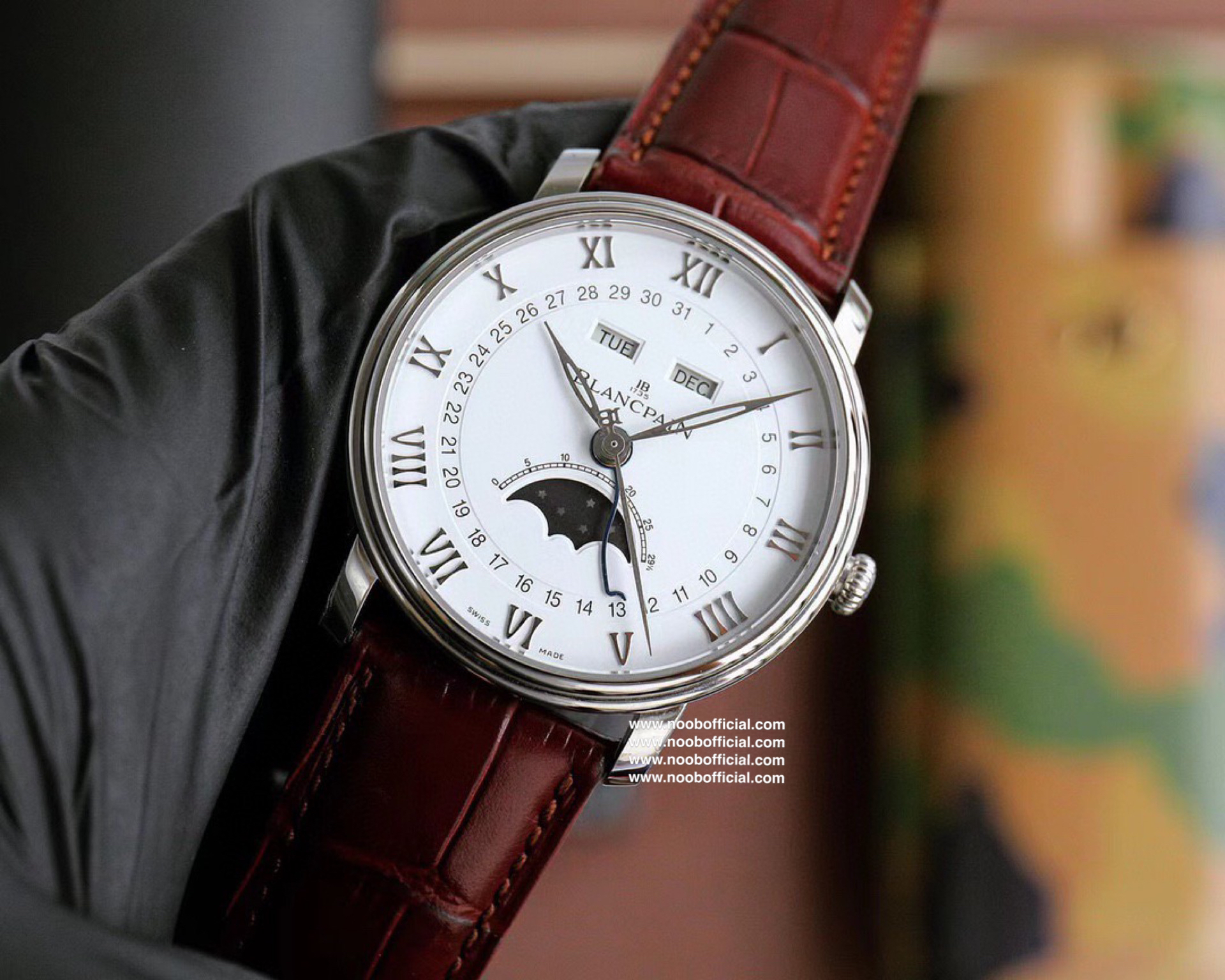 OM厂 V2版 5504宝珀 经典系列 6654 月相腕表,表壳、日历字体、月相盘再升级,带真月相、全日历功能,40x12mm,复刻cal.6654自动机械机芯,蓝宝石镜面,意大利牛皮表带,折叠扣