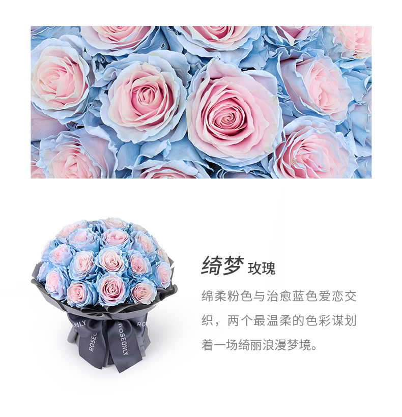 ROSEONLY诺誓 永生玫瑰 公仔系列 嘻嘻猫白蓝拾花版 Baby宝贝系列 送朋友 情人节礼物