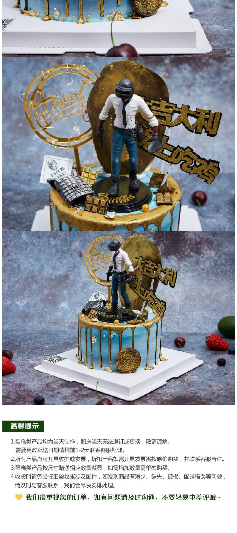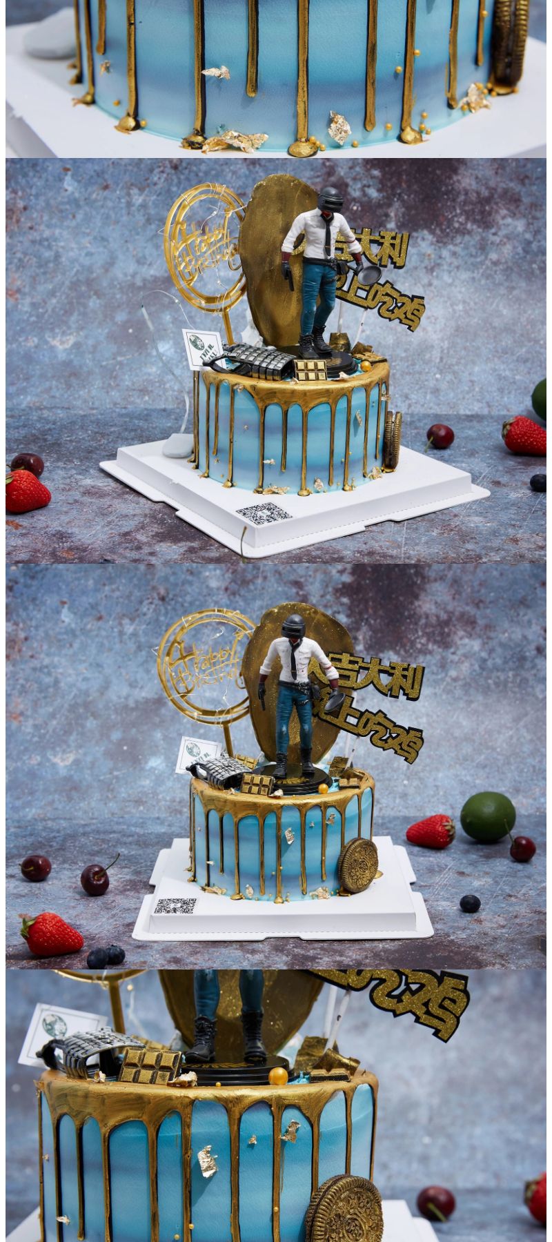 蓝色系吃鸡蛋糕-大吉大利今晚吃鸡