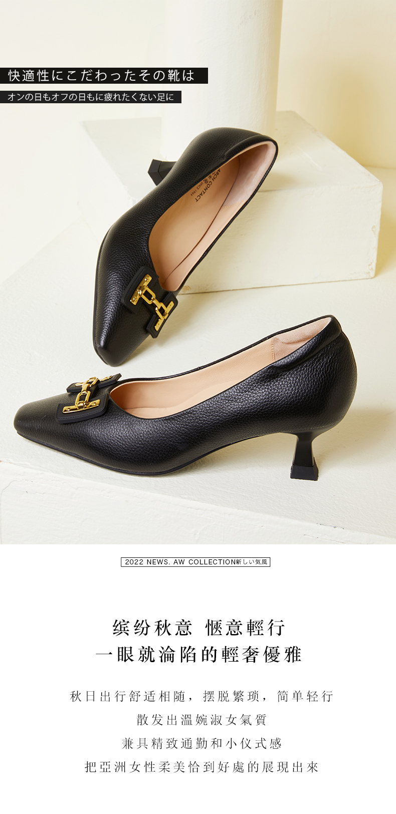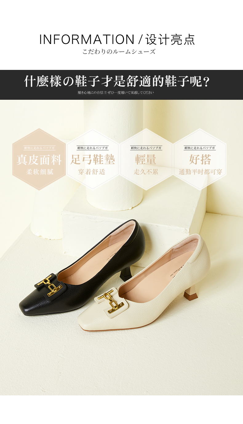 ARCHCONTACT安启美奈方头金属扣细跟单鞋52773