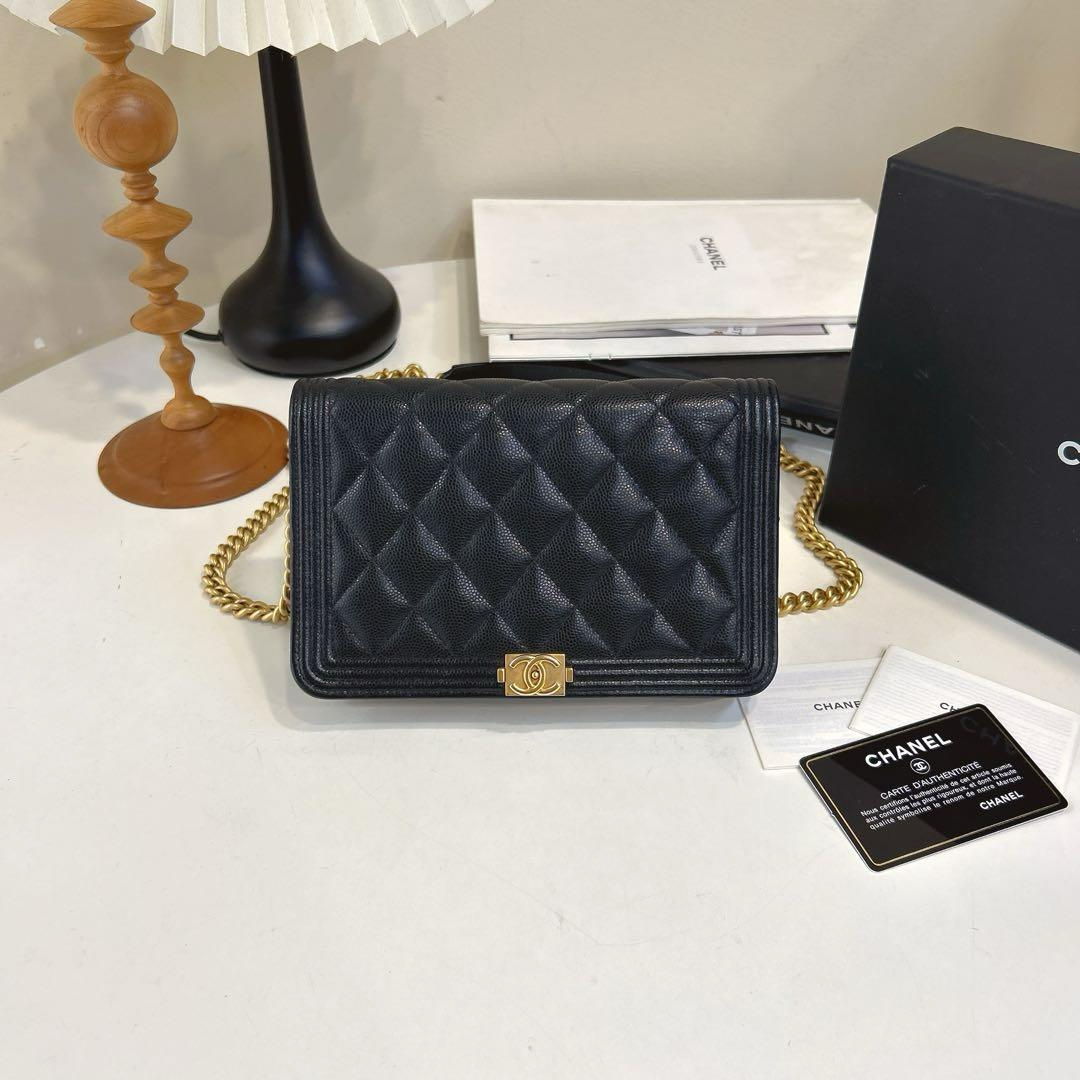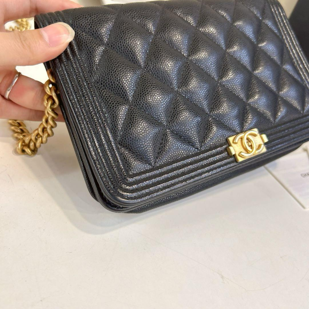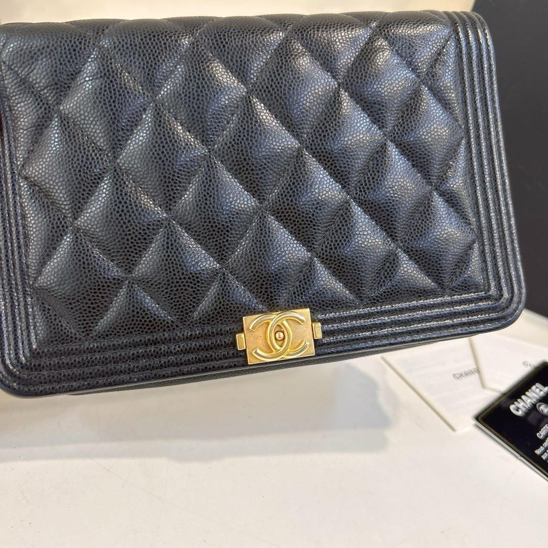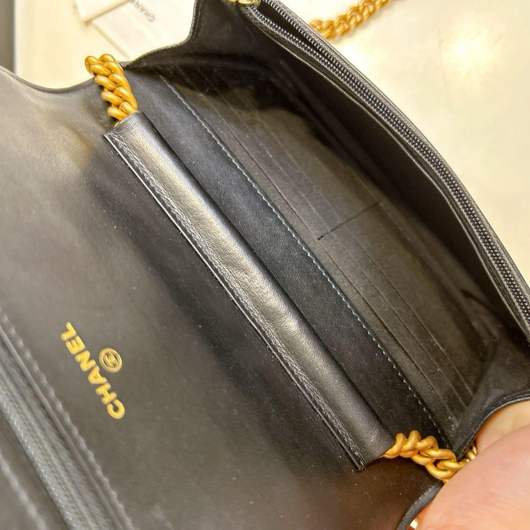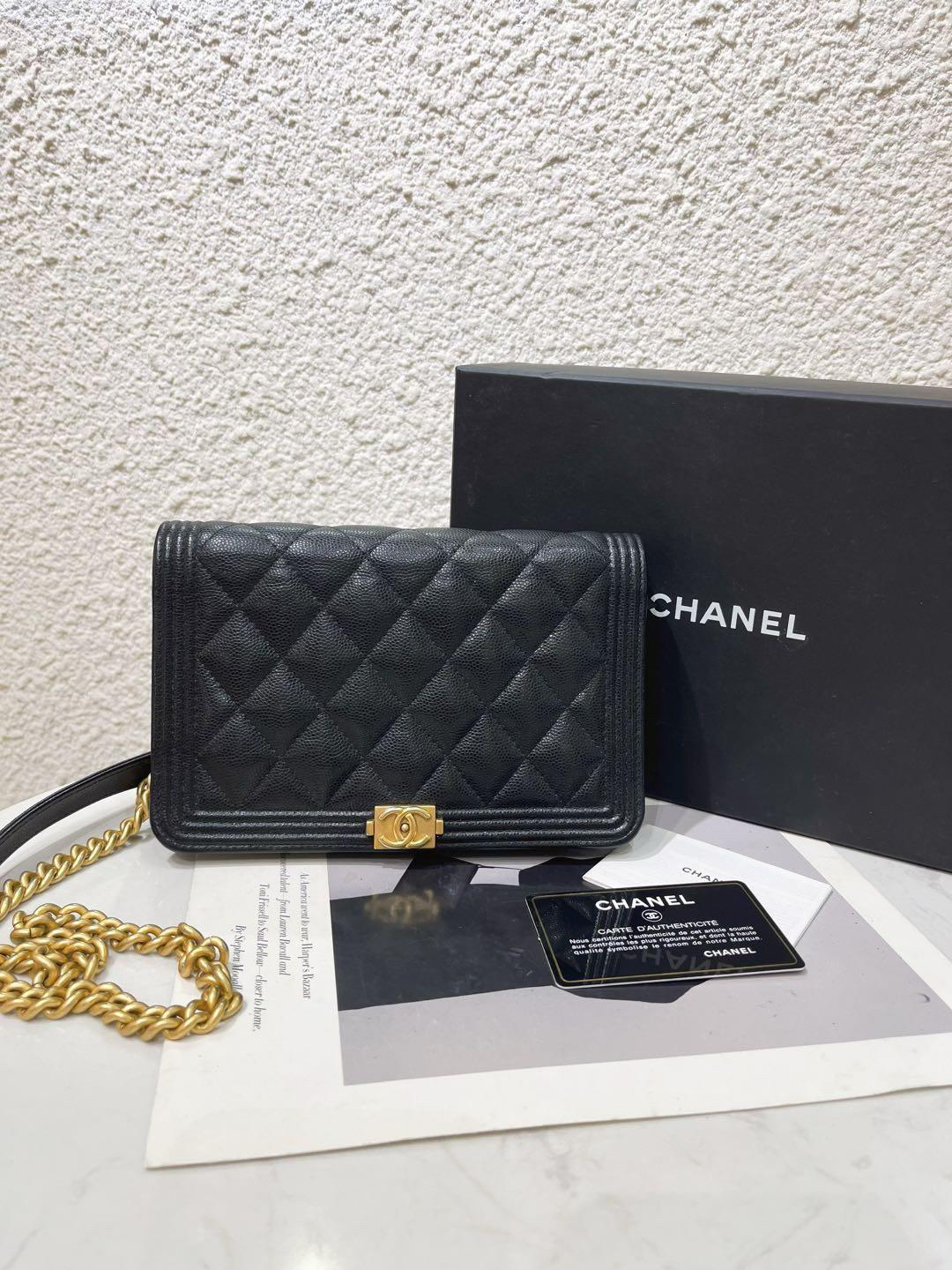 【商品详情】正品二手 CHANEL 黑金 荔枝纹牛皮 leboy woc 链条包🐯 97新 19x12 镭射29开 配件:盒子、卡。内翻盖与内里轻微使用感 高级斜挎绝绝子