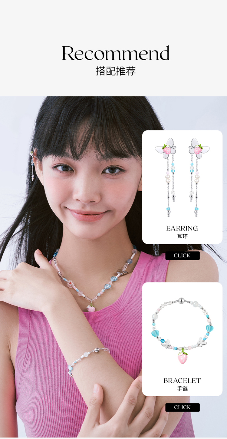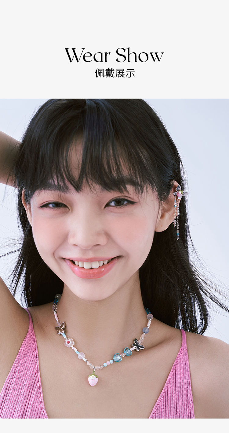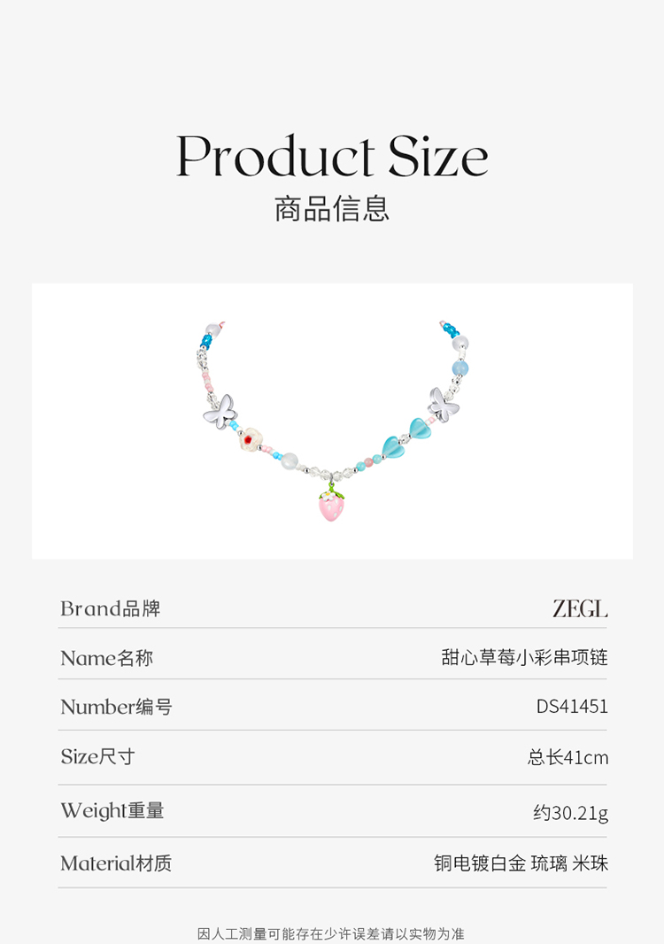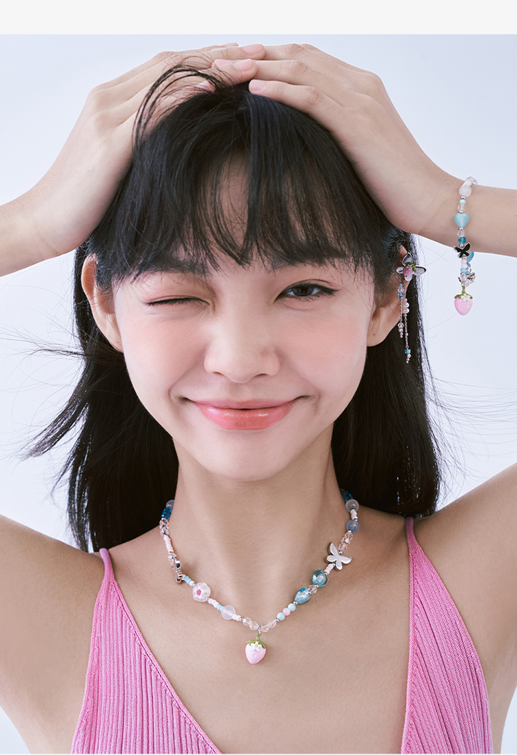 ZEGL设计师草莓小彩串甜心项链女2023年新款爆款多巴胺串珠锁骨链