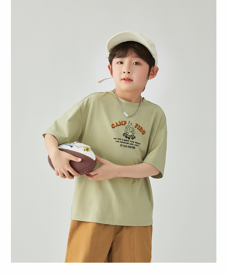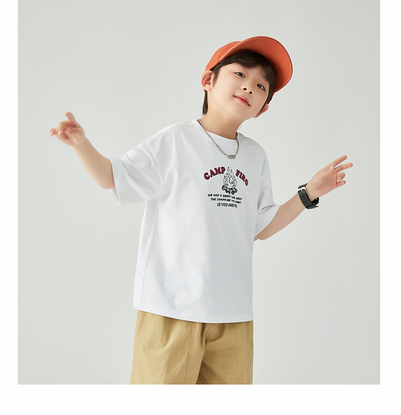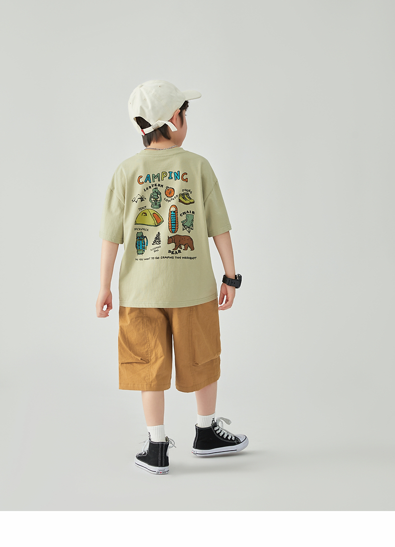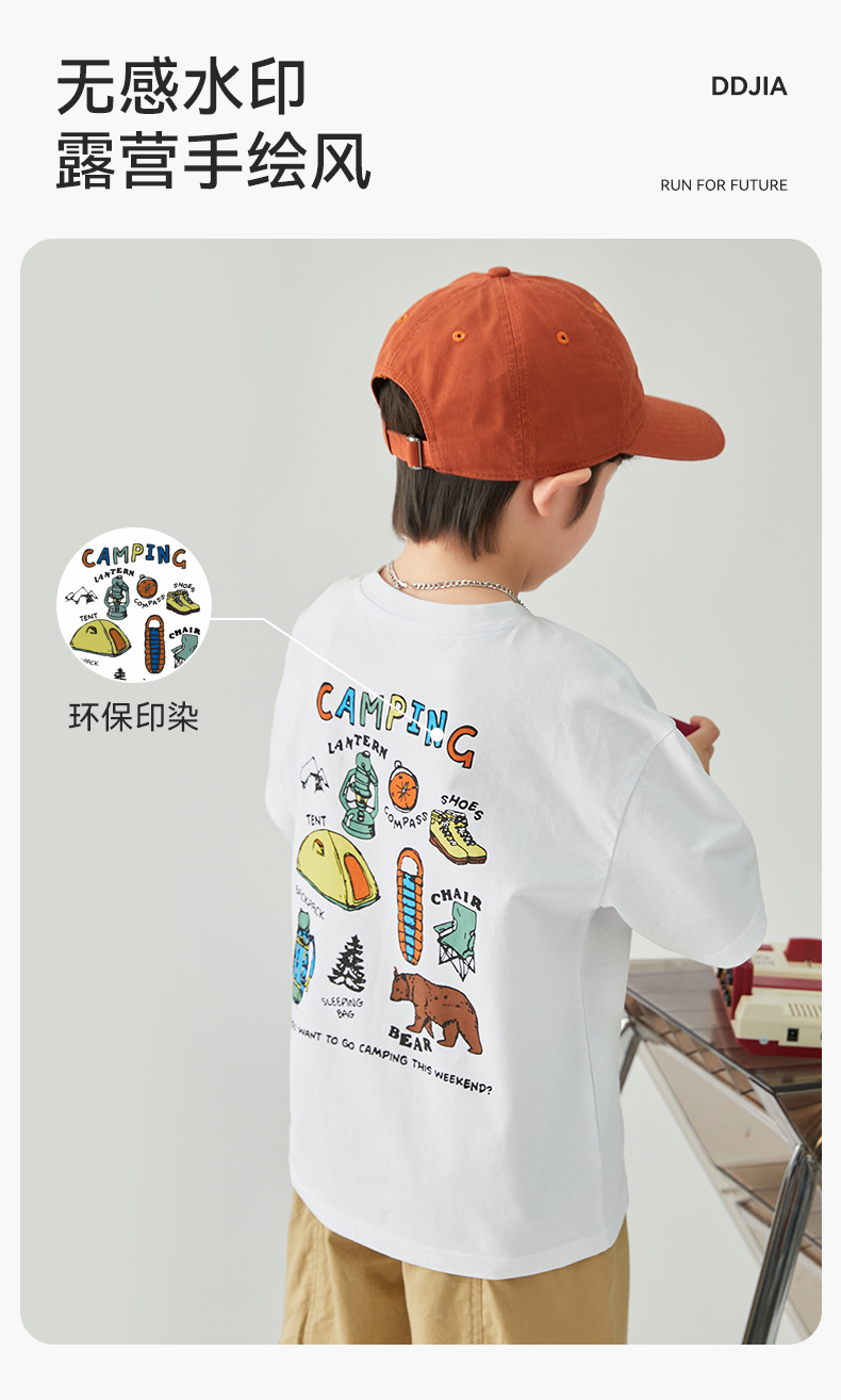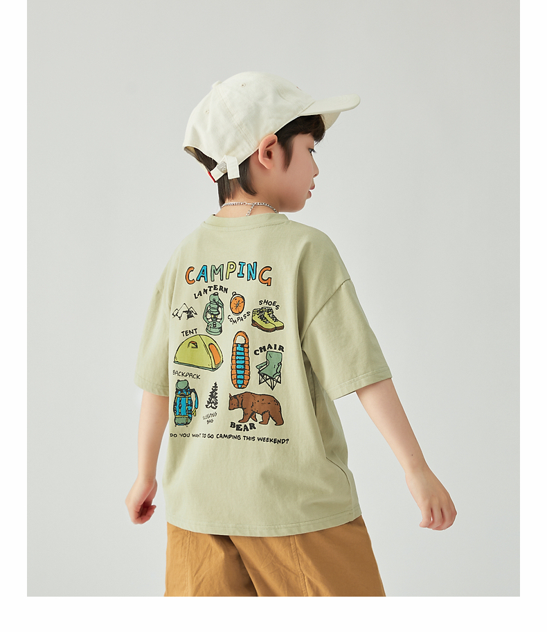 【团购价29.9元】多多家 男童T恤2024夏季新款薄款露营风格印花短袖儿童中大童9350