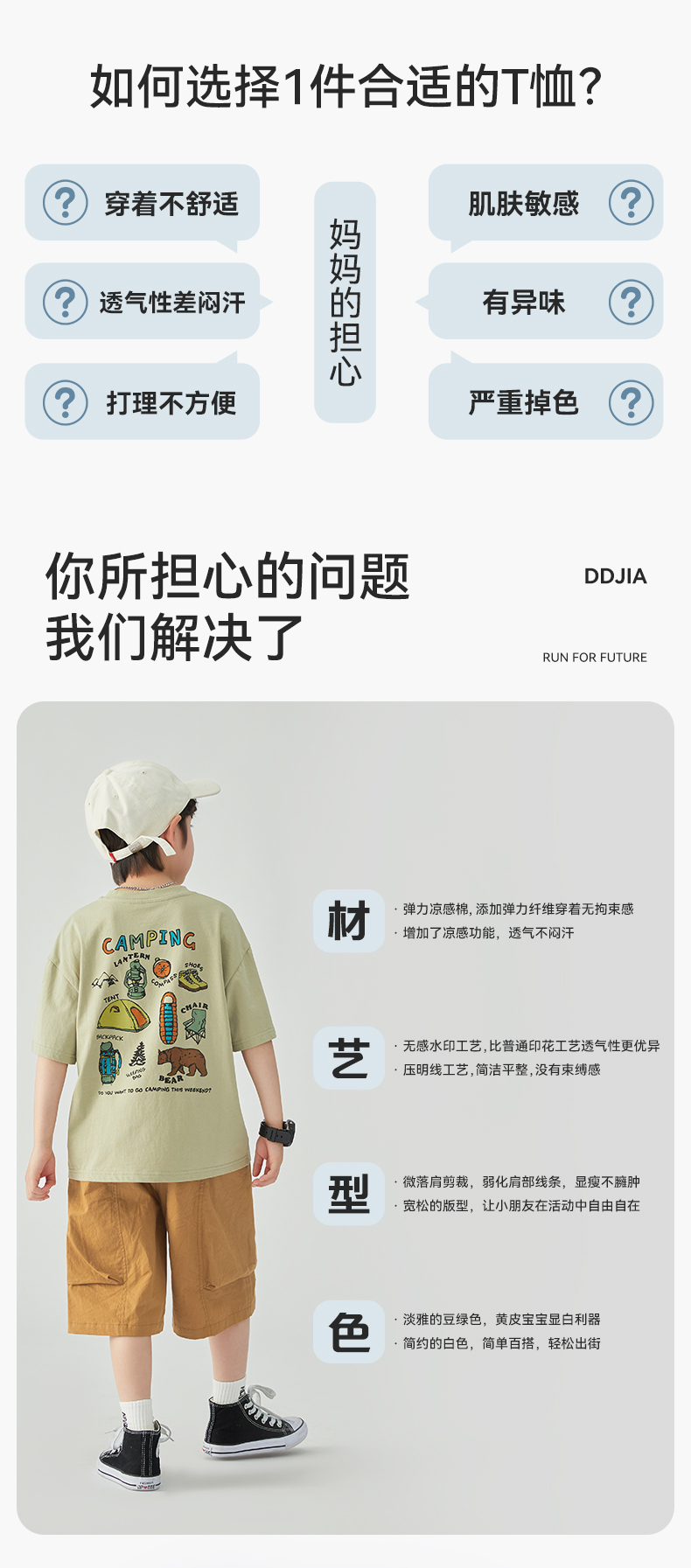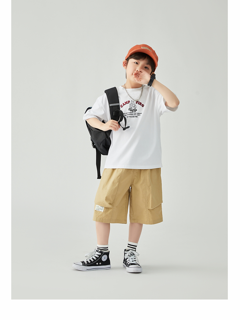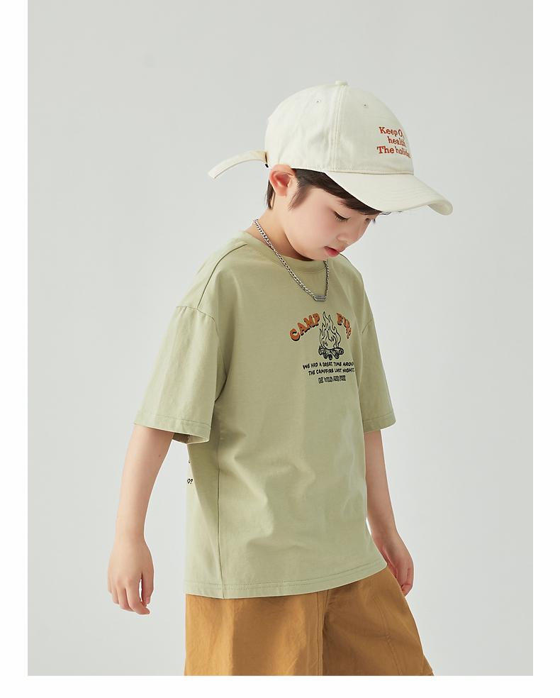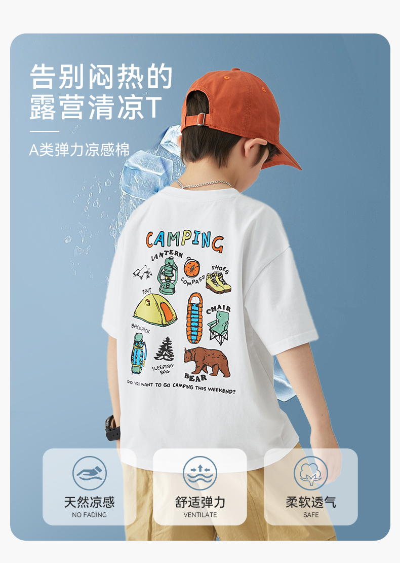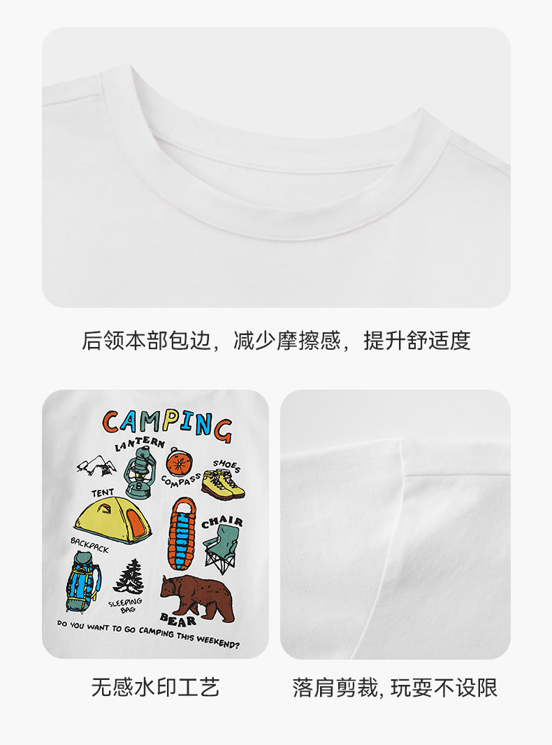 【团购价29.9元】多多家 男童T恤2024夏季新款薄款露营风格印花短袖儿童中大童9350