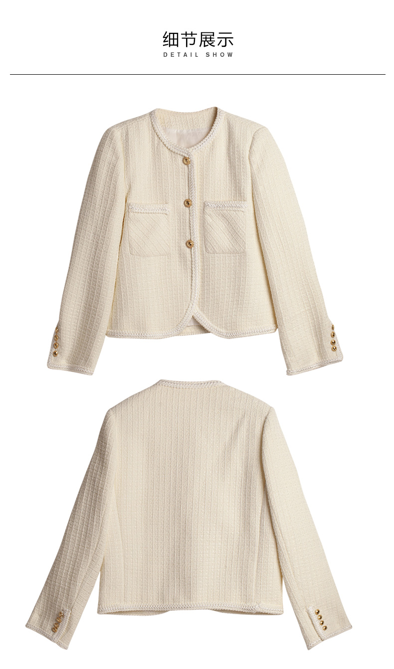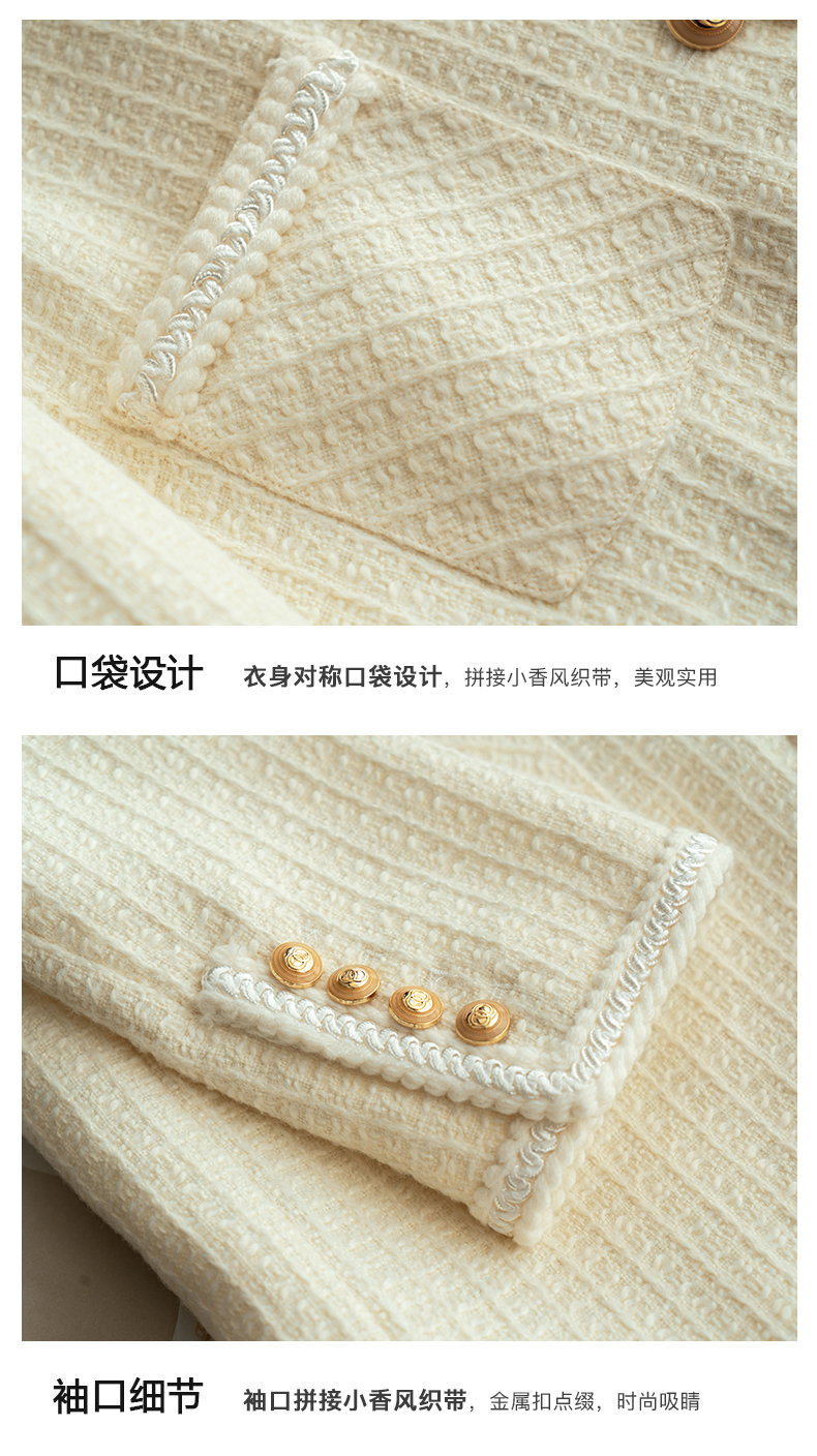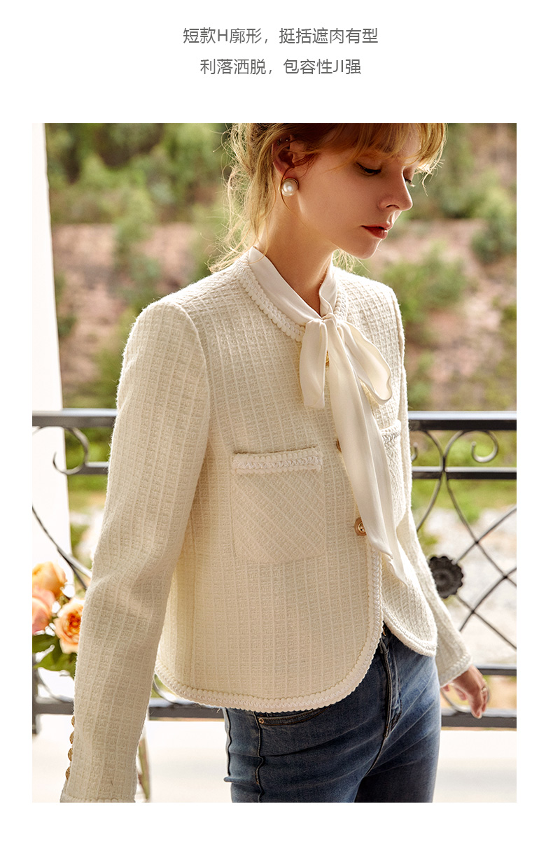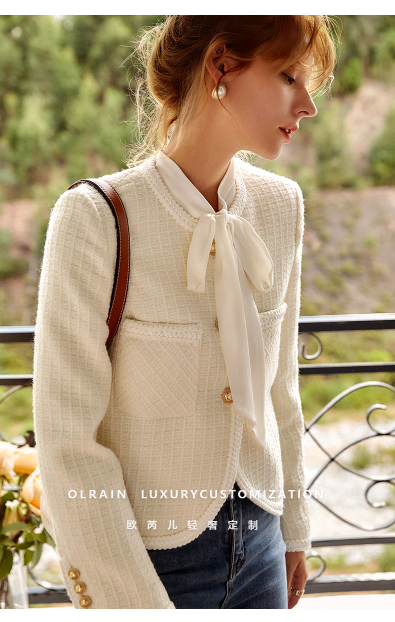 OLrain法式小香风短外套女早秋2022年新款复古减龄白色粗花呢上衣