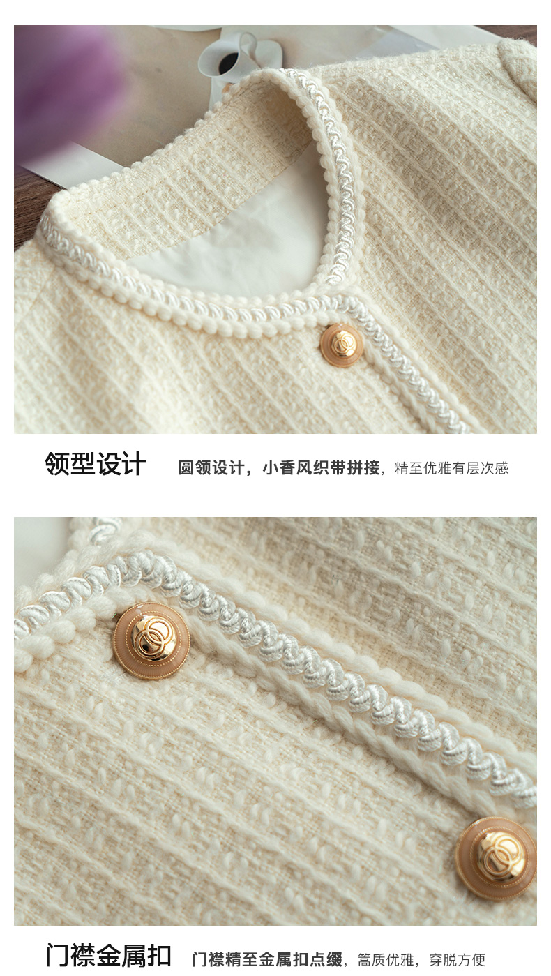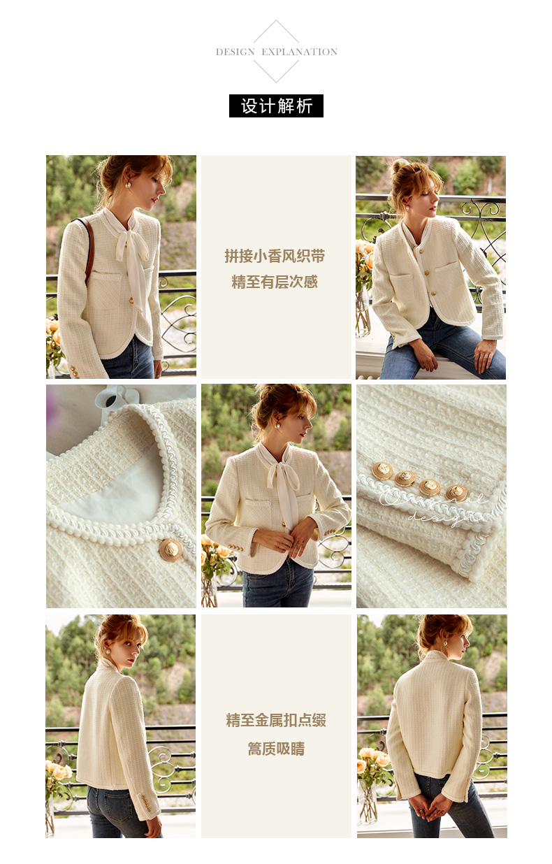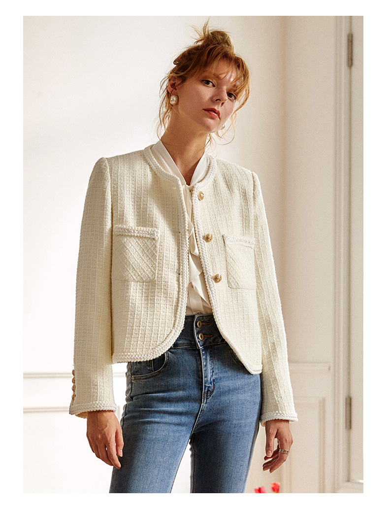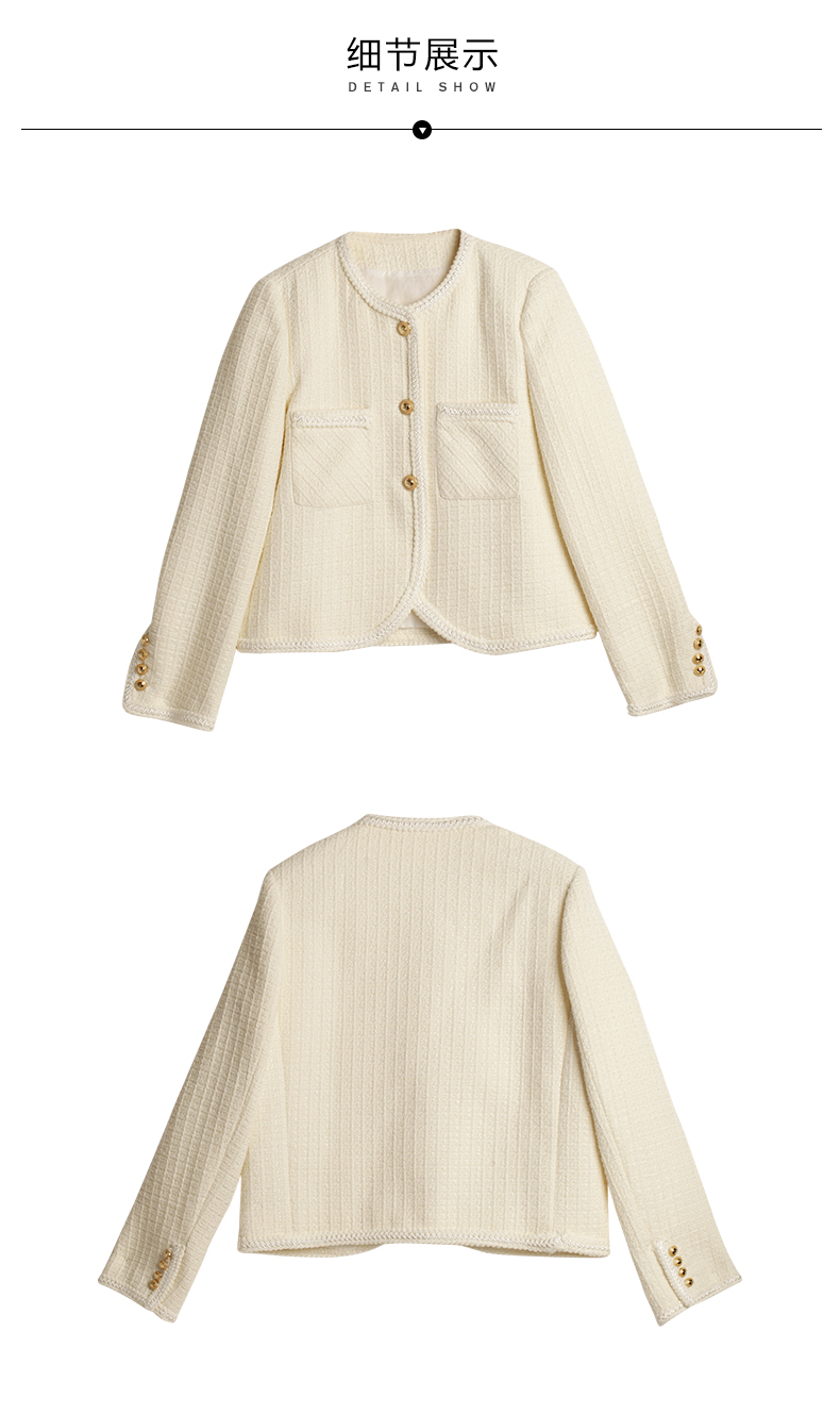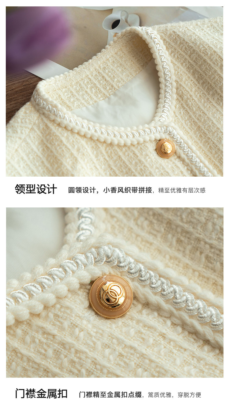 OLrain法式小香风短外套女早秋2022年新款复古减龄白色粗花呢上衣