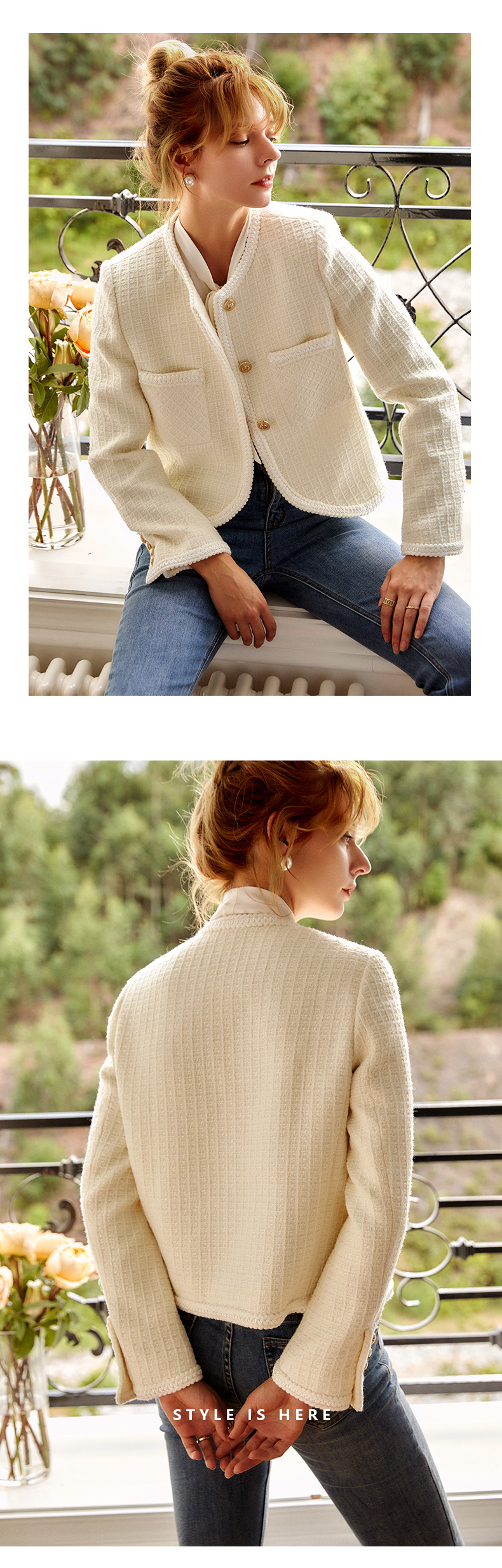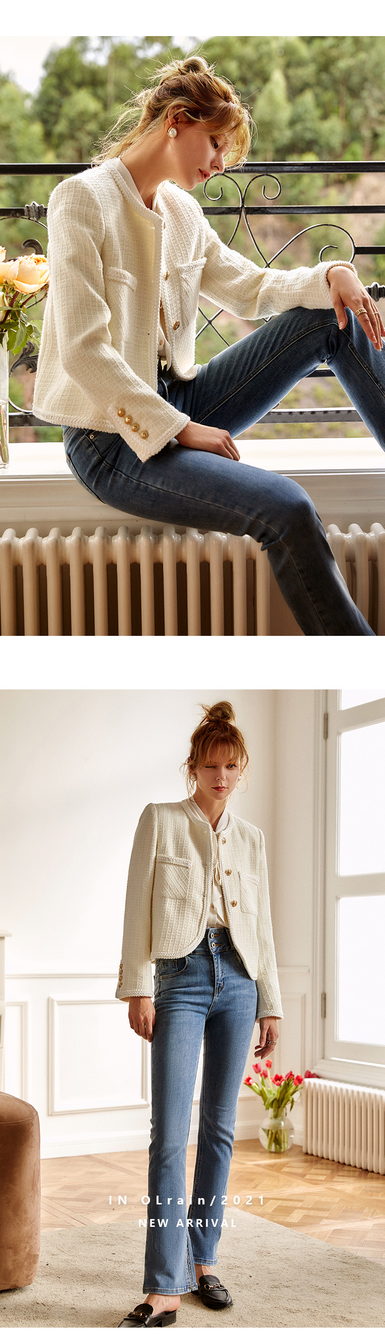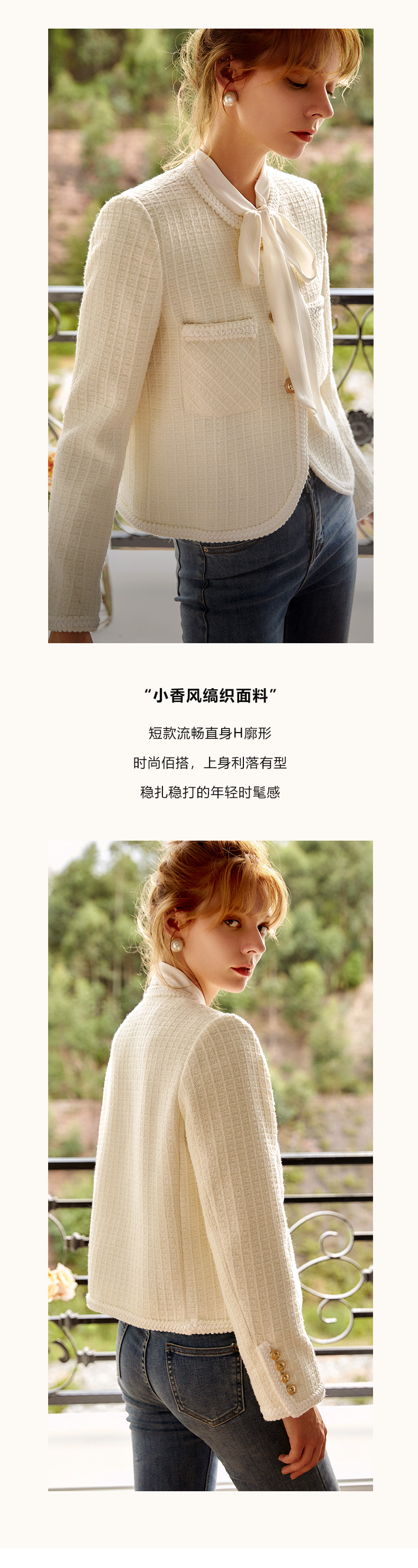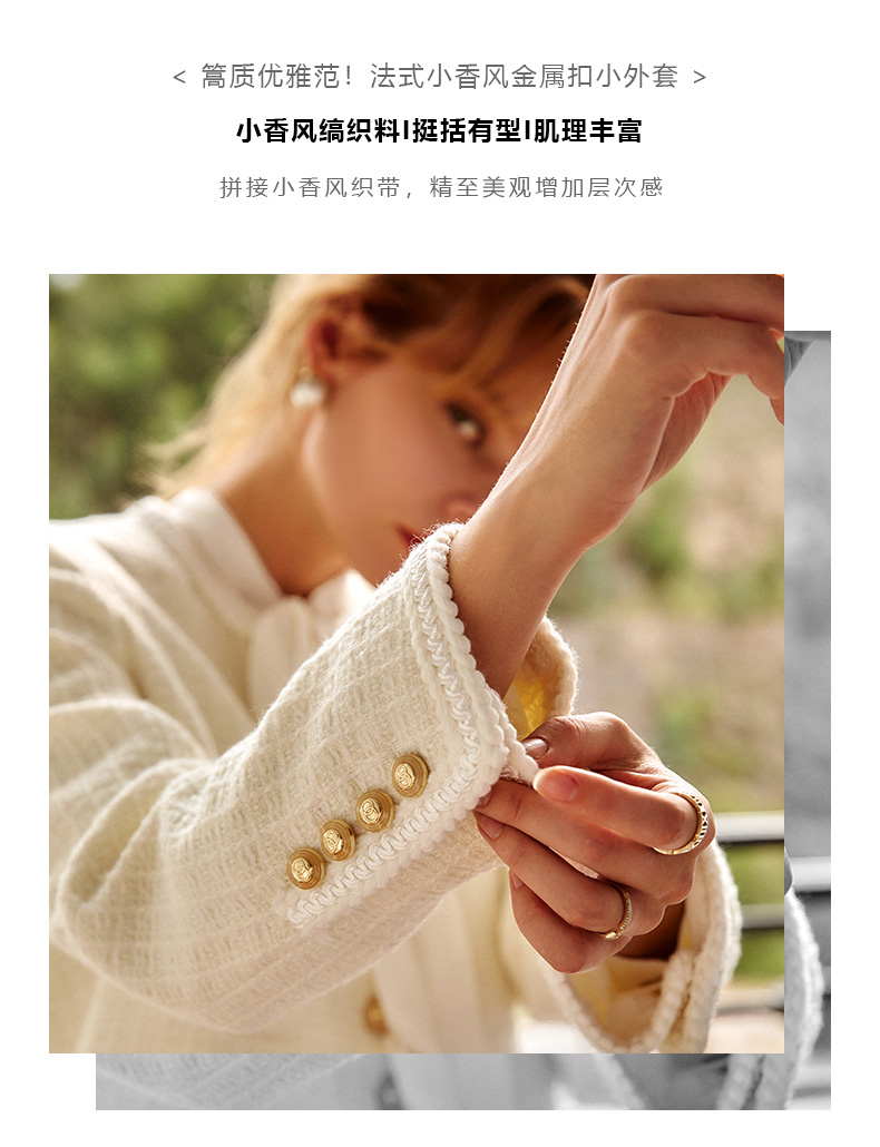 OLrain法式小香风短外套女早秋2022年新款复古减龄白色粗花呢上衣