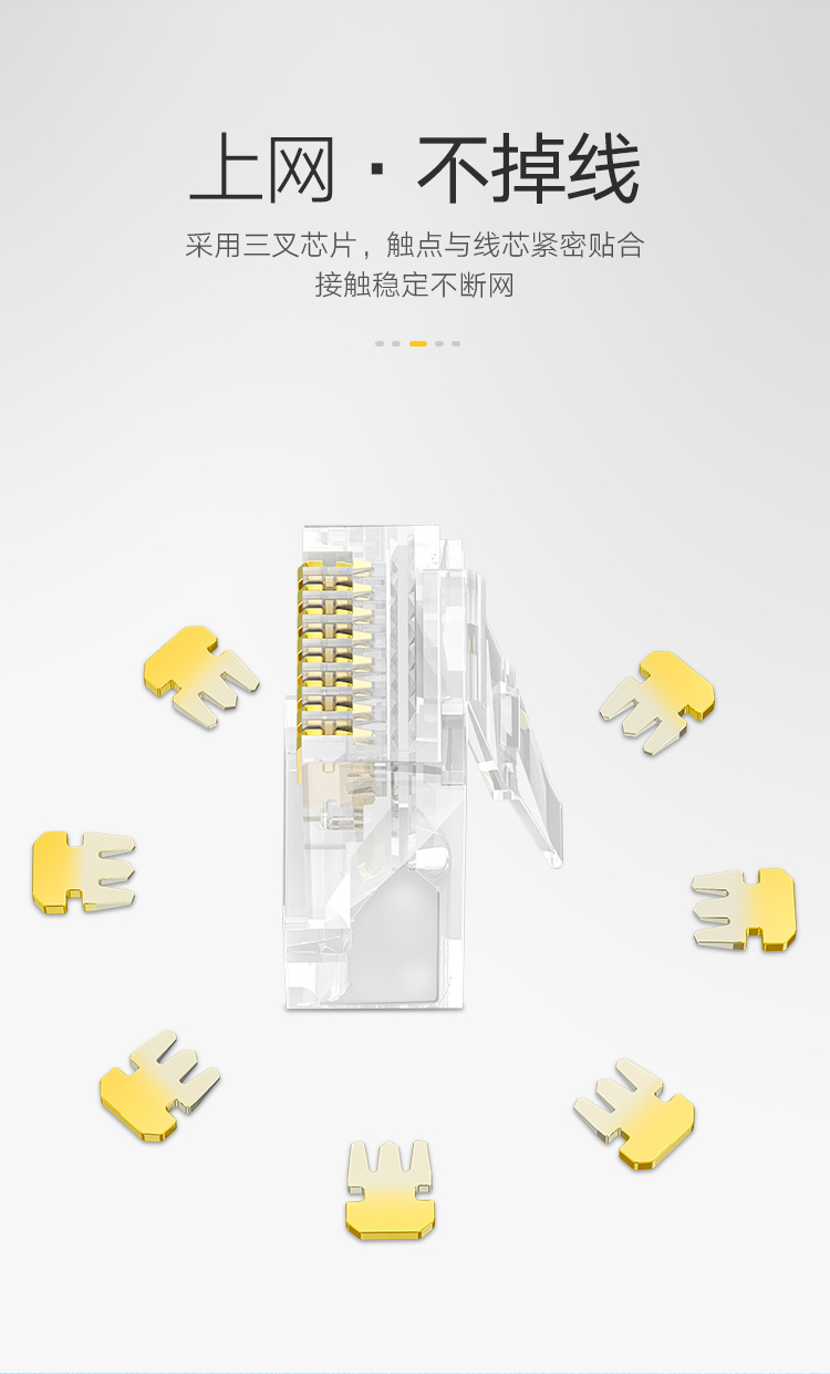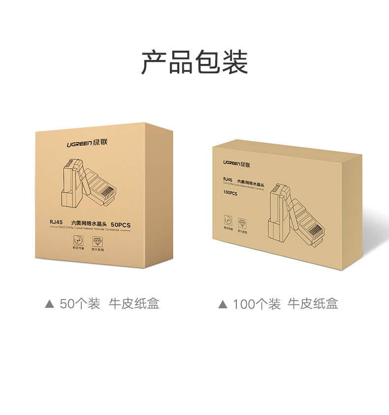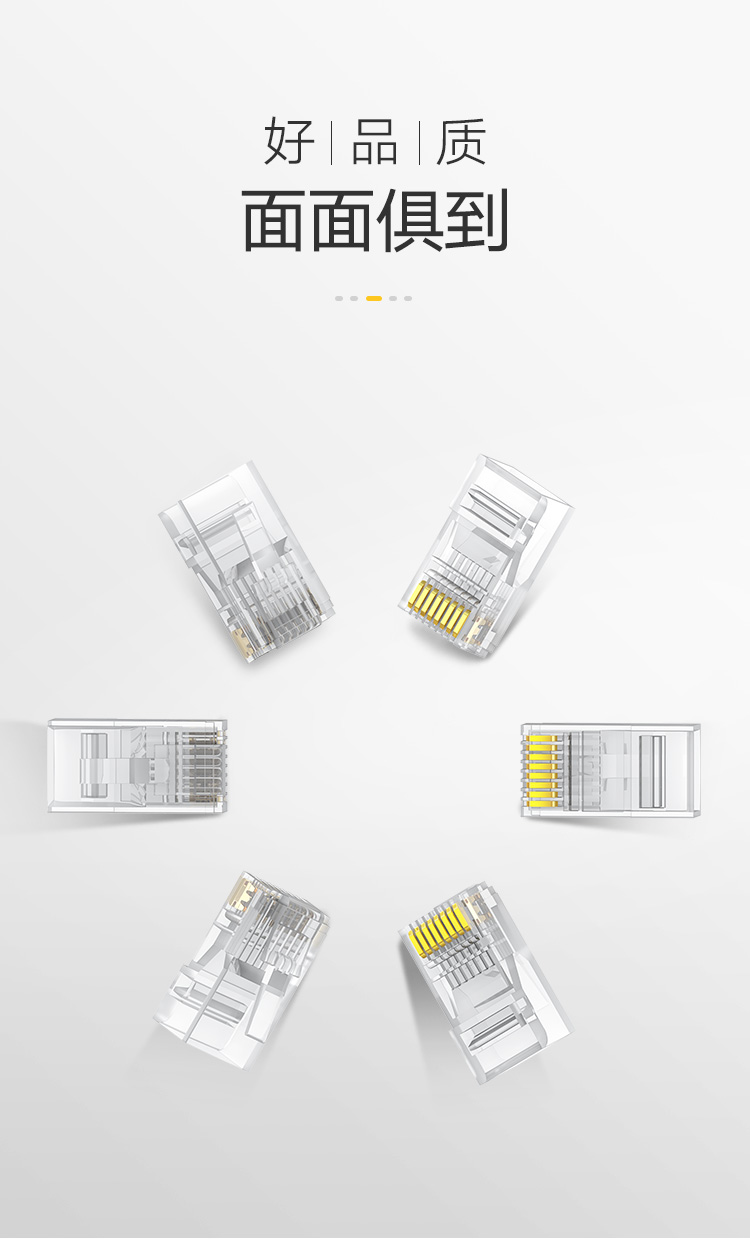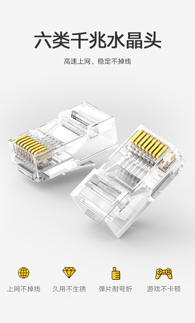 绿联(UGREEN)六类网线水晶头 6类千兆网络接头 RJ45工程级8P8C电脑网线连接器 Cat6水晶头镀金 100个 60558