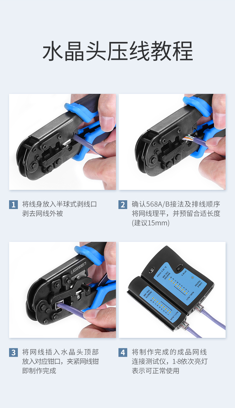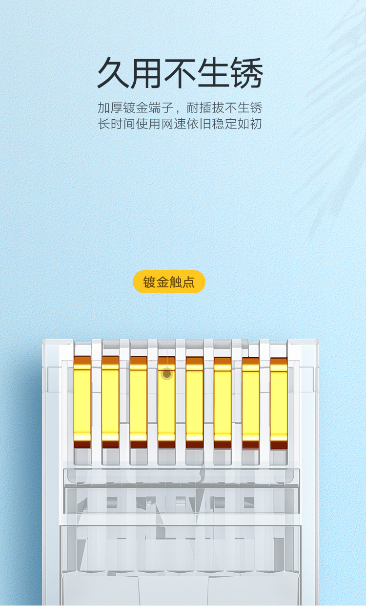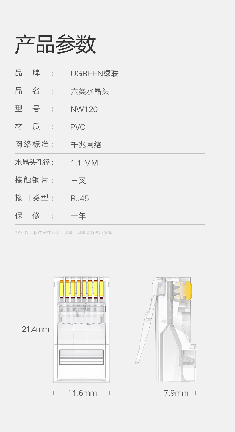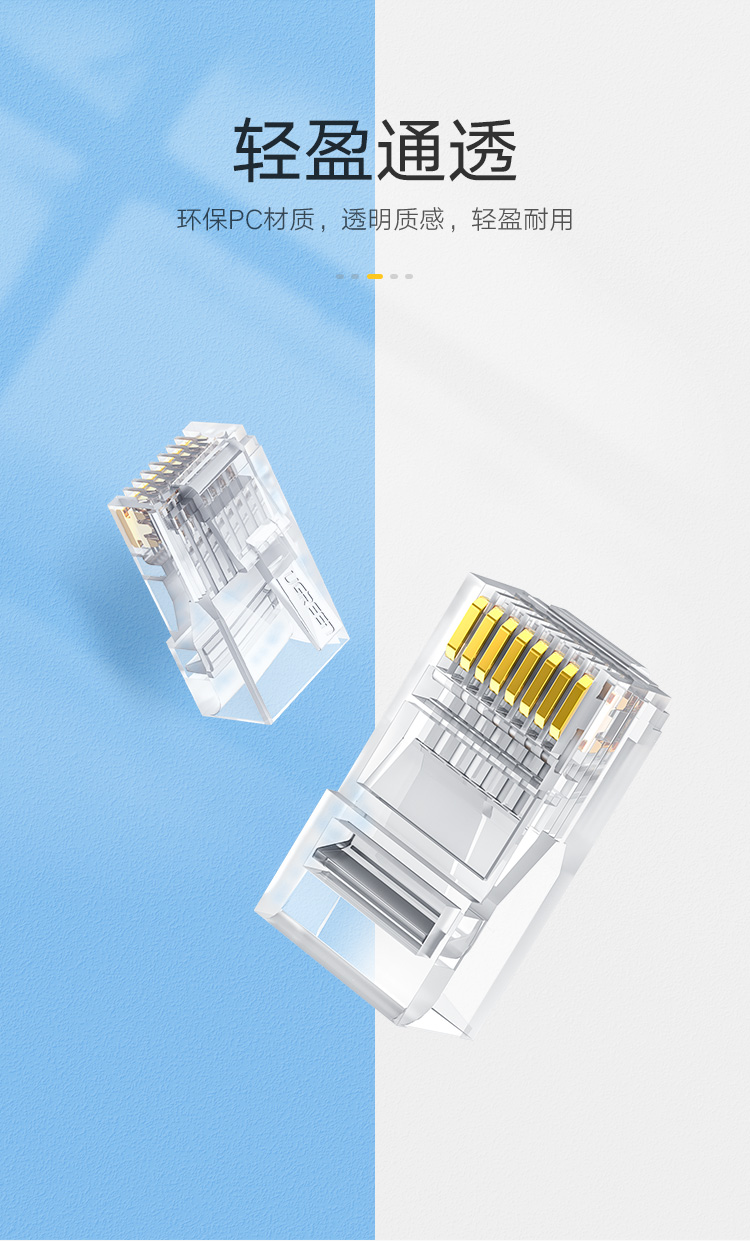绿联(UGREEN)六类网线水晶头 6类千兆网络接头 RJ45工程级8P8C电脑网线连接器 Cat6水晶头镀金 100个 60558
