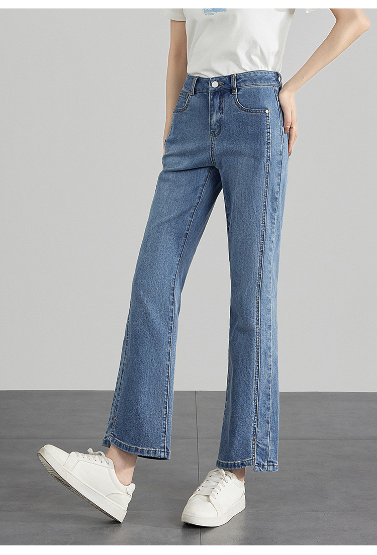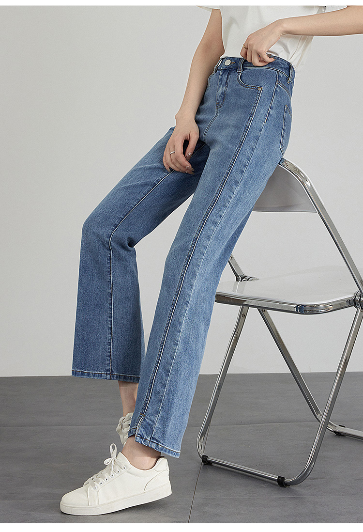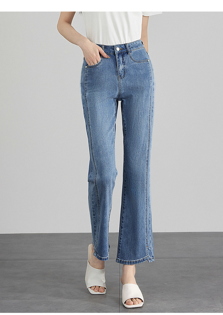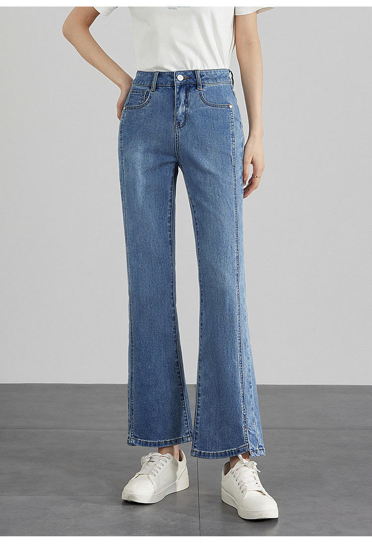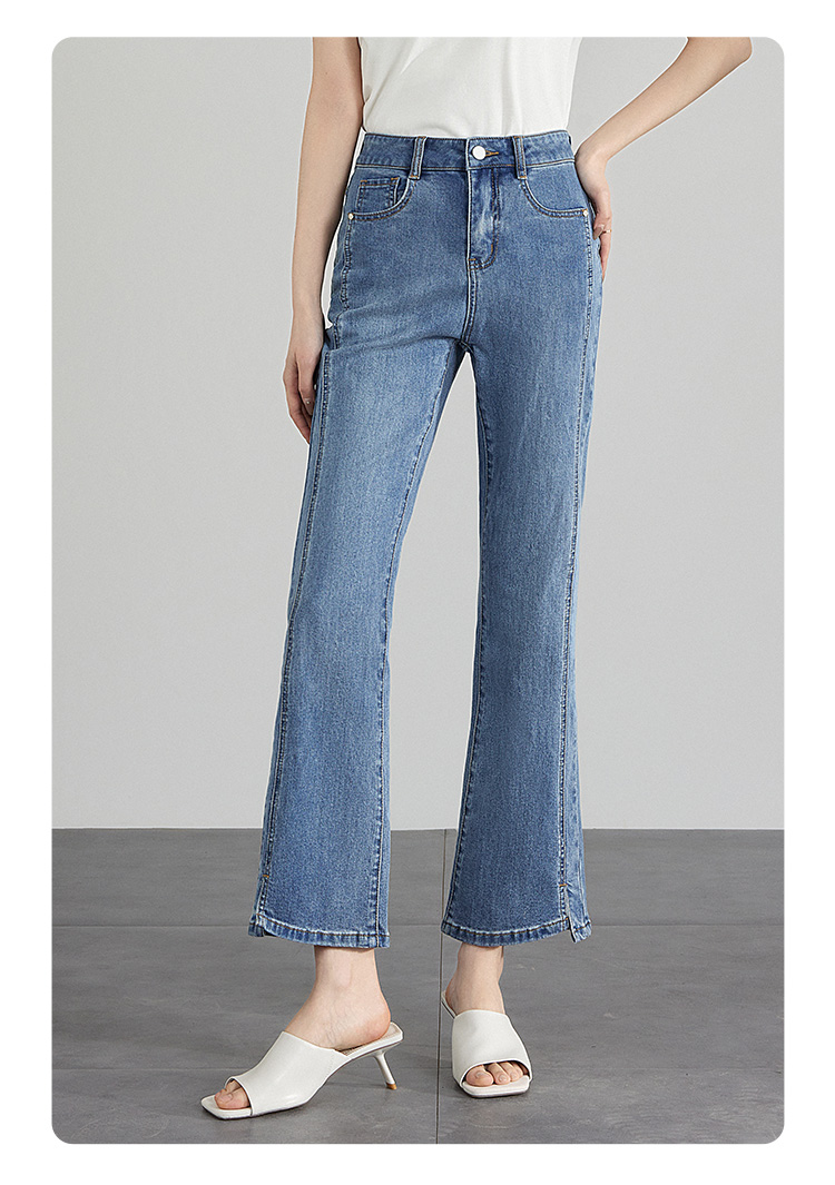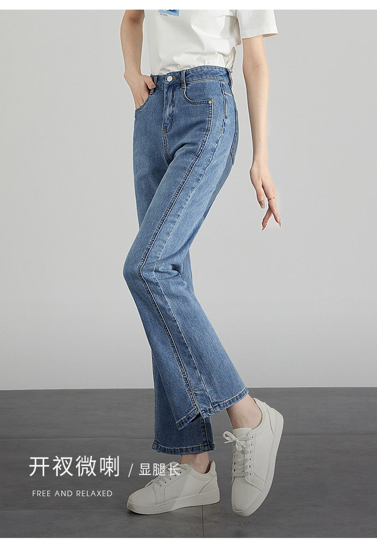 【专属特价】熙世界开衩微喇牛仔裤薄款2025夏季新款通勤修身显瘦微喇叭裤子